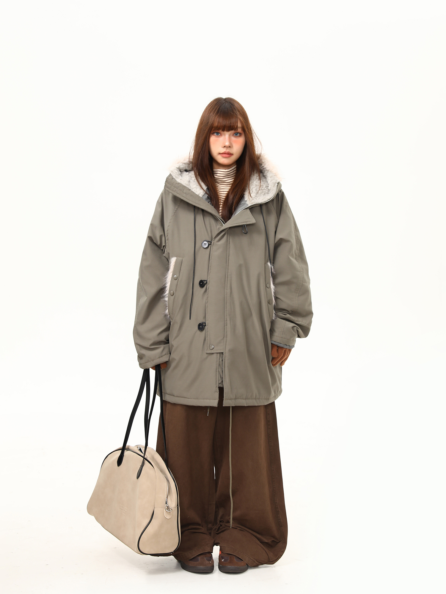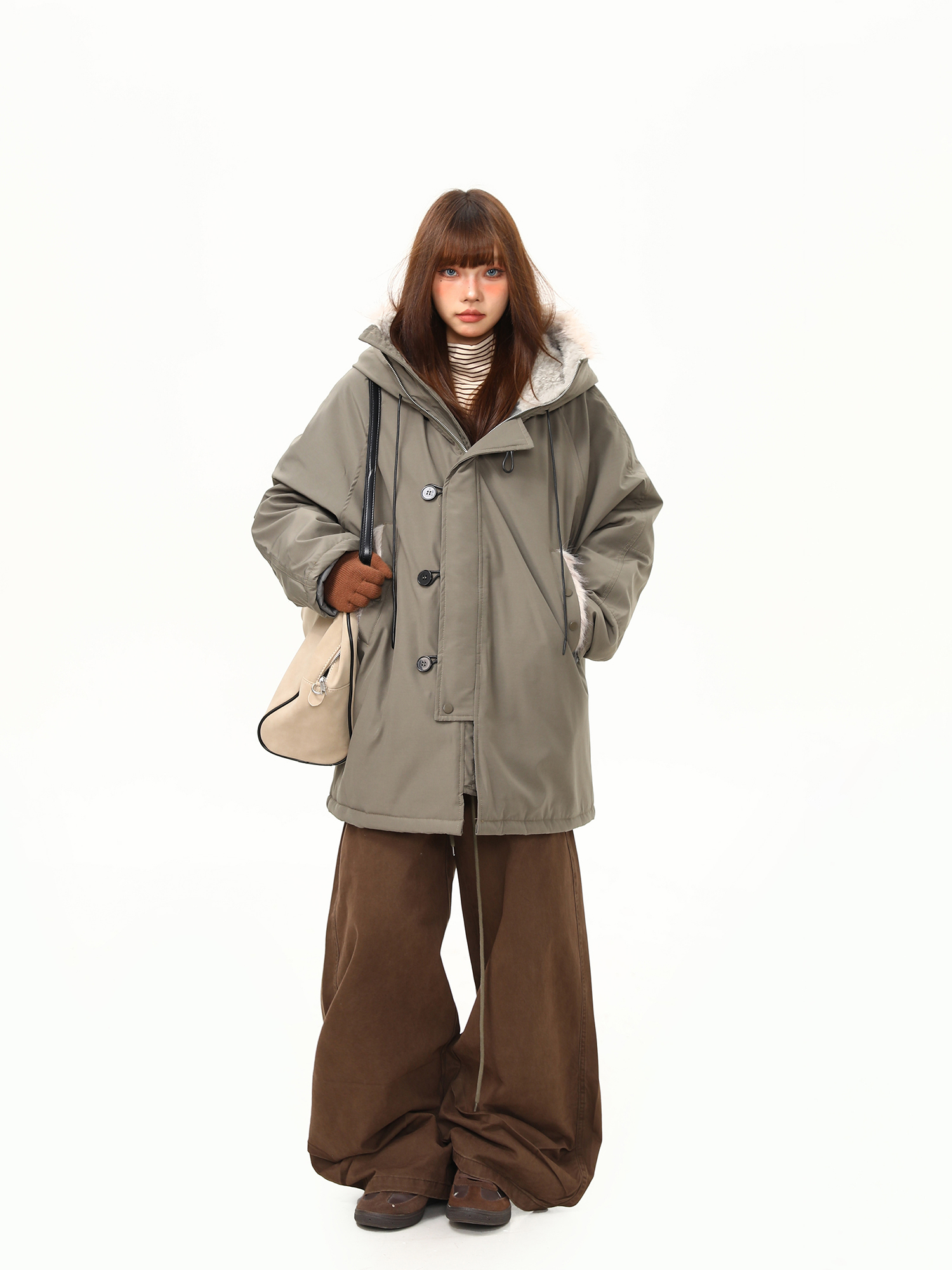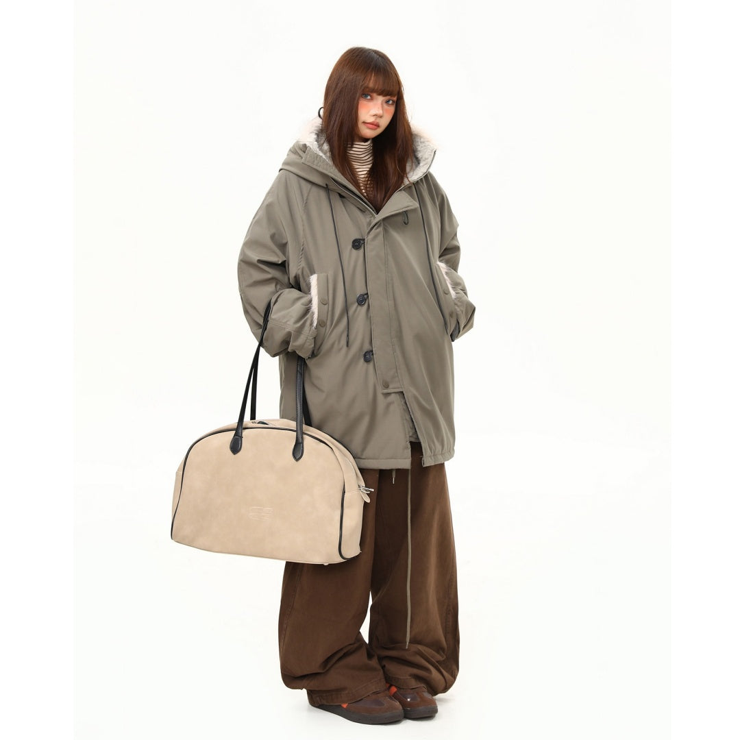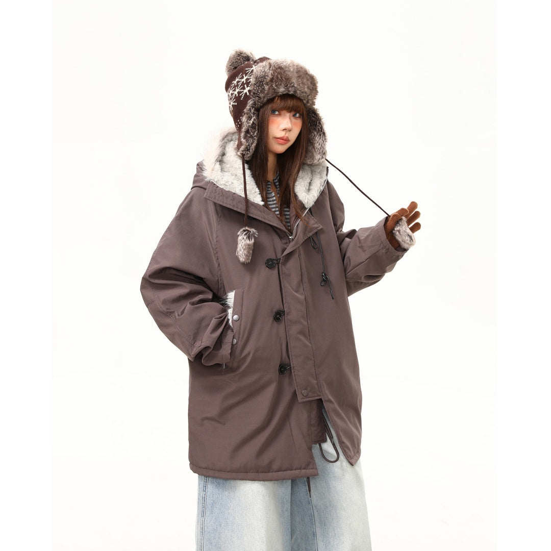 【アウター】レトロ 春 秋 冬 ボア襟 パーカーダウンジャケット 【JZシリーズ】