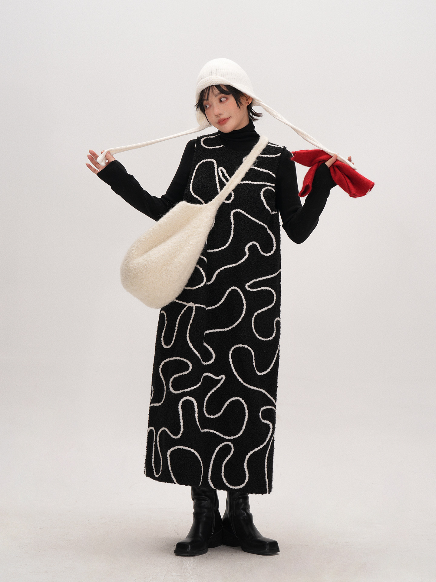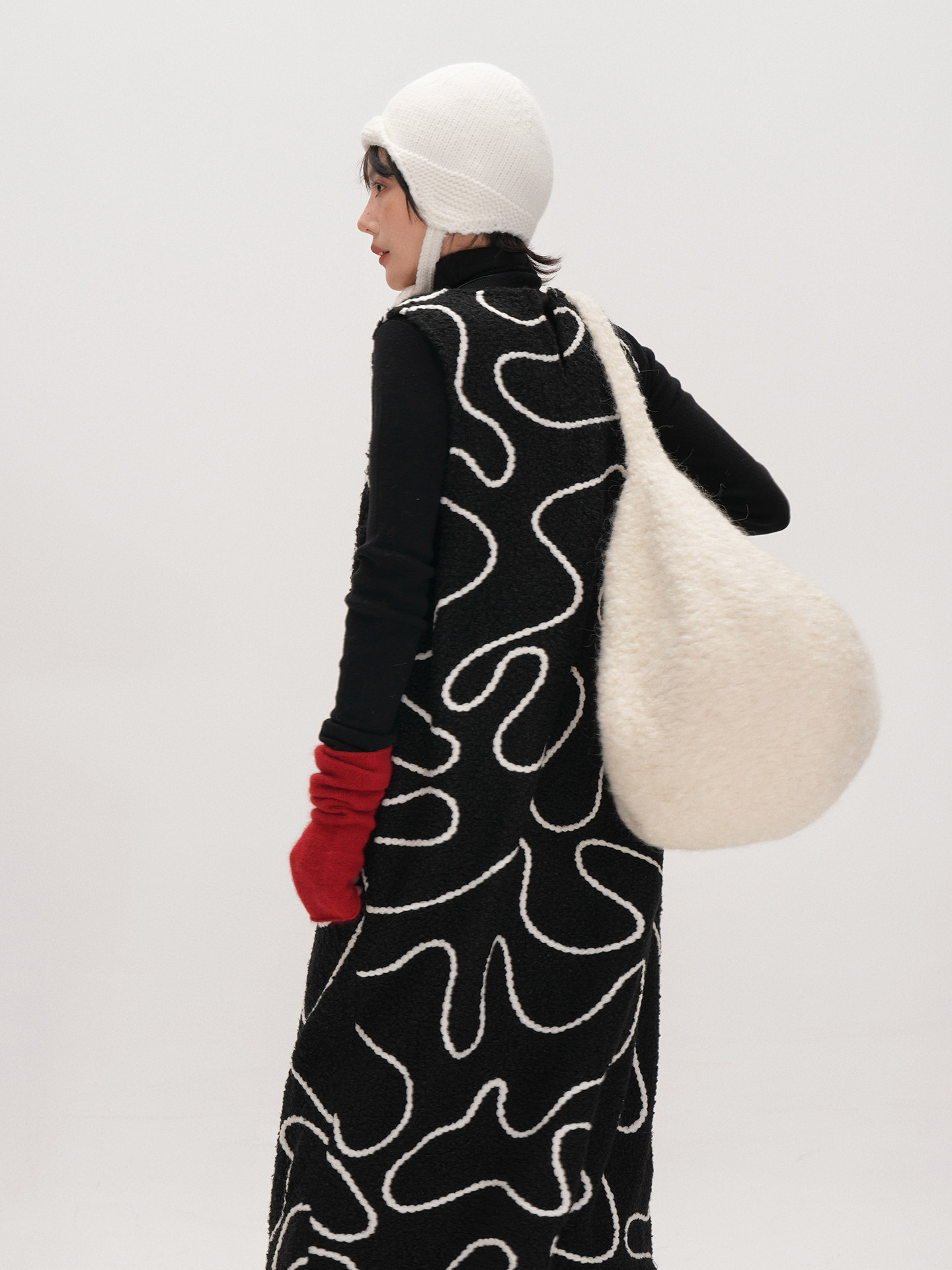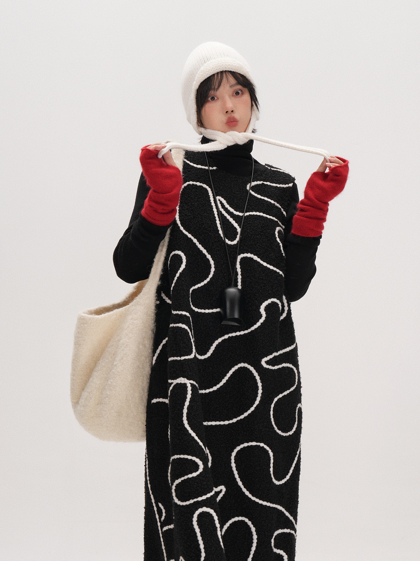 【トップス】遊び心 猫モチーフ ワンショルダーニット 猫柄 ゆったり リラックス感 ニットトップス【FCシリーズ】