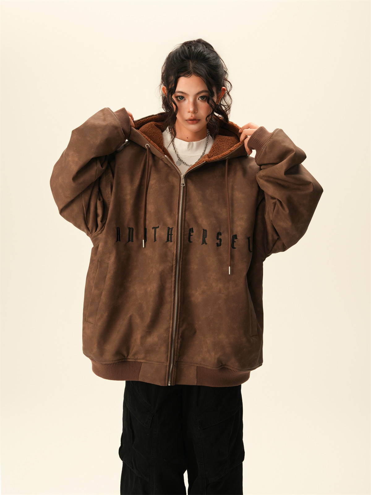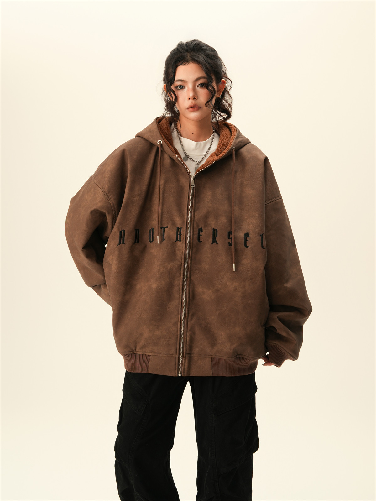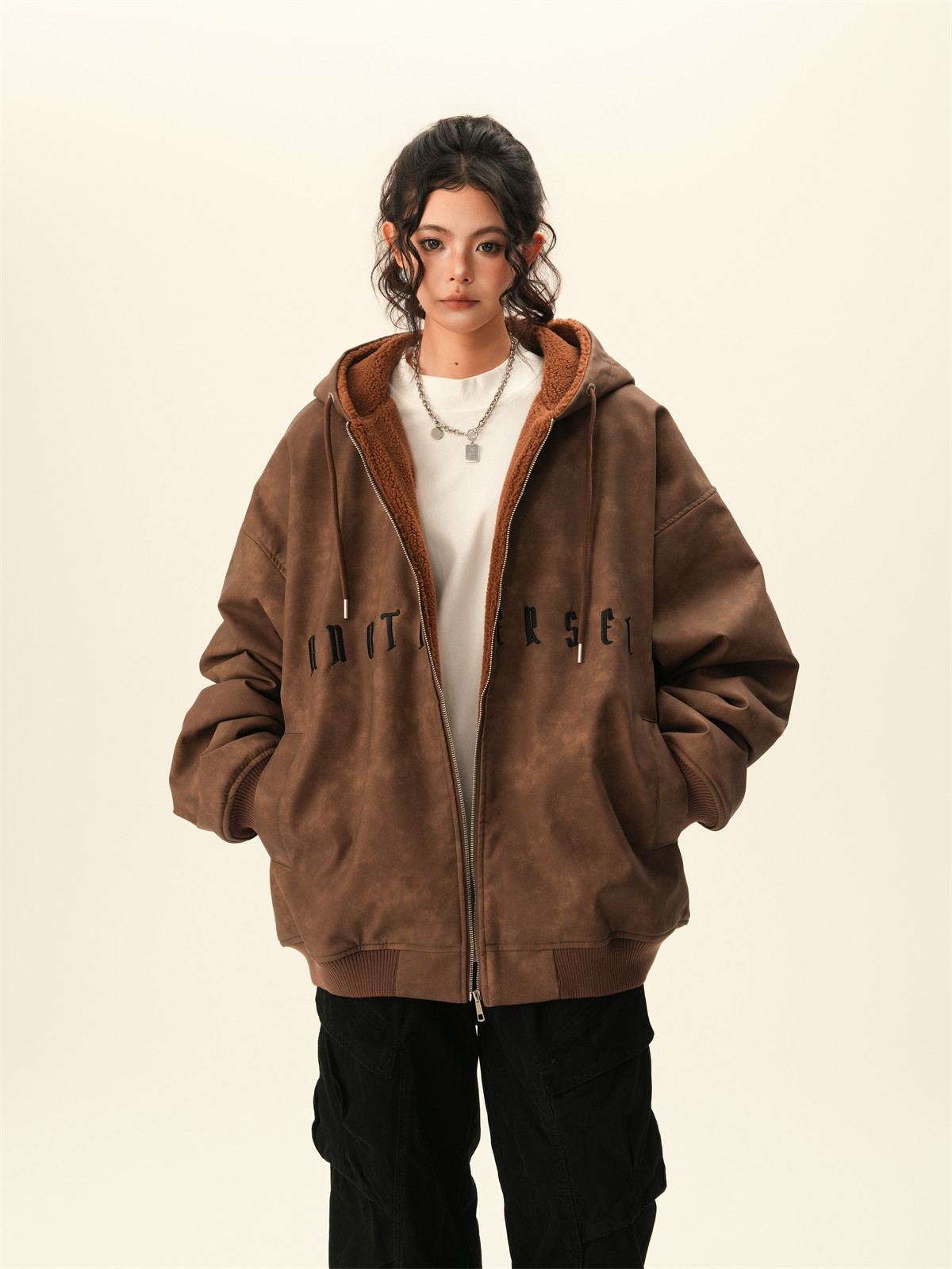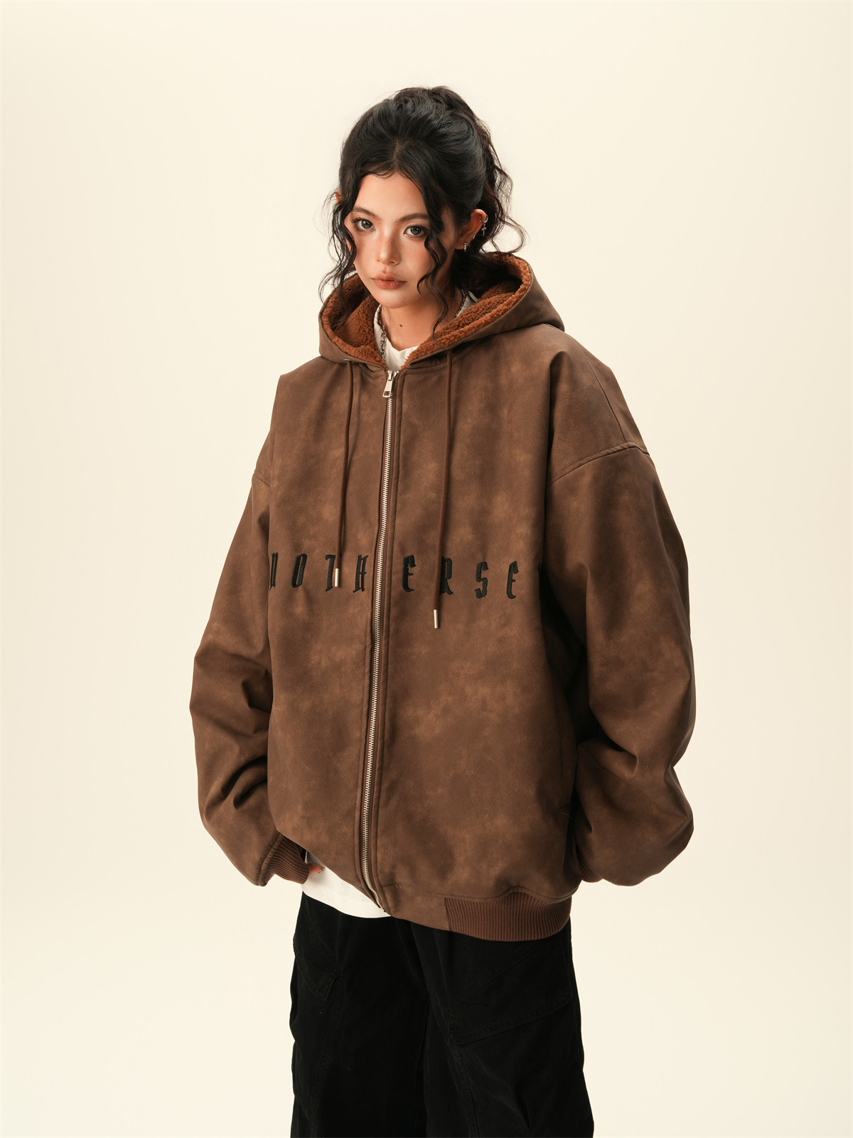 🔥冬の必須アウター🔥【アウター】秋冬 アメリカン カップル服 ルース レトロ 刺繍 フード付き コットン ジャケット【FCシリーズ】