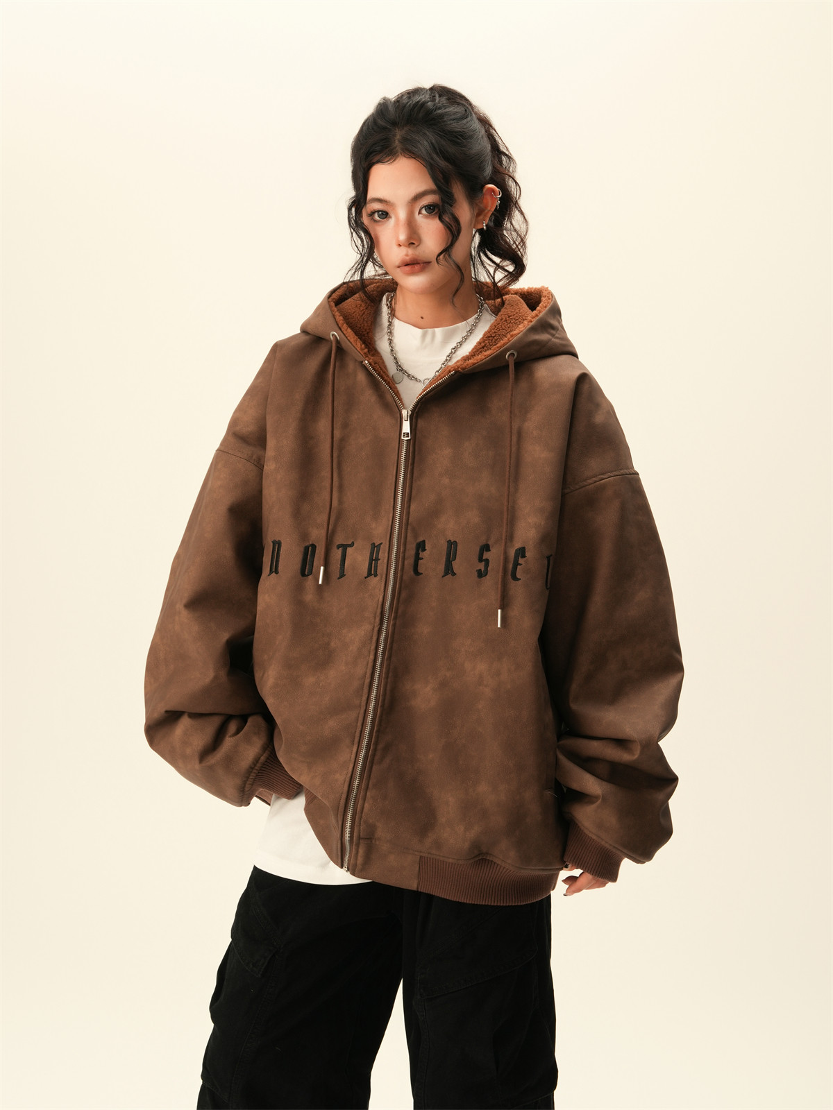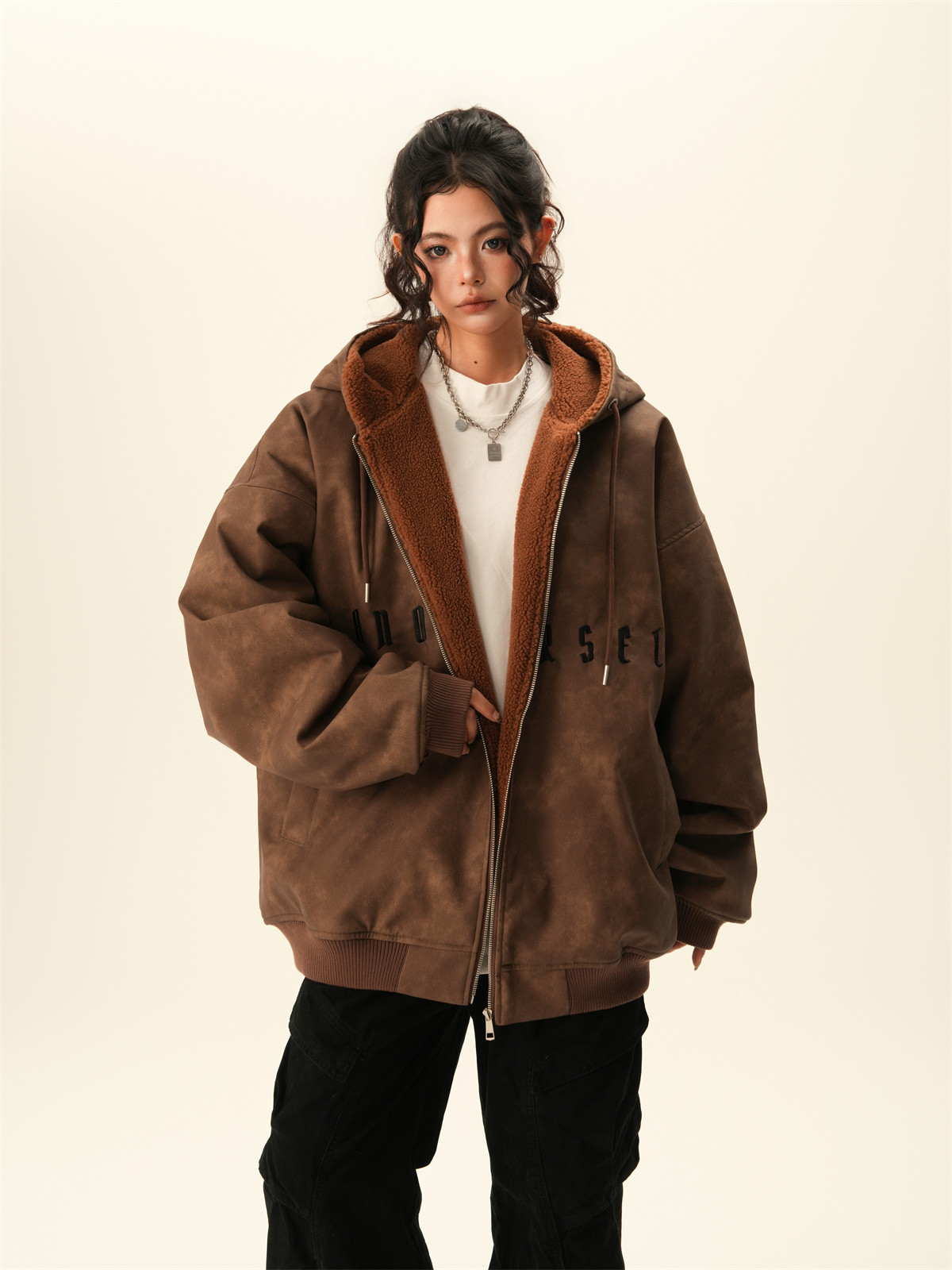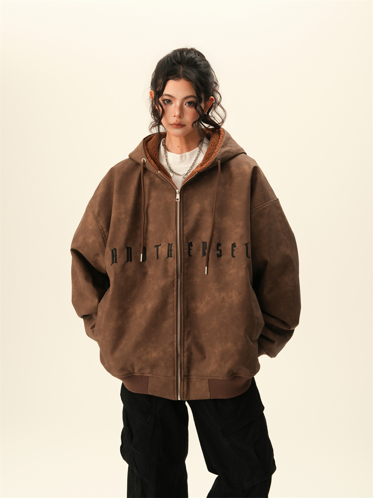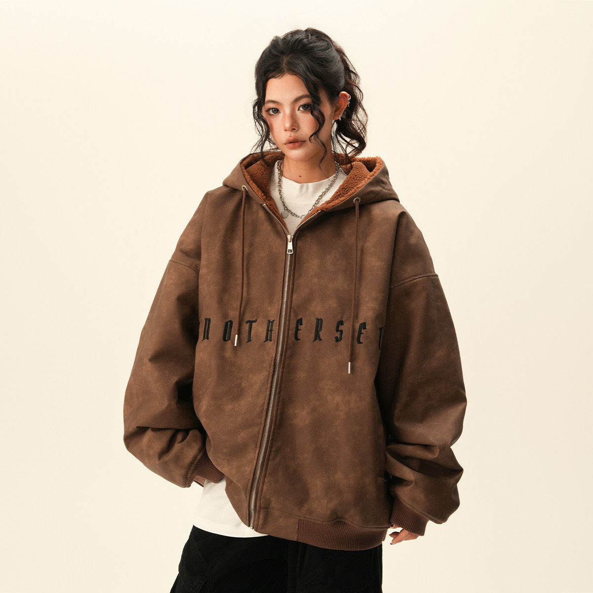 🔥冬の必須アウター🔥【アウター】秋冬 アメリカン カップル服 ルース レトロ 刺繍 フード付き コットン ジャケット【FCシリーズ】