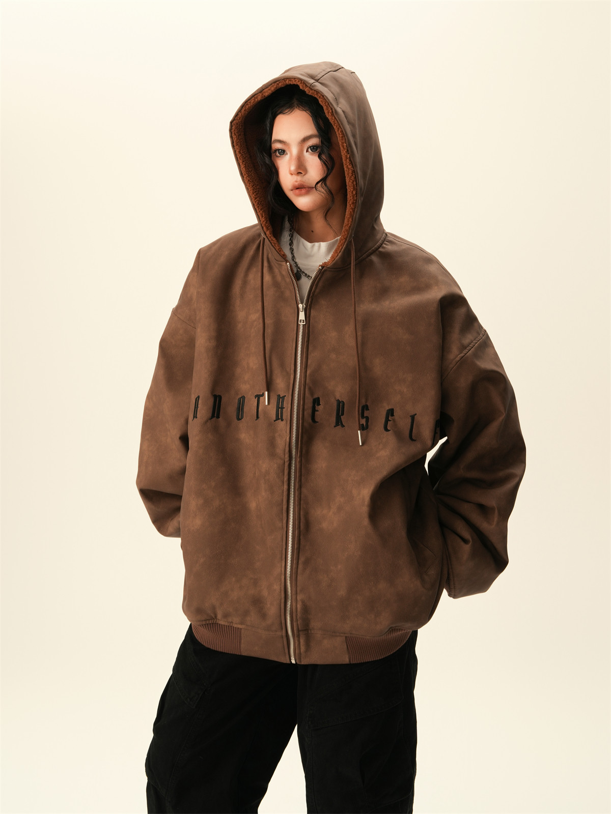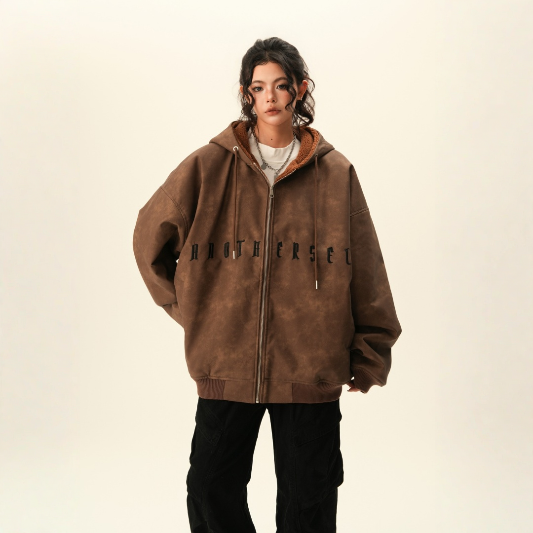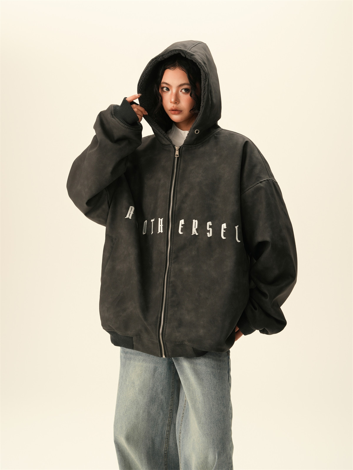 【アウター】春 秋 冬 スエード調 ルーズテイスト アルファベット刺繍 裏起毛 ジャケット 【FCシリーズ】