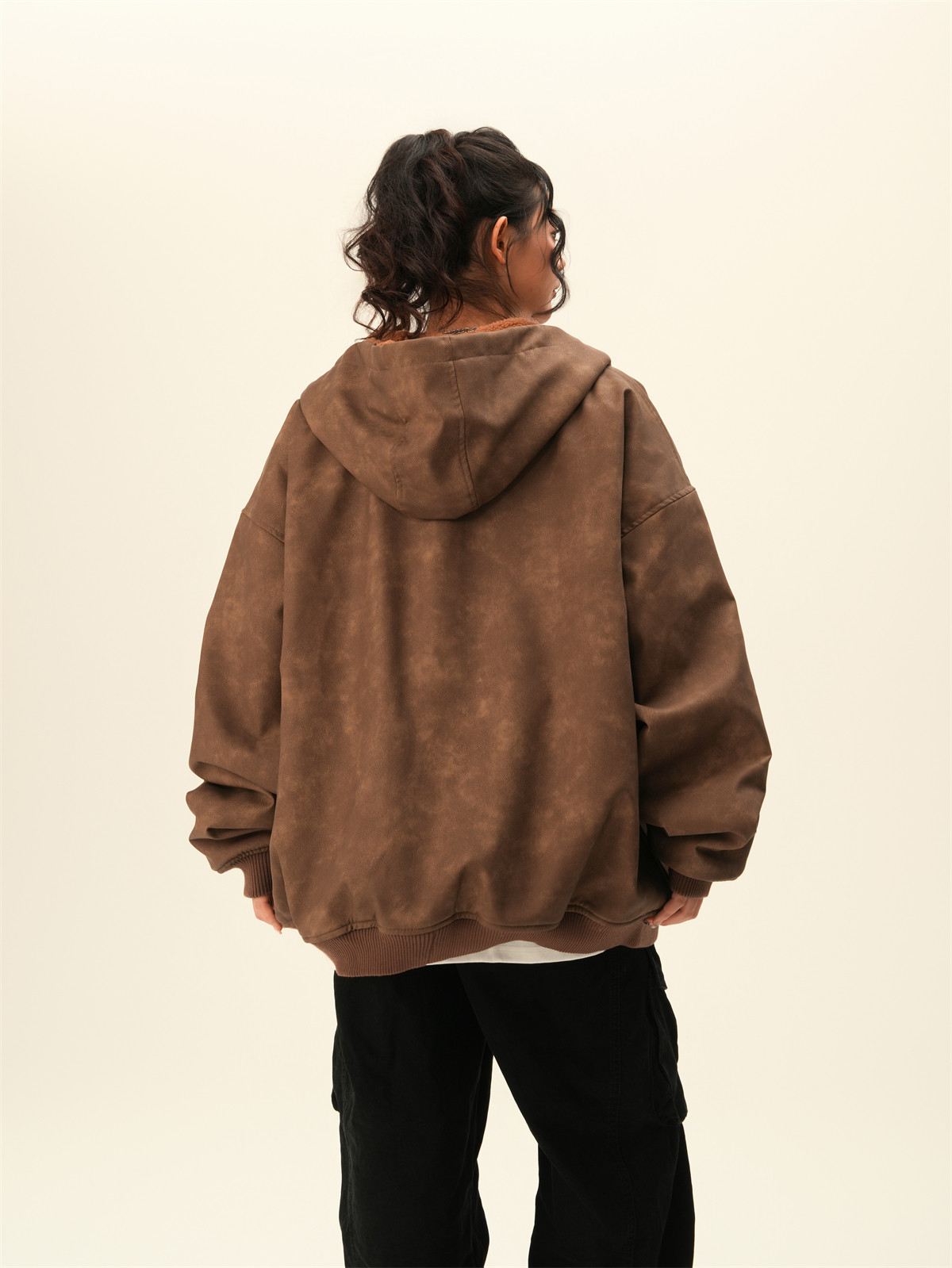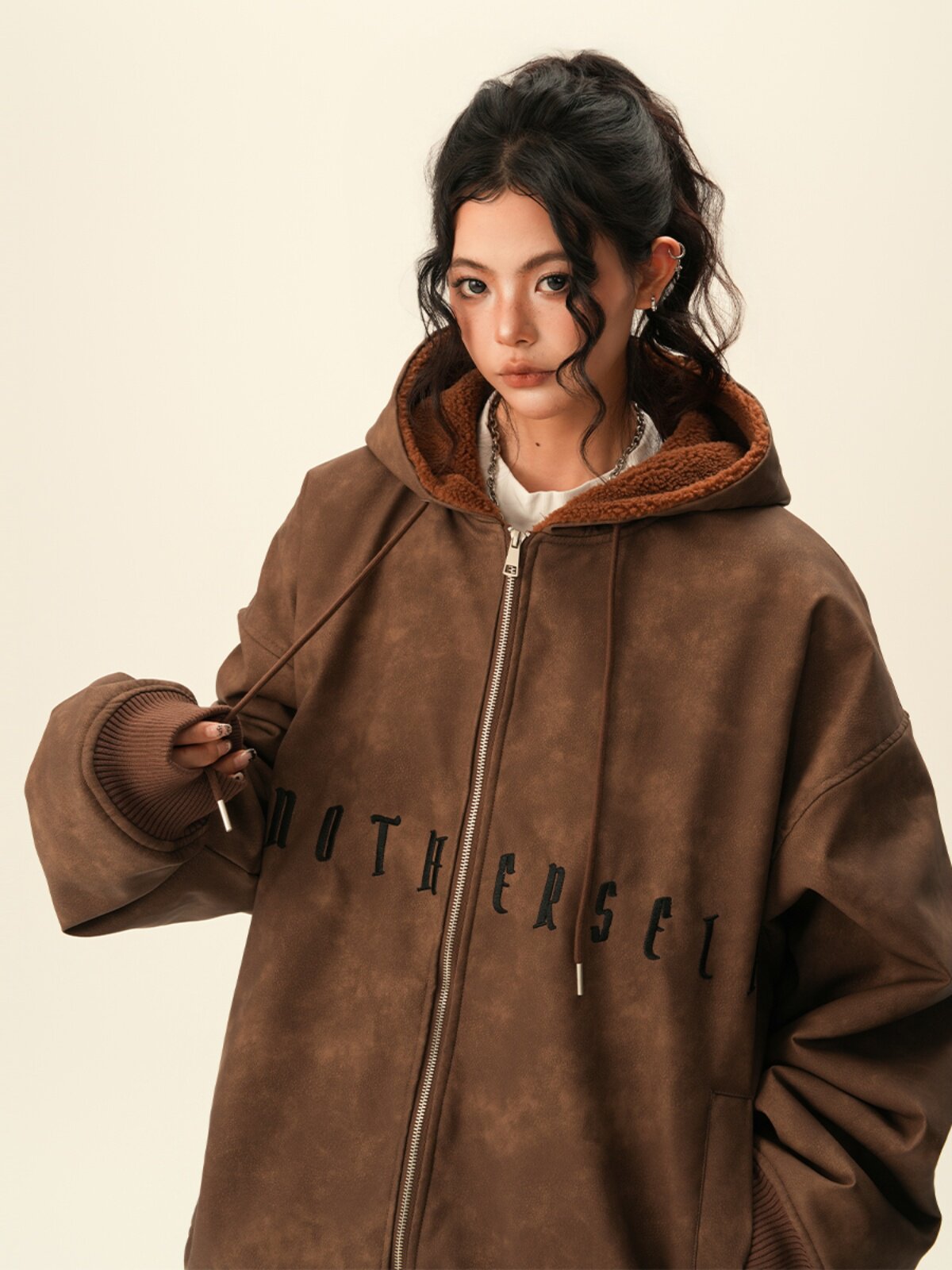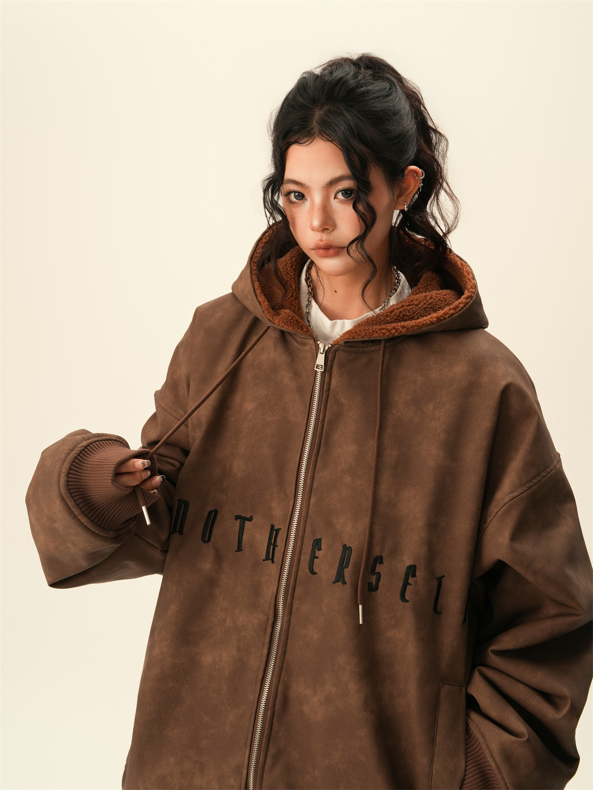 【アウター】春 秋 冬 スエード調 ルーズテイスト アルファベット刺繍 裏起毛 ジャケット 【FCシリーズ】