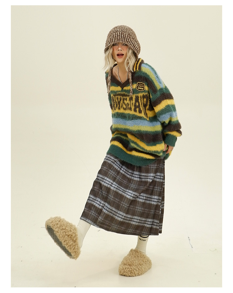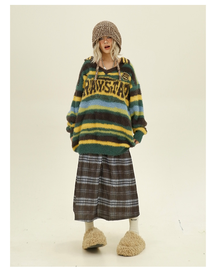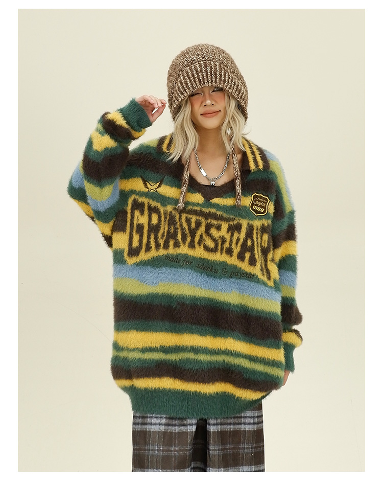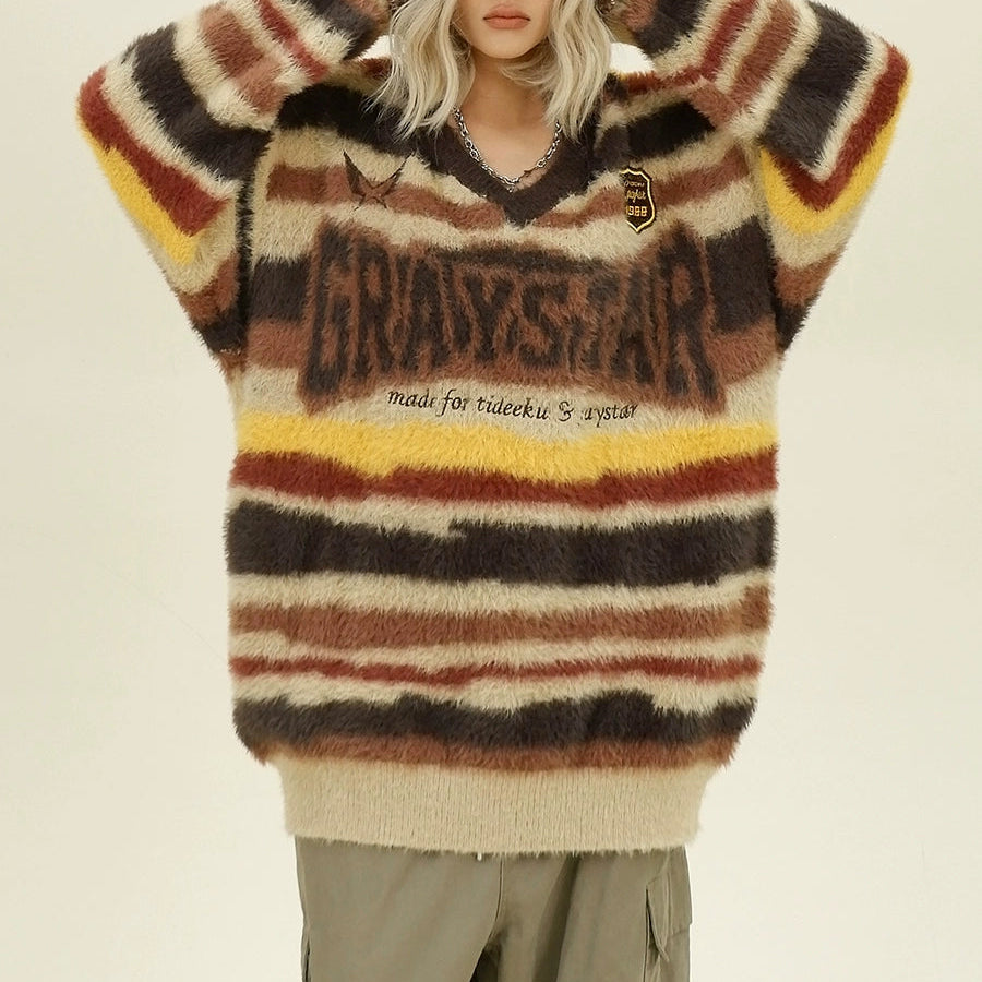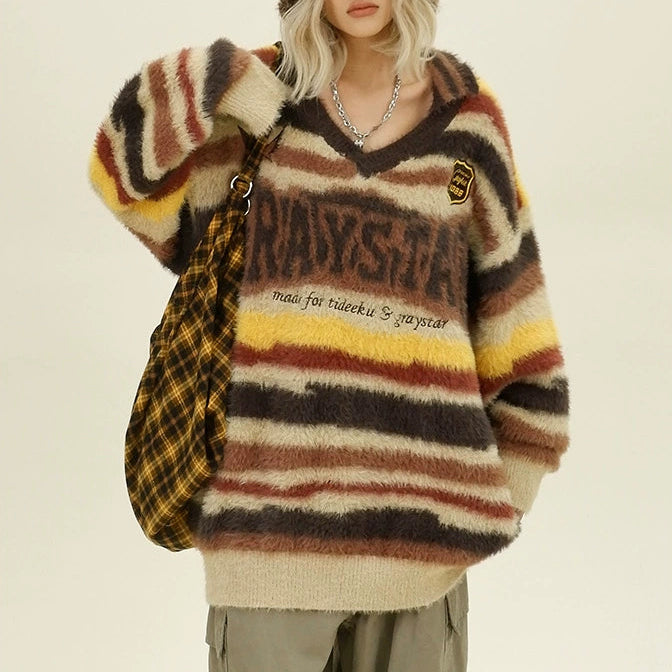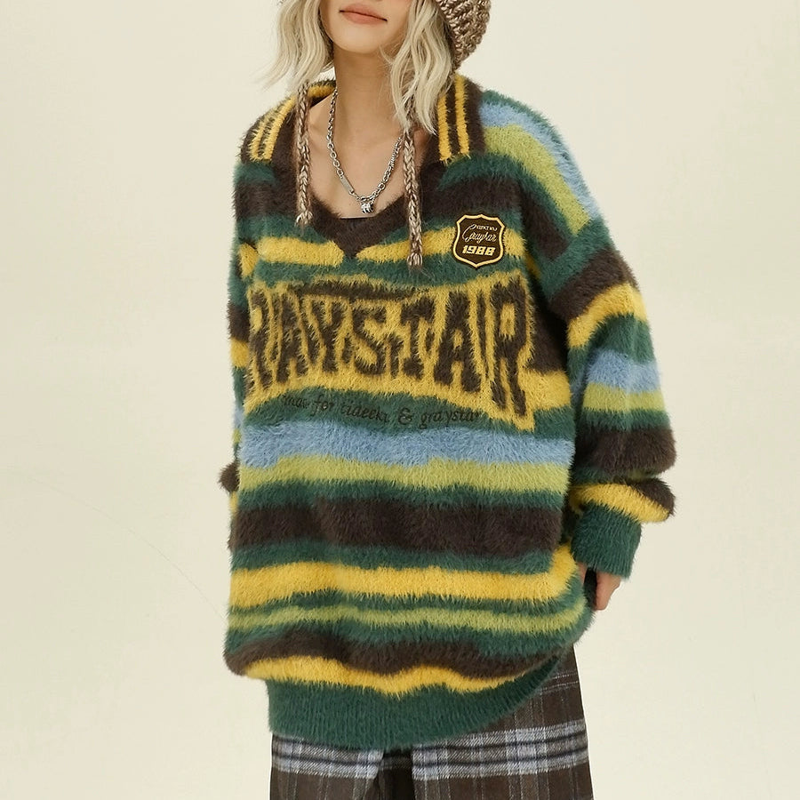 【トップス】アメリカンスタイル しま模様 ゆったり アルファベット ニットセーター【FCシリーズ】