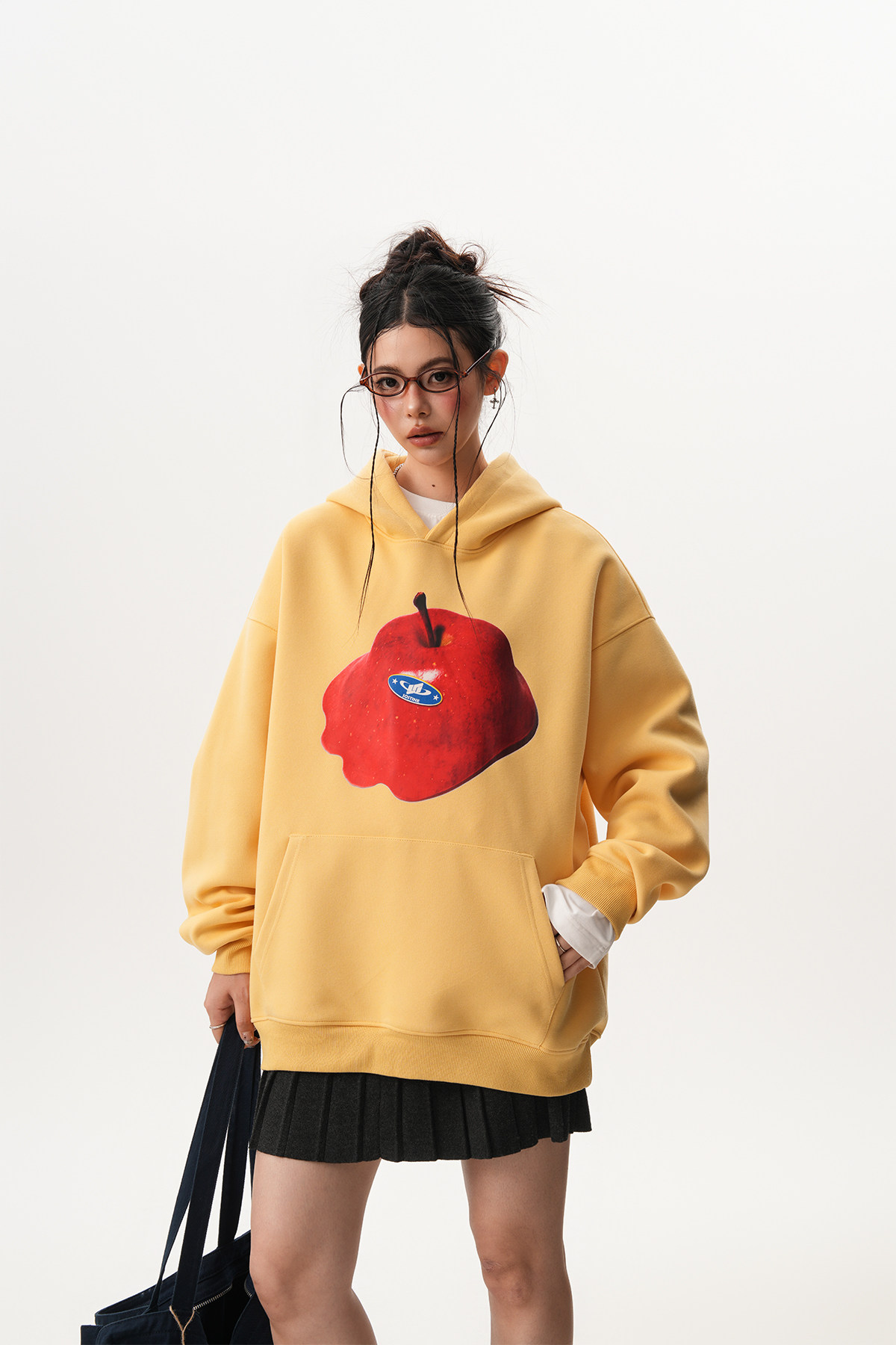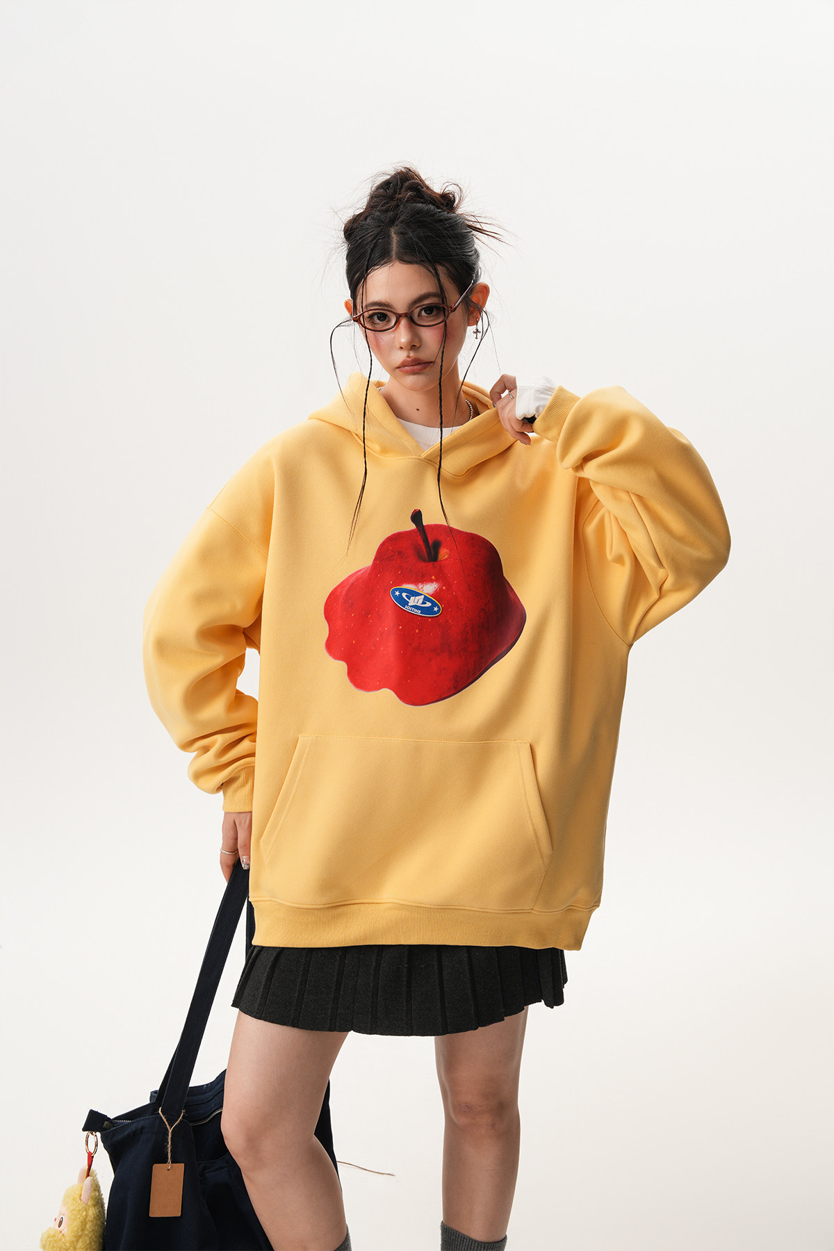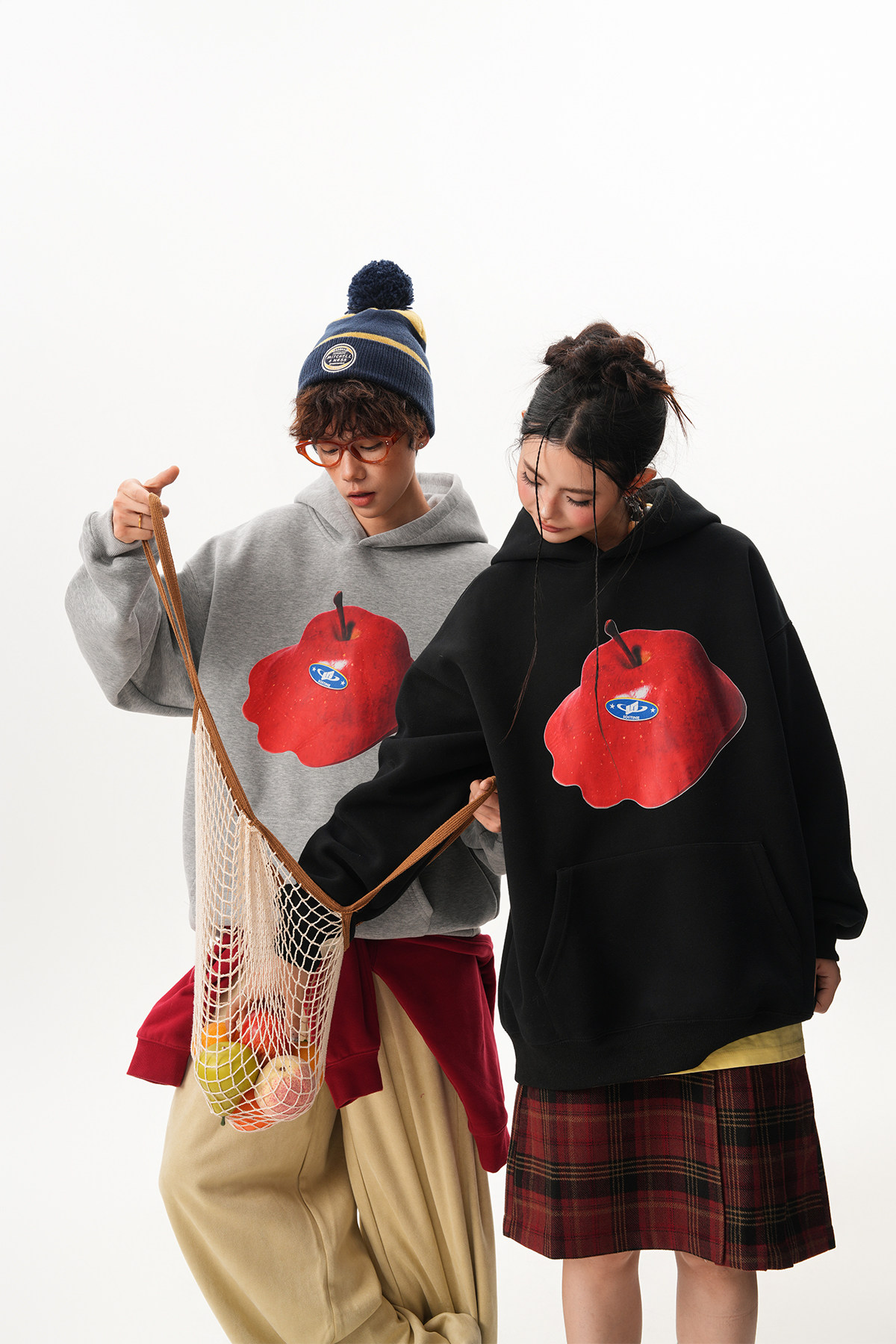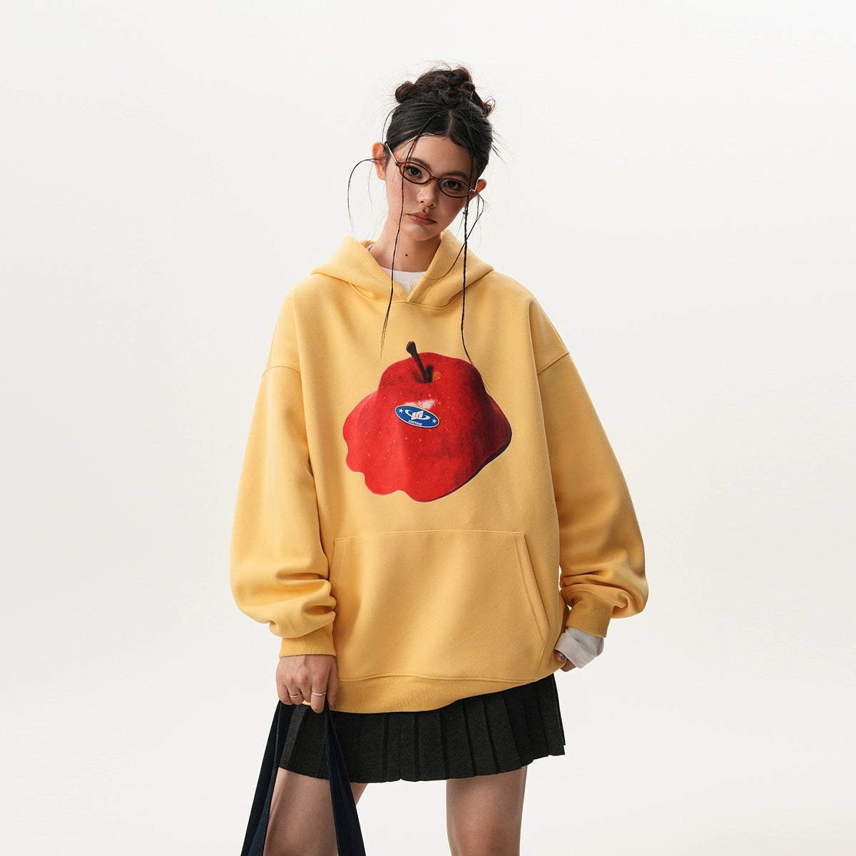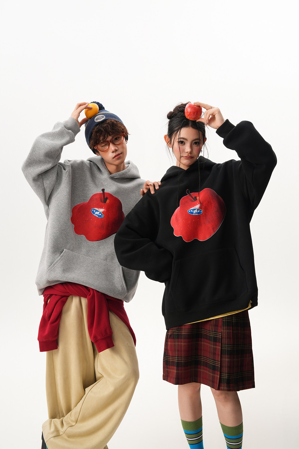 【60%OFF⭐️先行スタート!】【トップス】アップルプリント 男女兼用 ゆったり カジュアル パーカー【FCシリーズ】