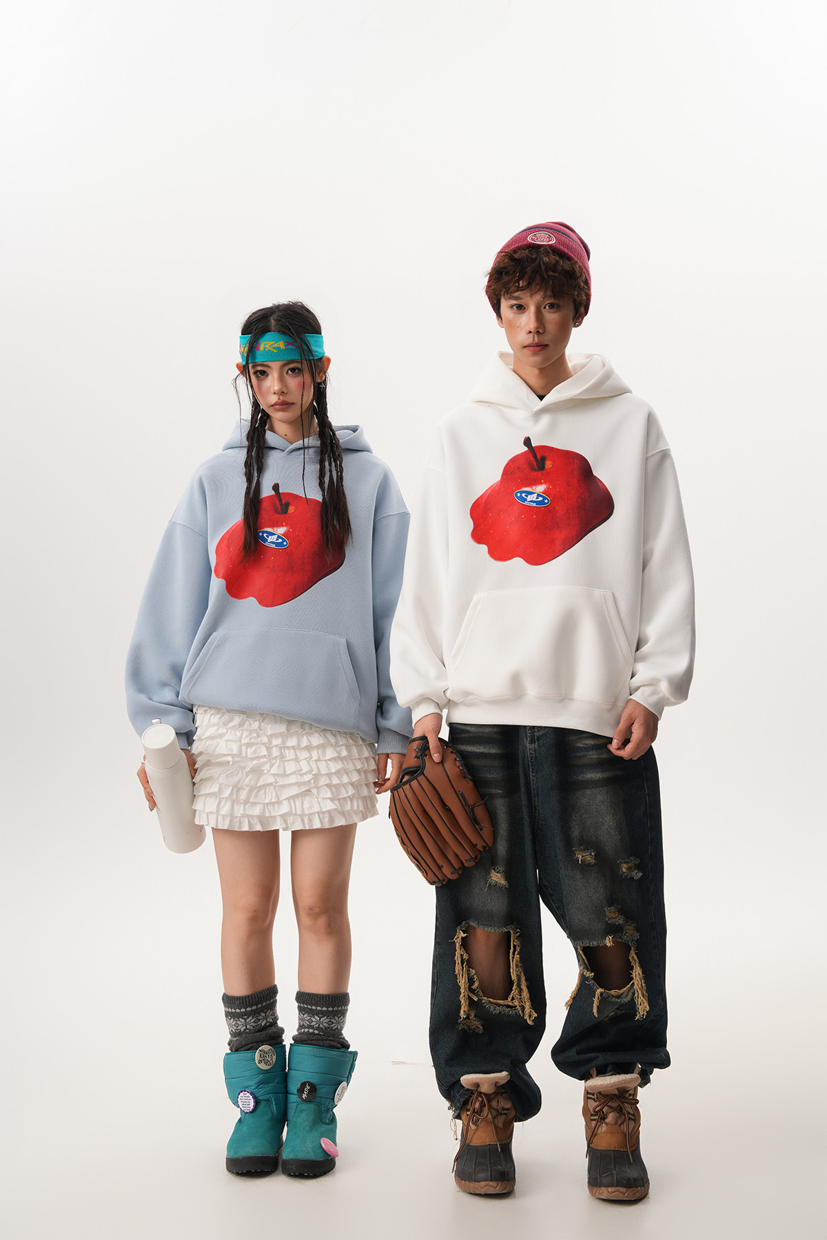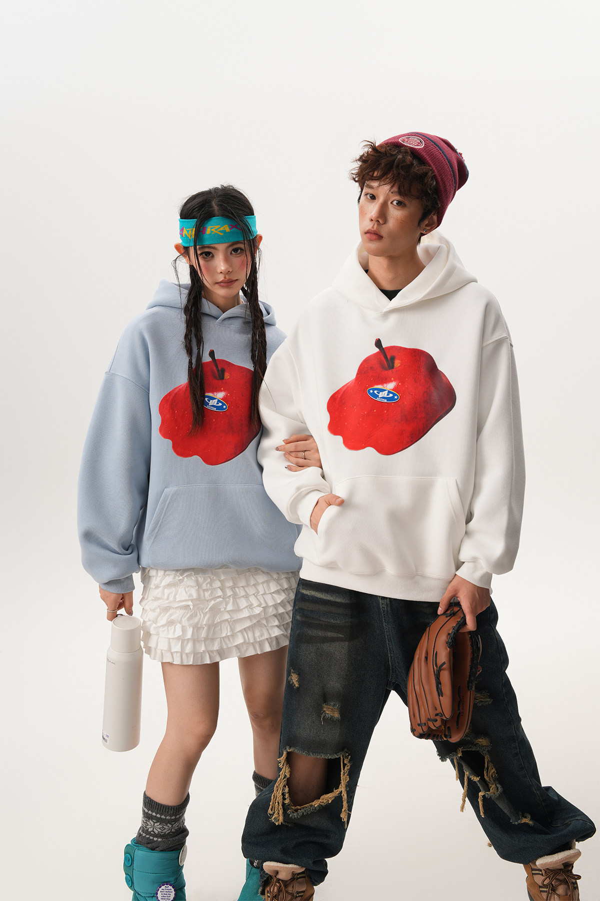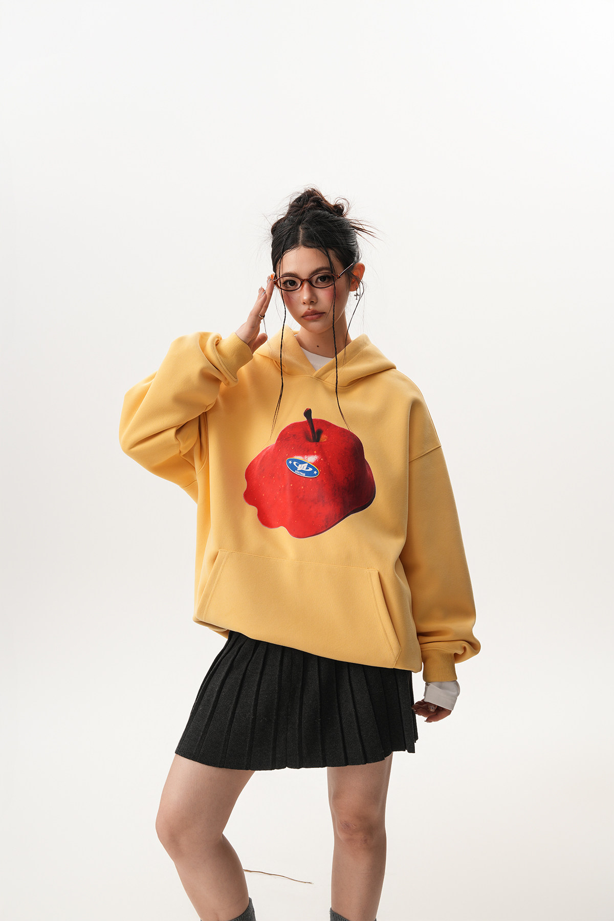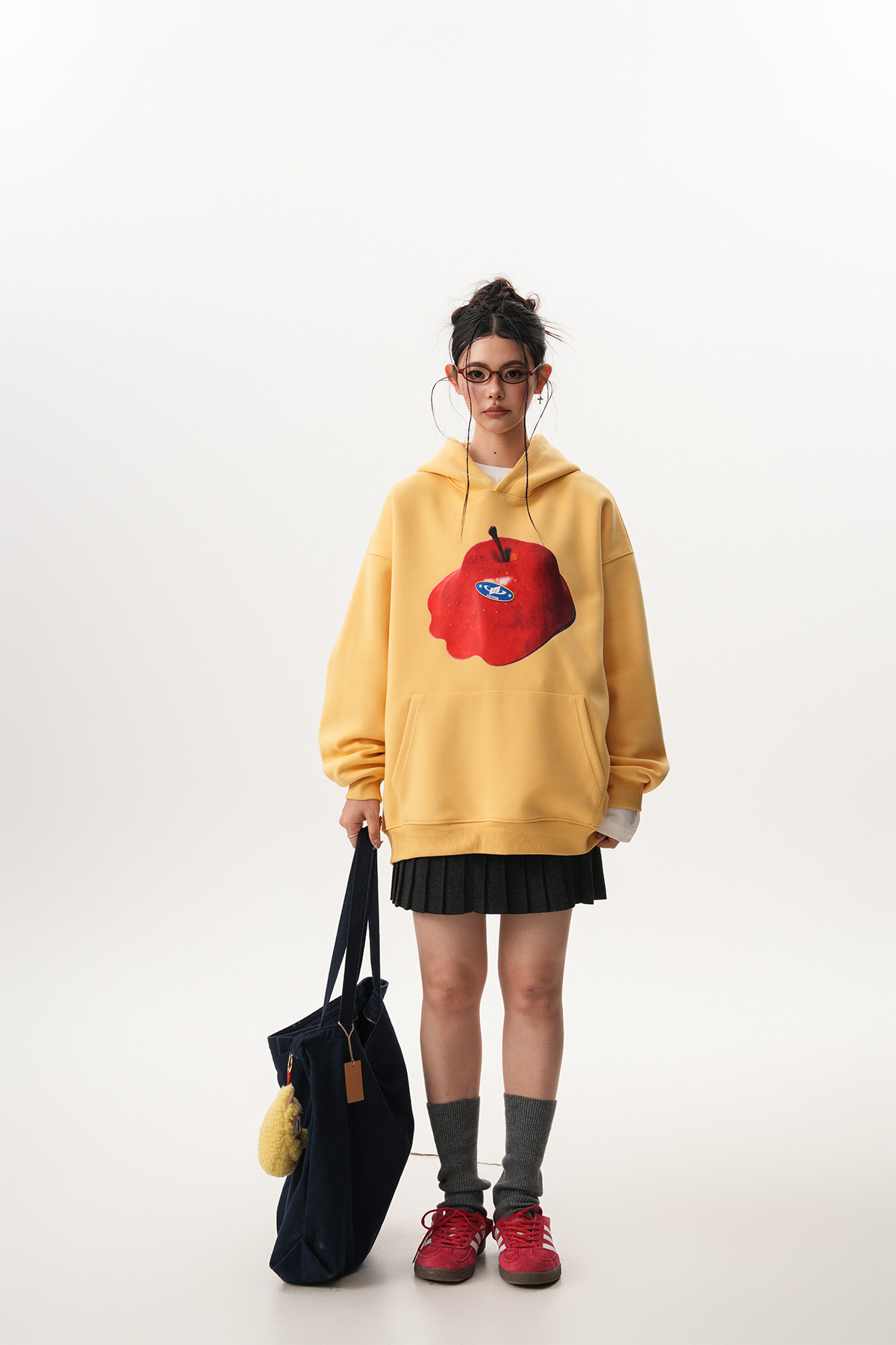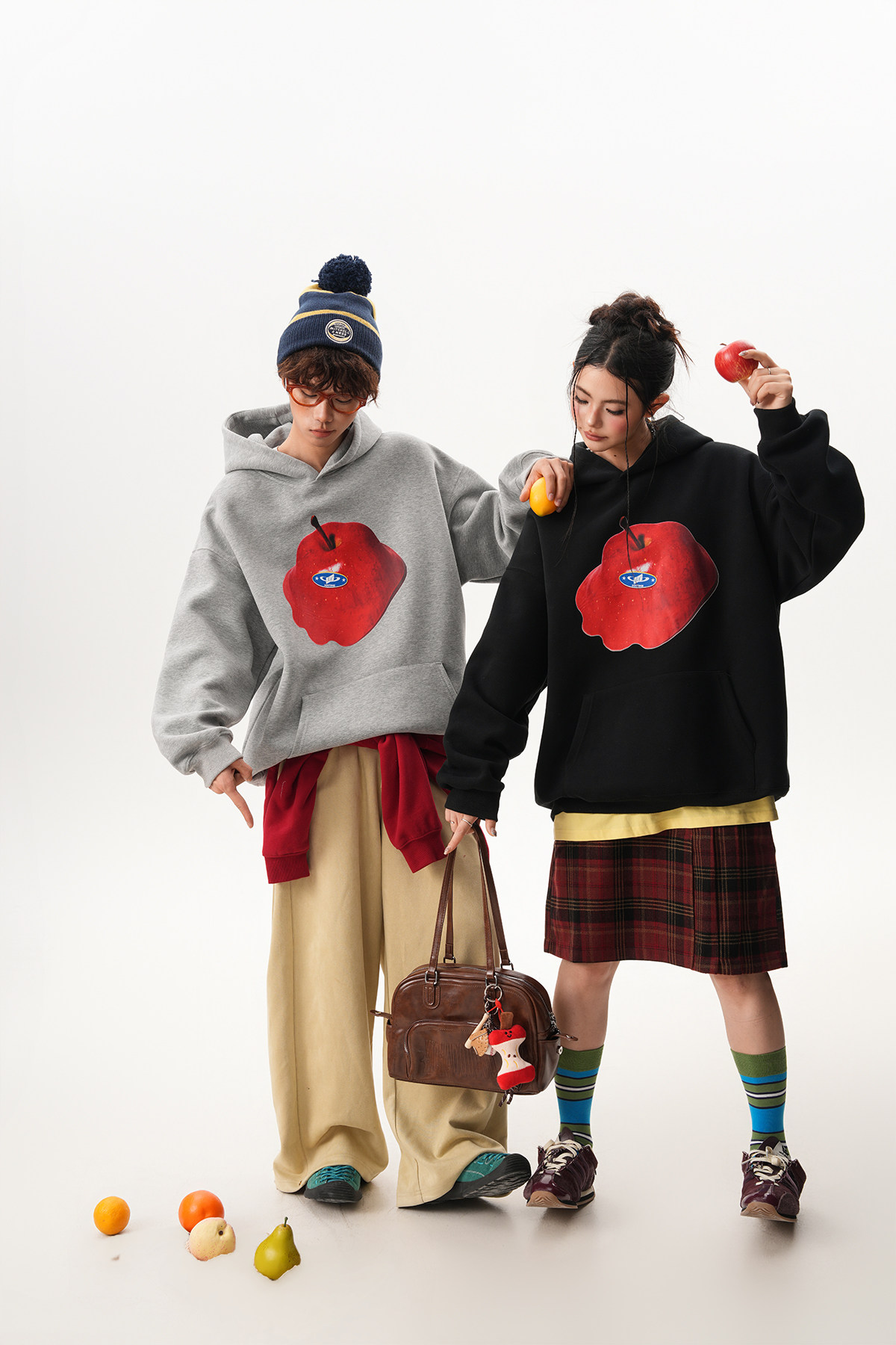 【60%OFF⭐️先行スタート!】【トップス】アップルプリント 男女兼用 ゆったり カジュアル パーカー【FCシリーズ】