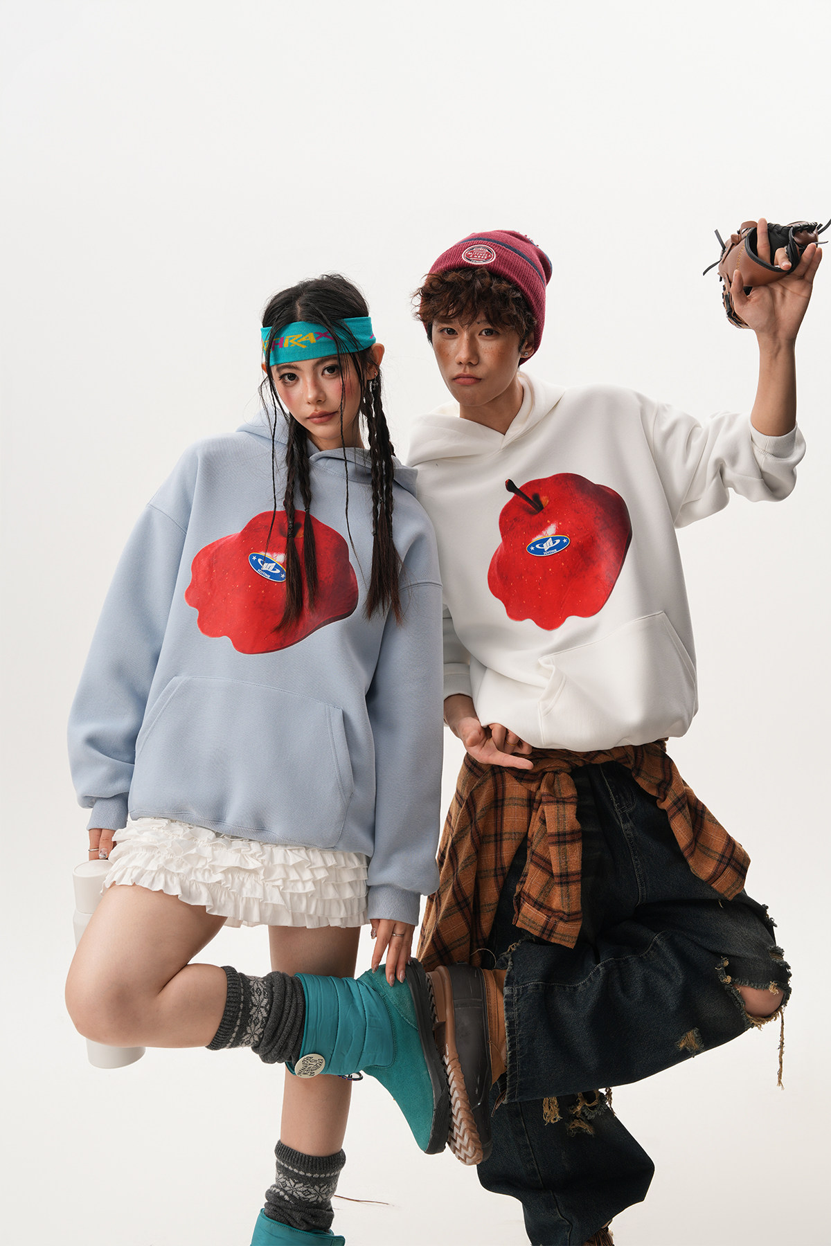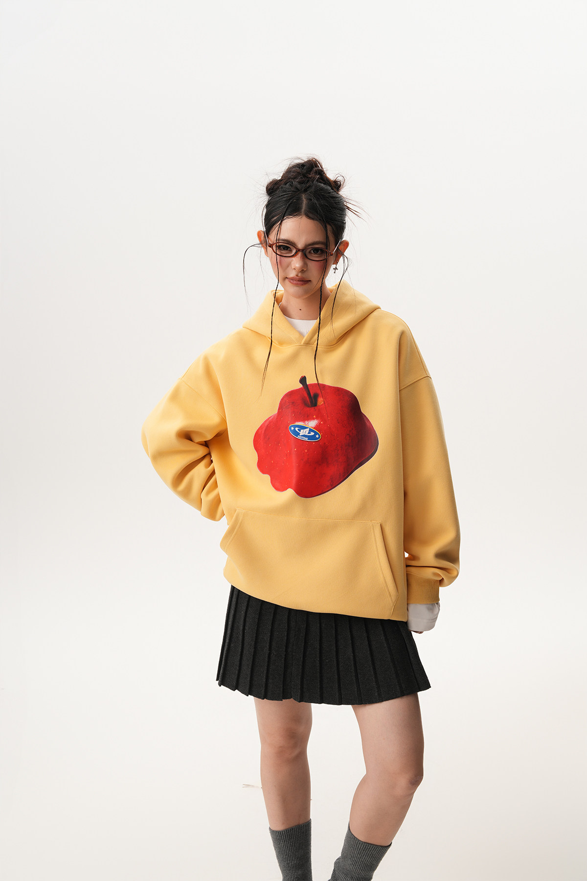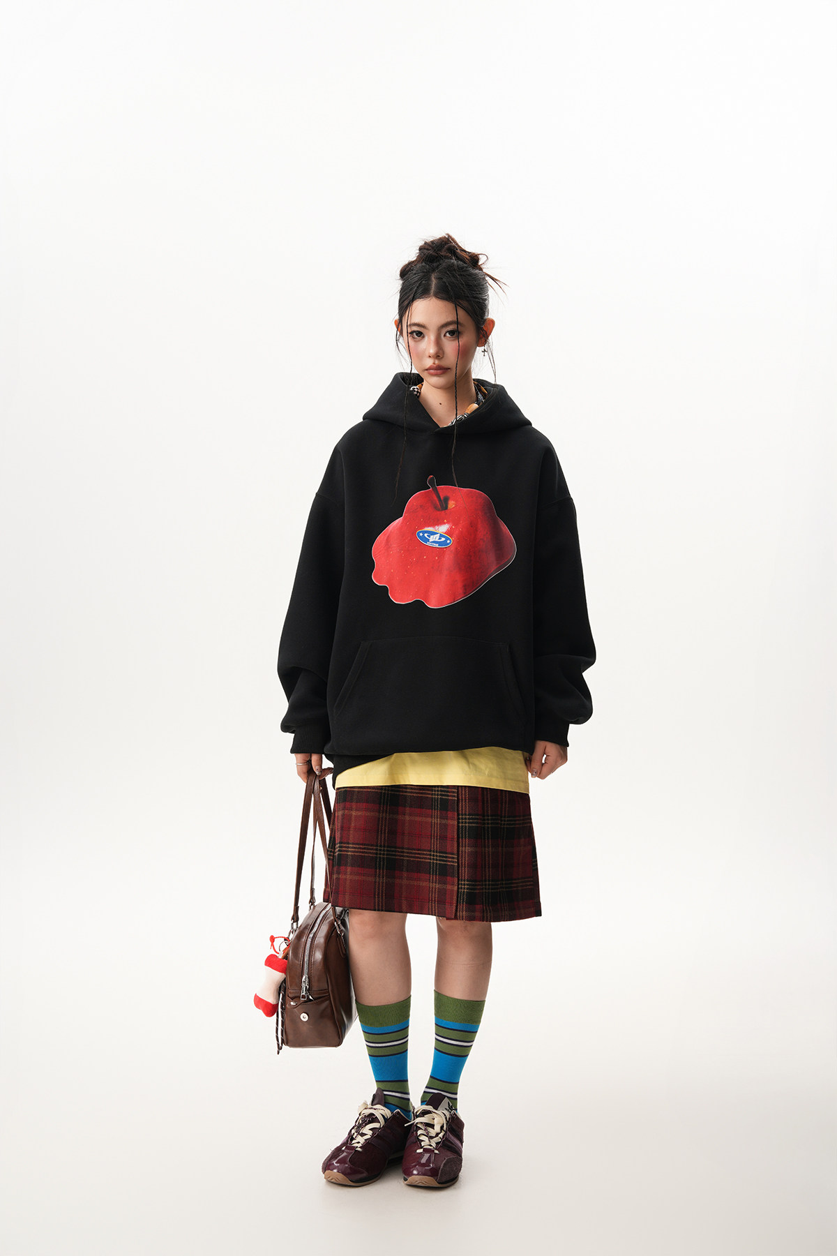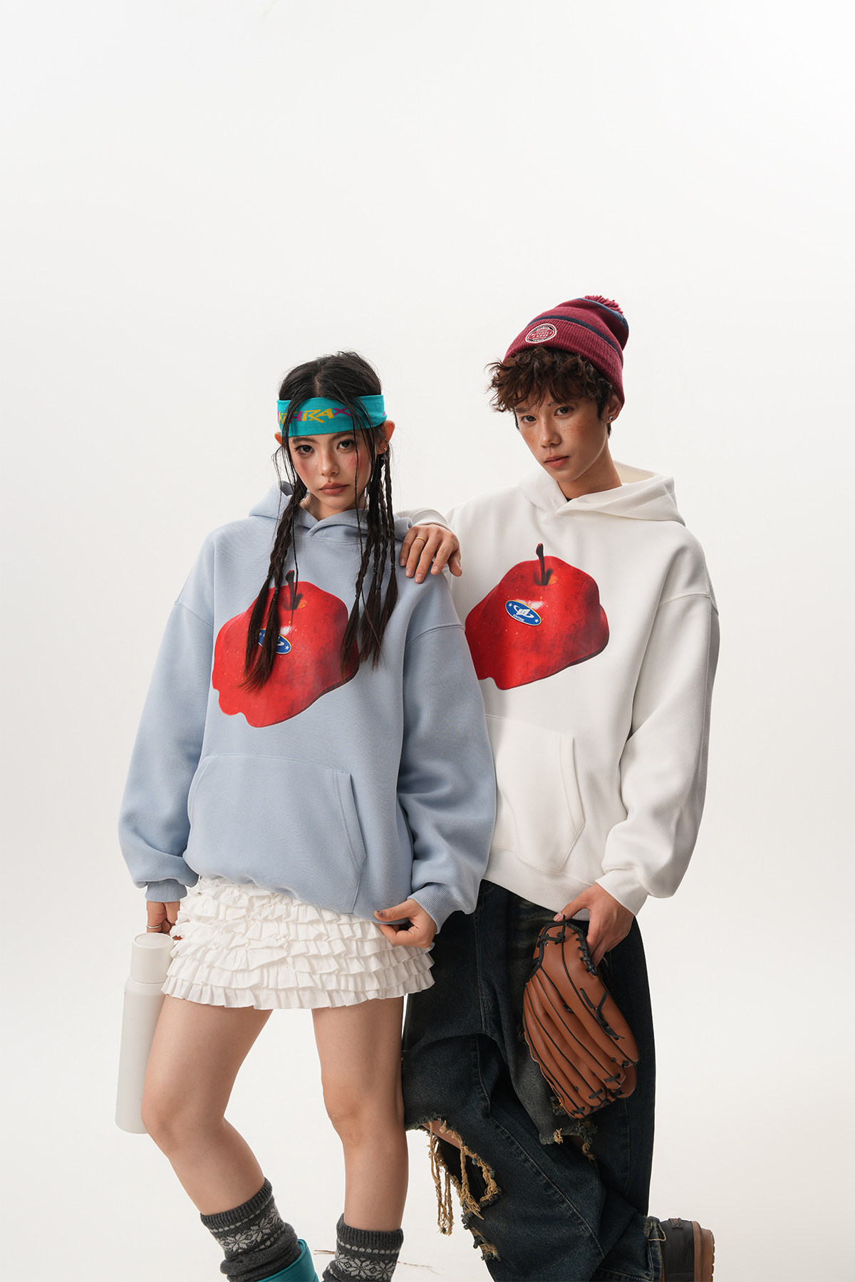 【60%OFF⭐️先行スタート!】【トップス】アップルプリント 男女兼用 ゆったり カジュアル パーカー【FCシリーズ】