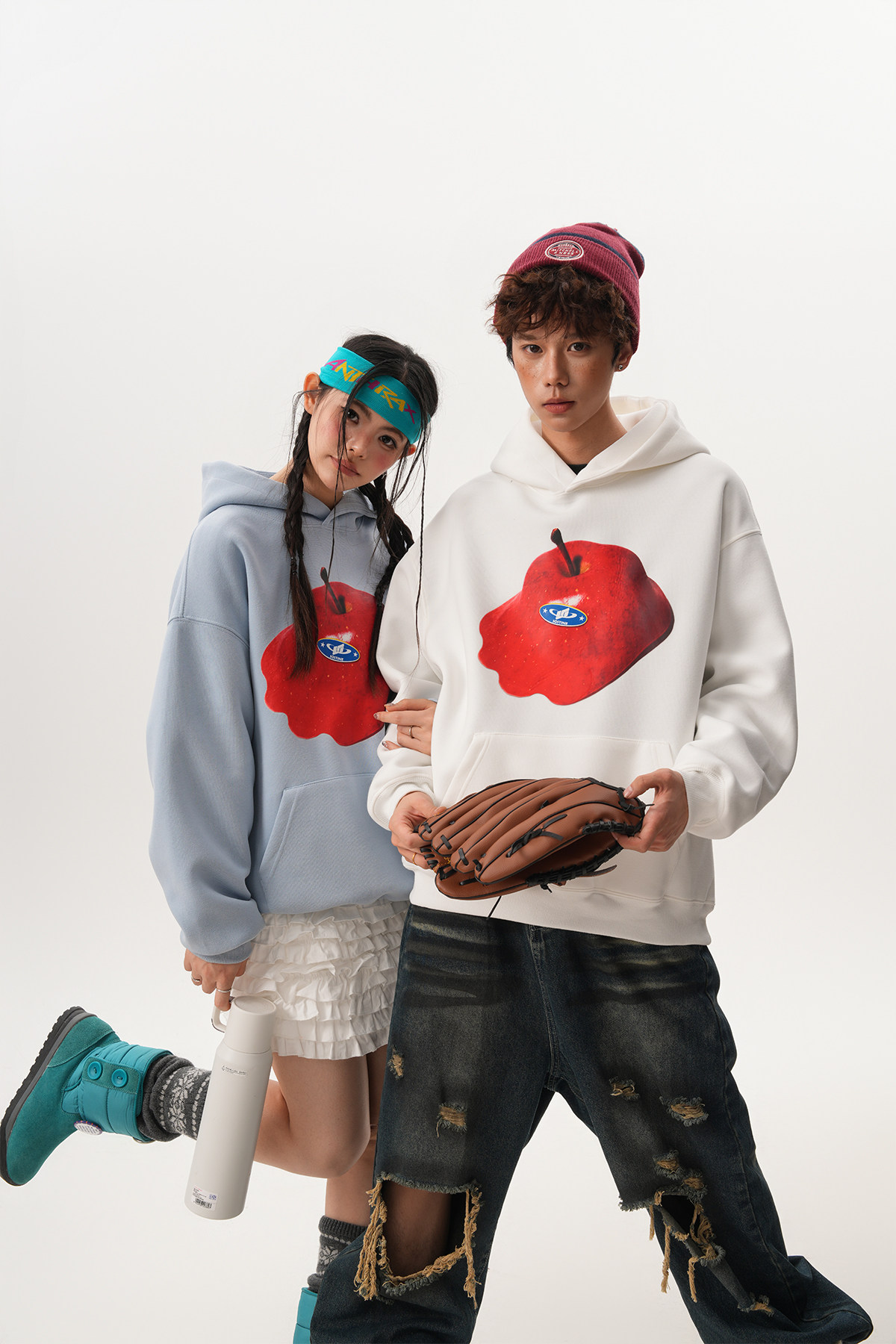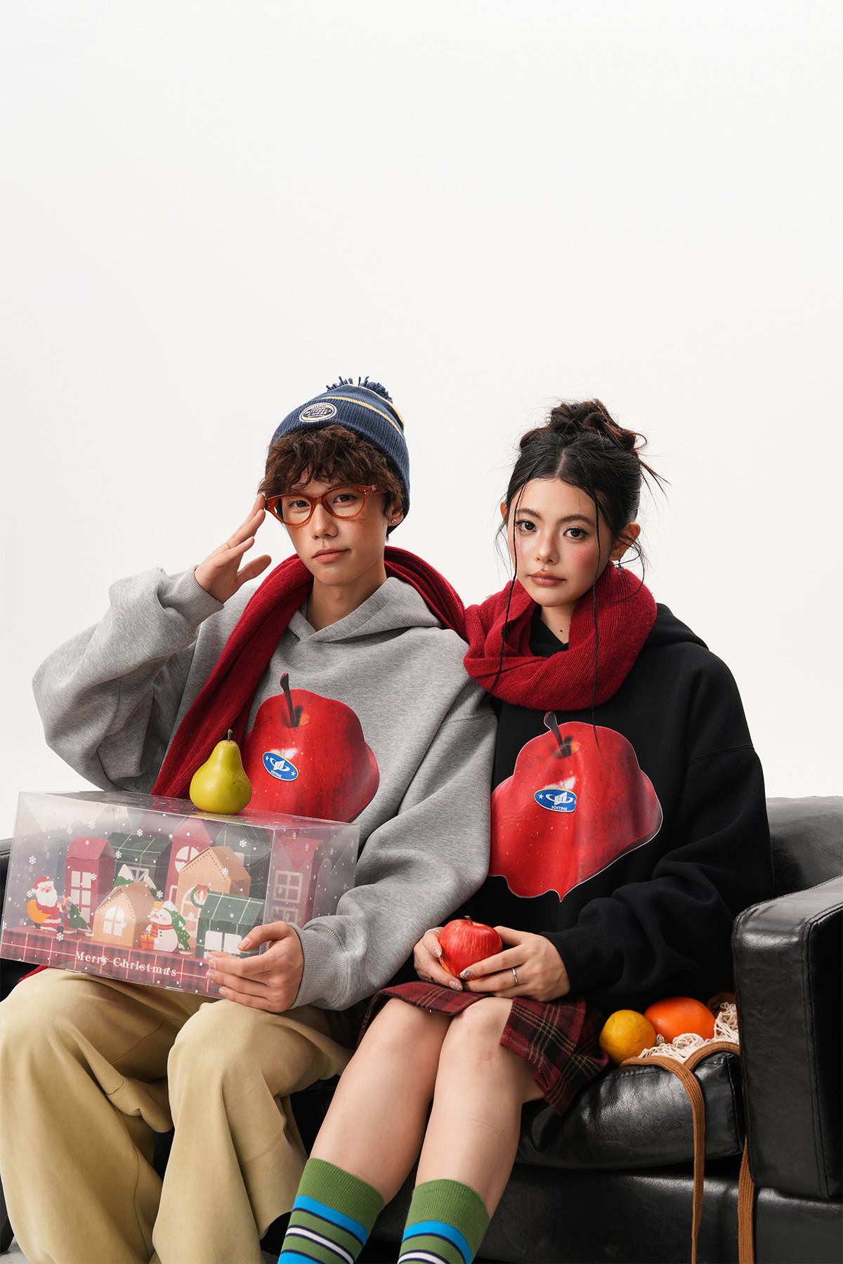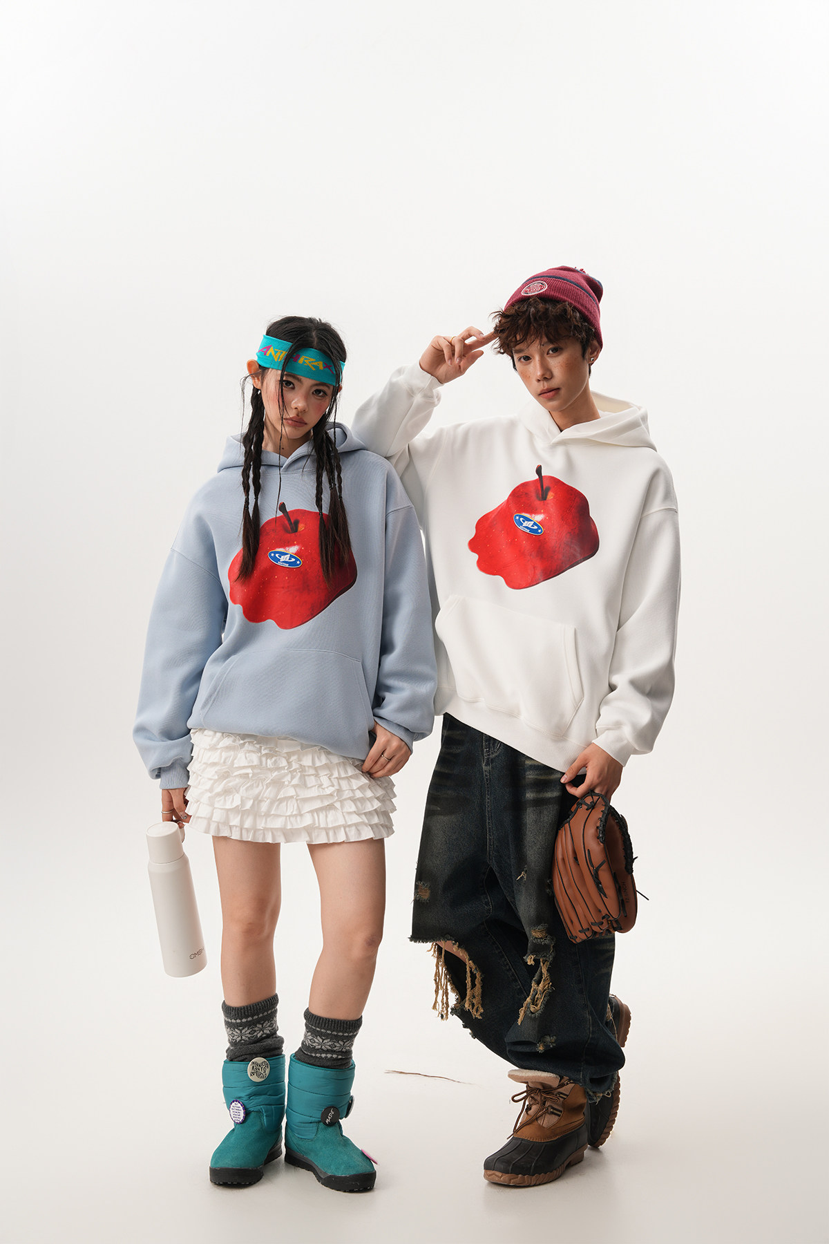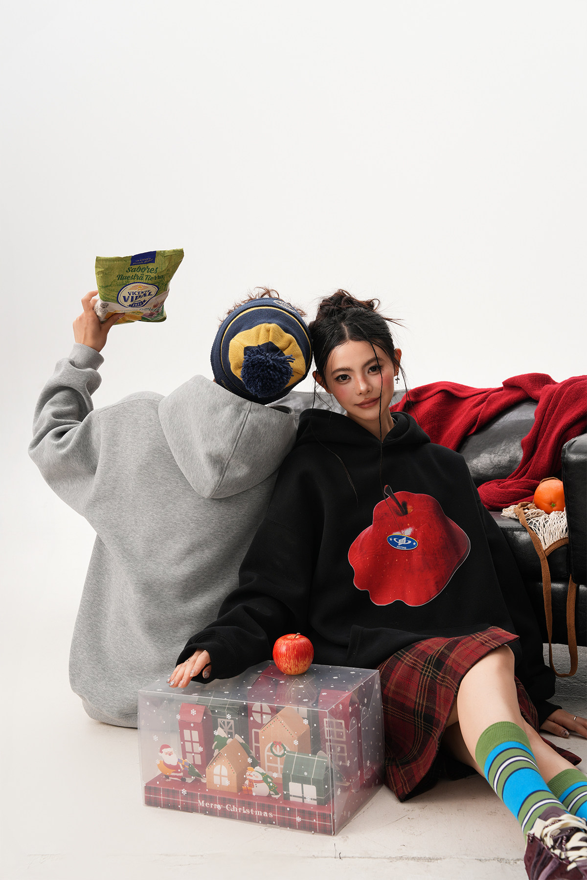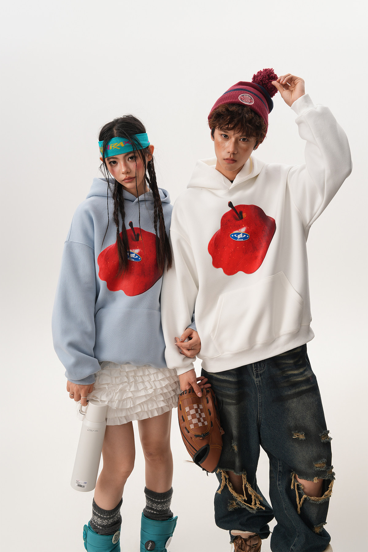 【60%OFF⭐️先行スタート!】【トップス】アップルプリント 男女兼用 ゆったり カジュアル パーカー【FCシリーズ】