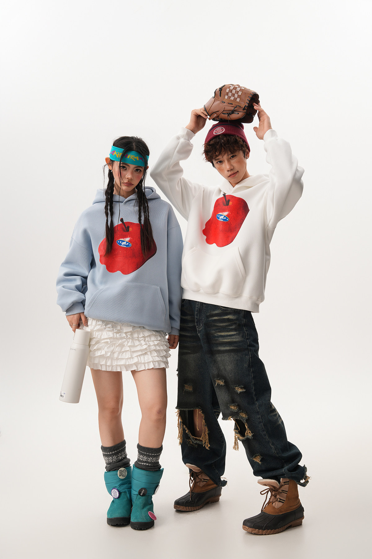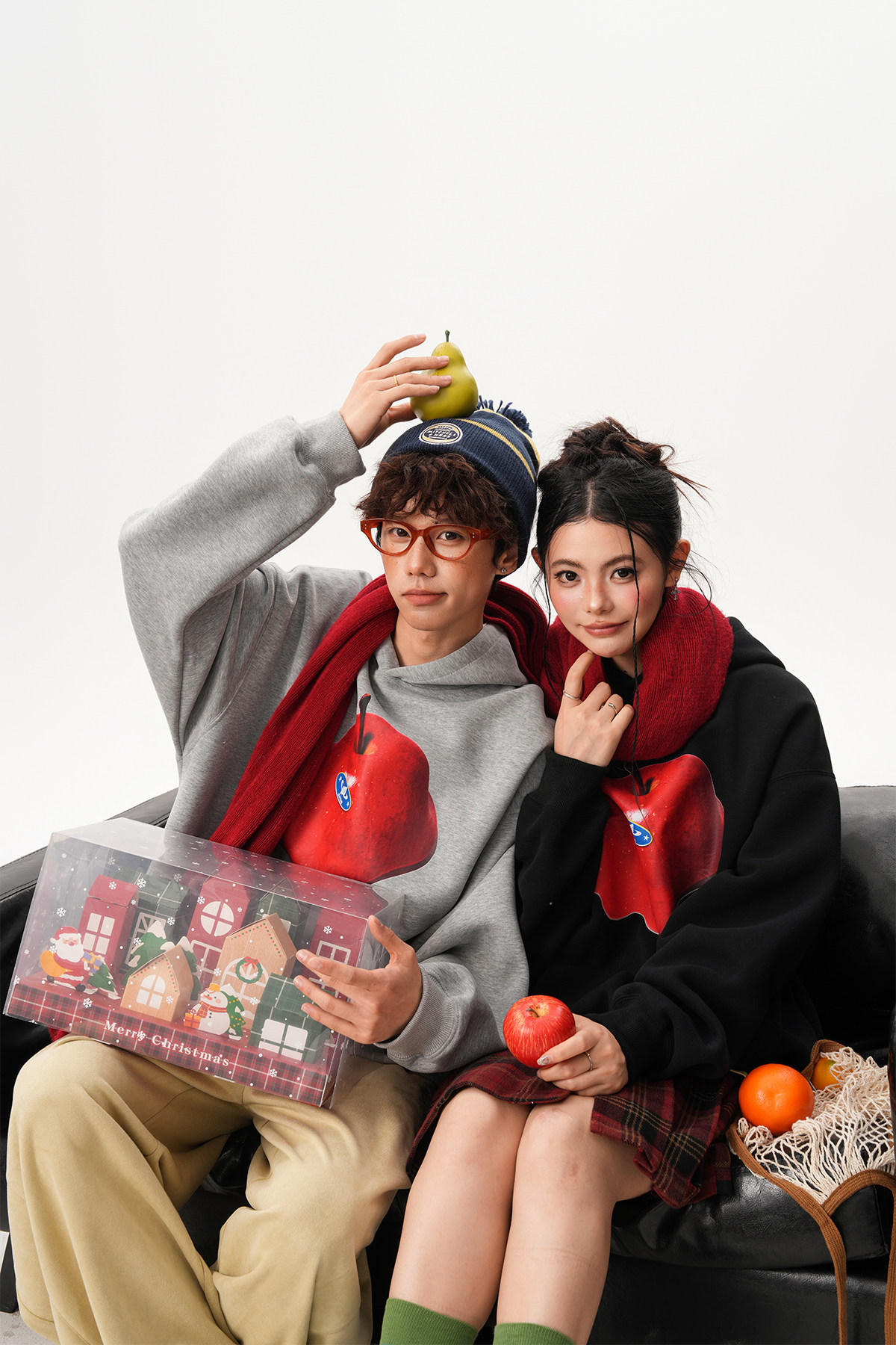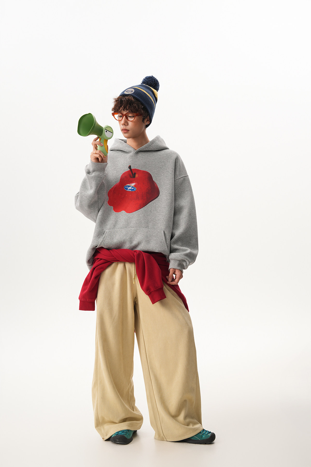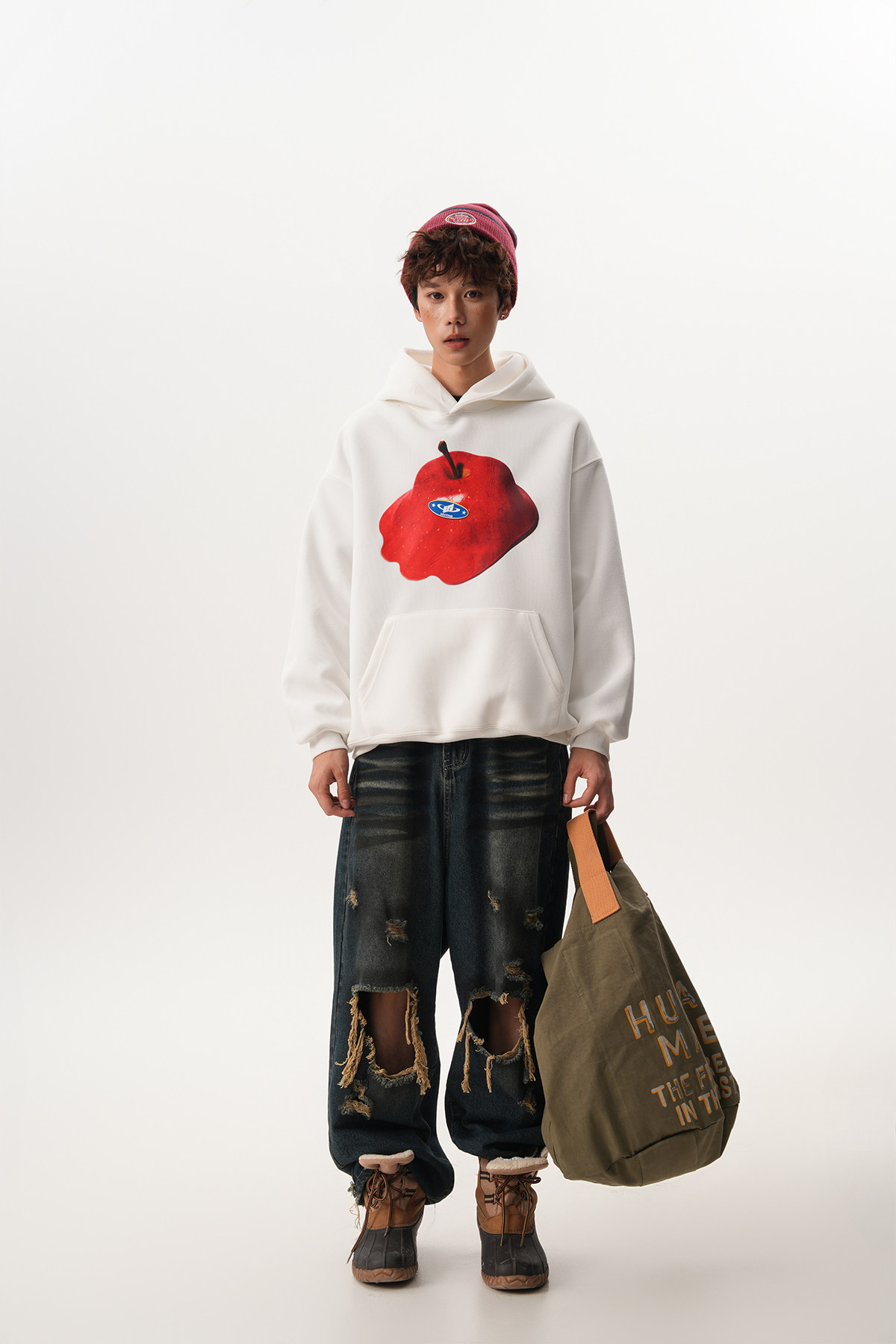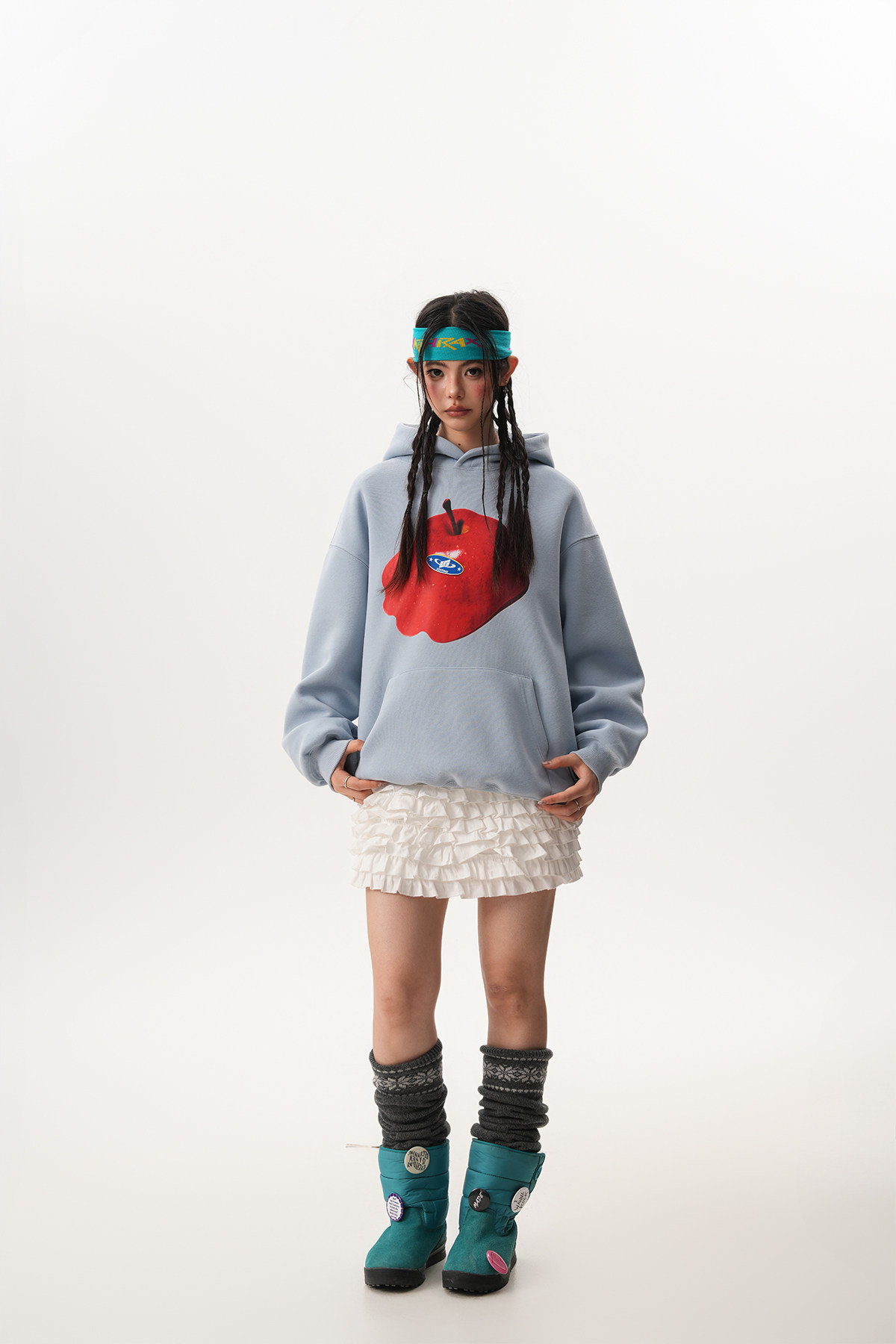 【60%OFF⭐️先行スタート!】【トップス】アップルプリント 男女兼用 ゆったり カジュアル パーカー【FCシリーズ】