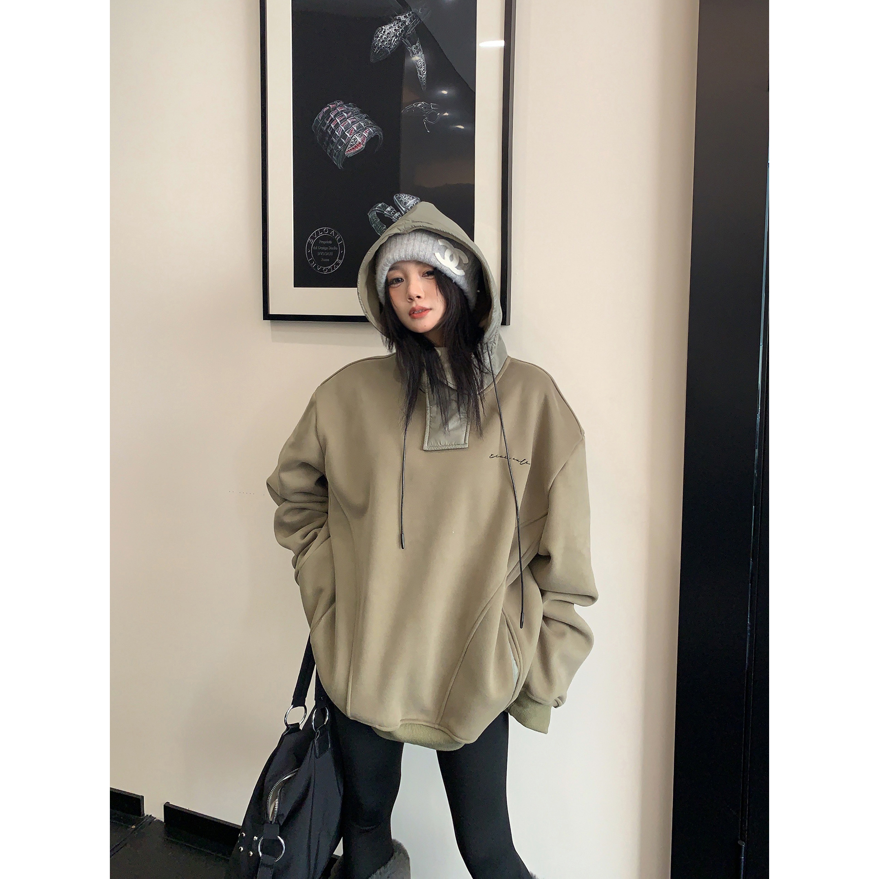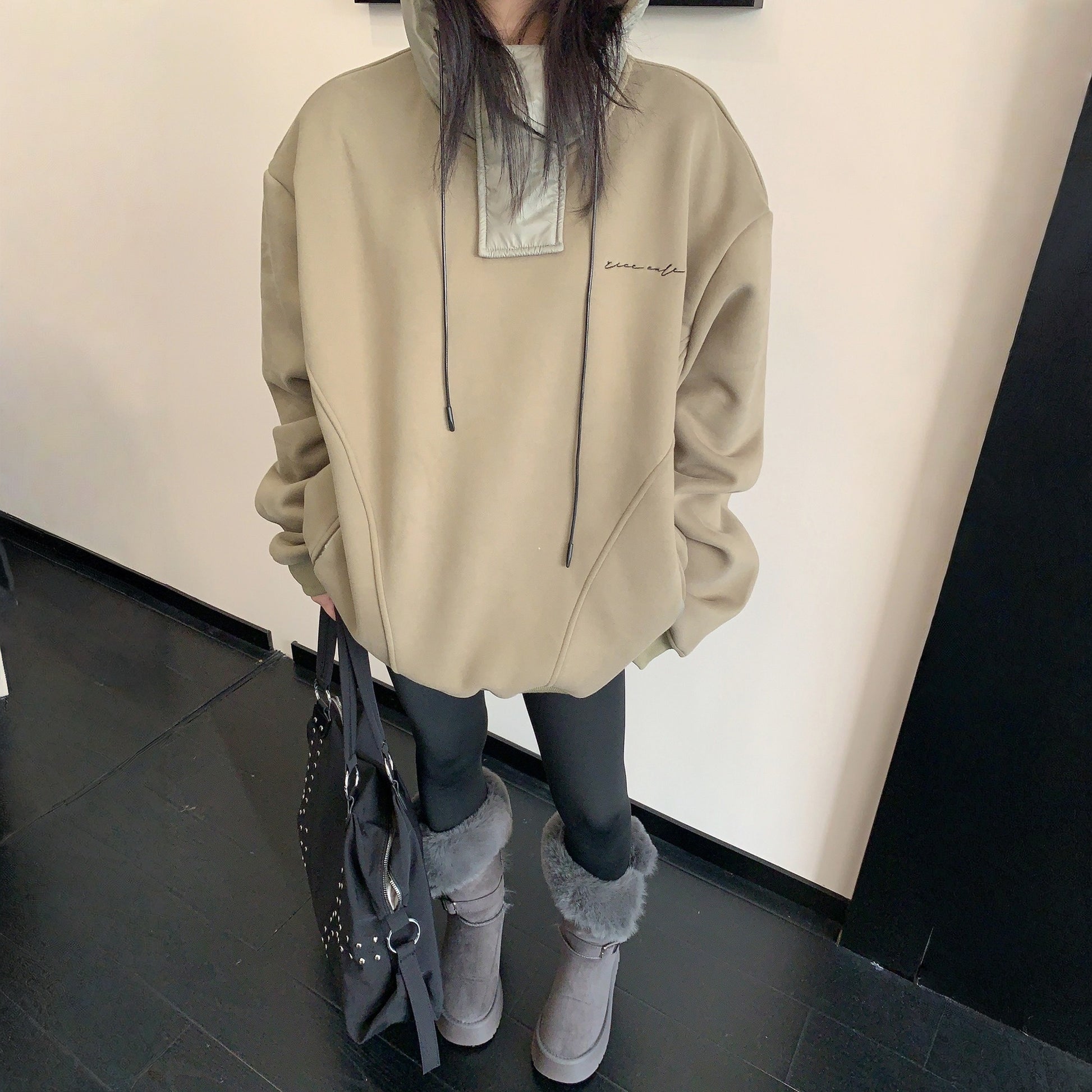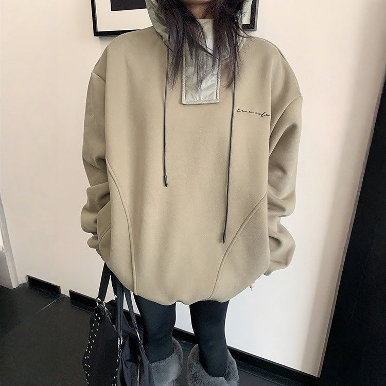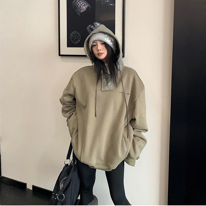 【トップス】裏起毛 春 秋 冬 切り替え ルーズ フード付きパーカー 【FCシリーズ】