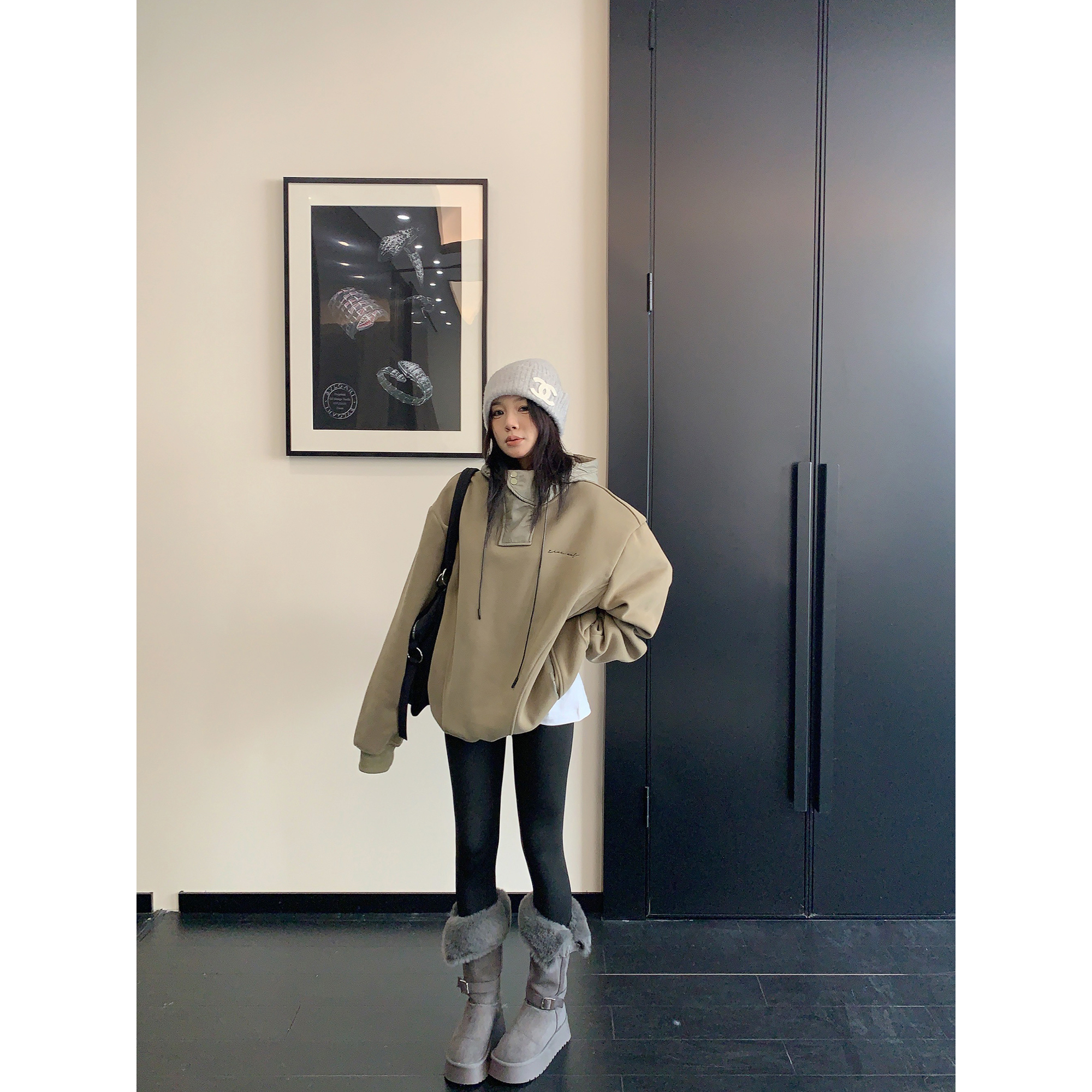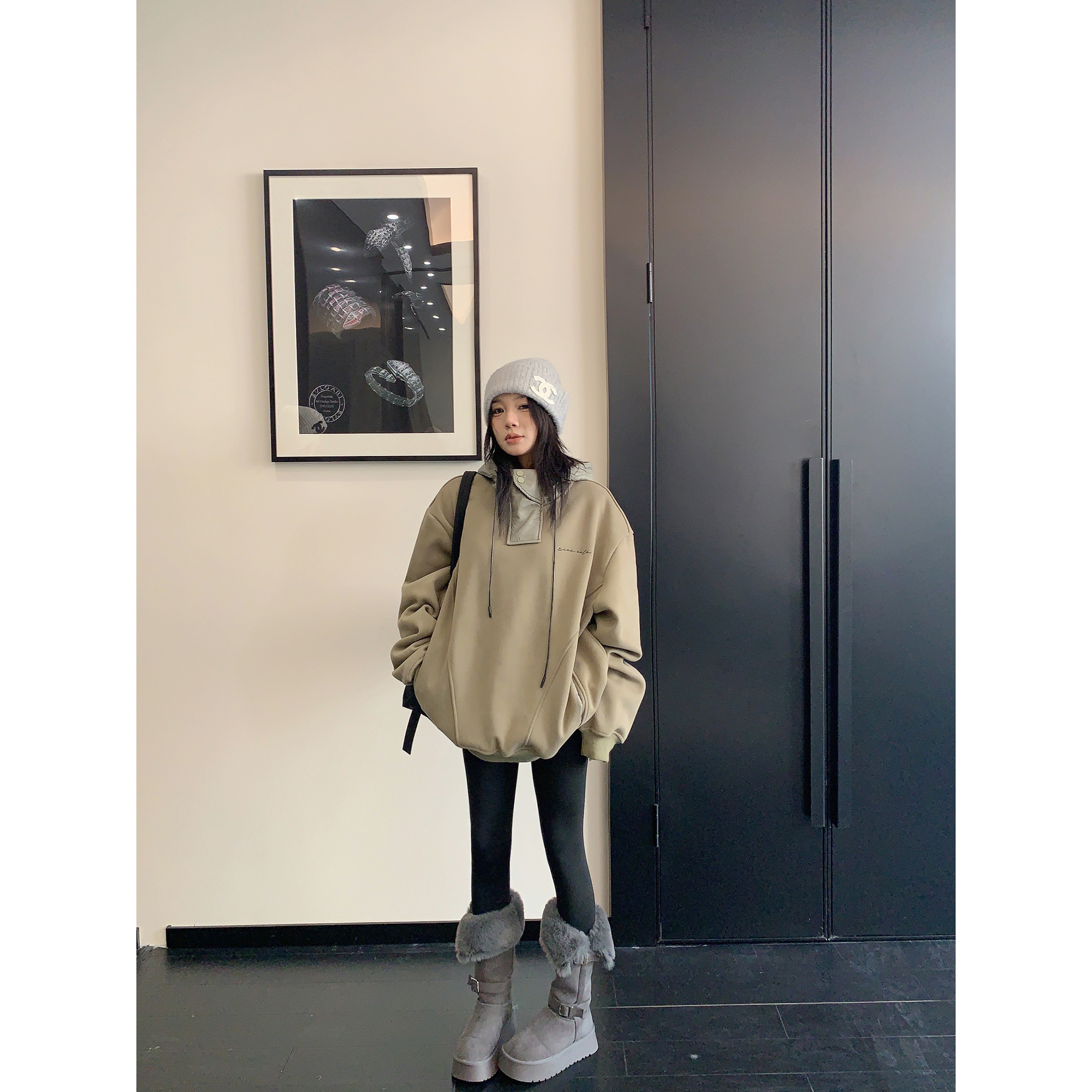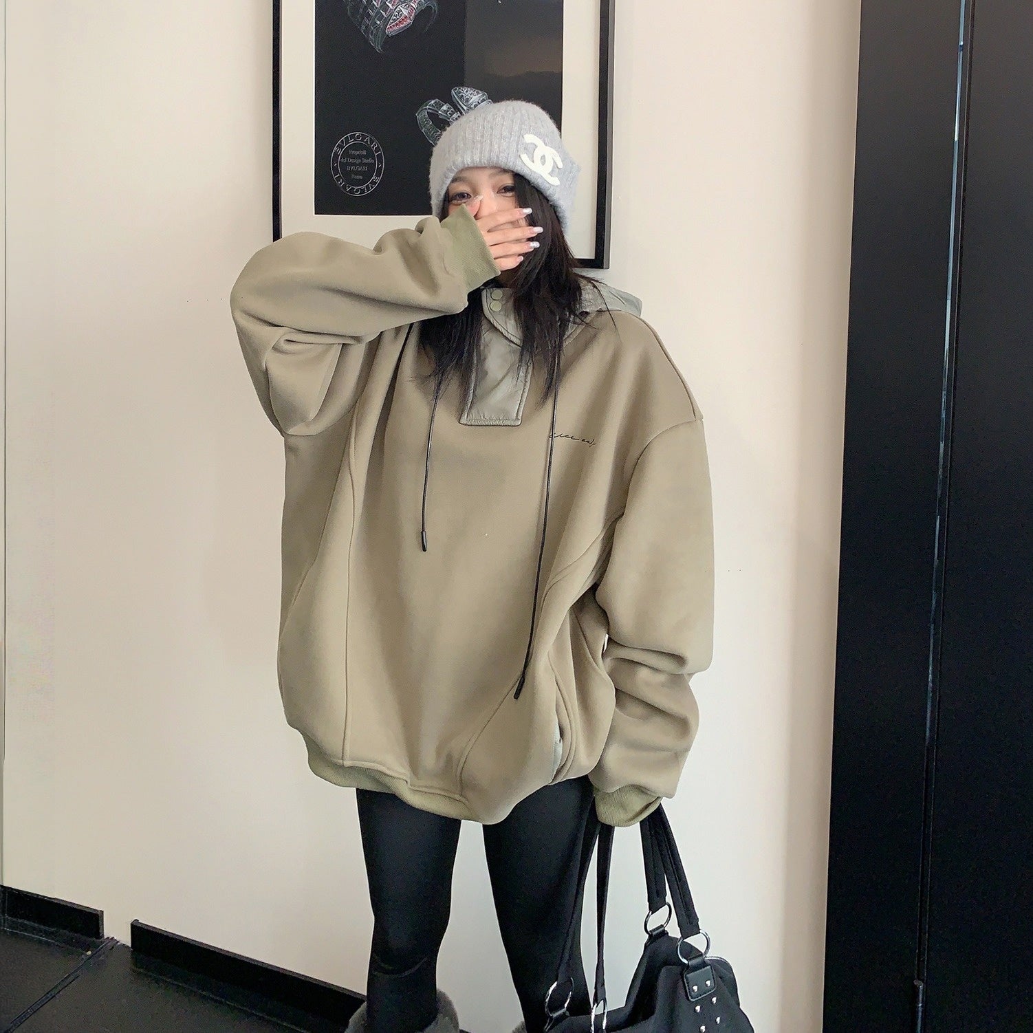 【トップス】裏起毛 春 秋 冬 切り替え ルーズ フード付きパーカー 【FCシリーズ】