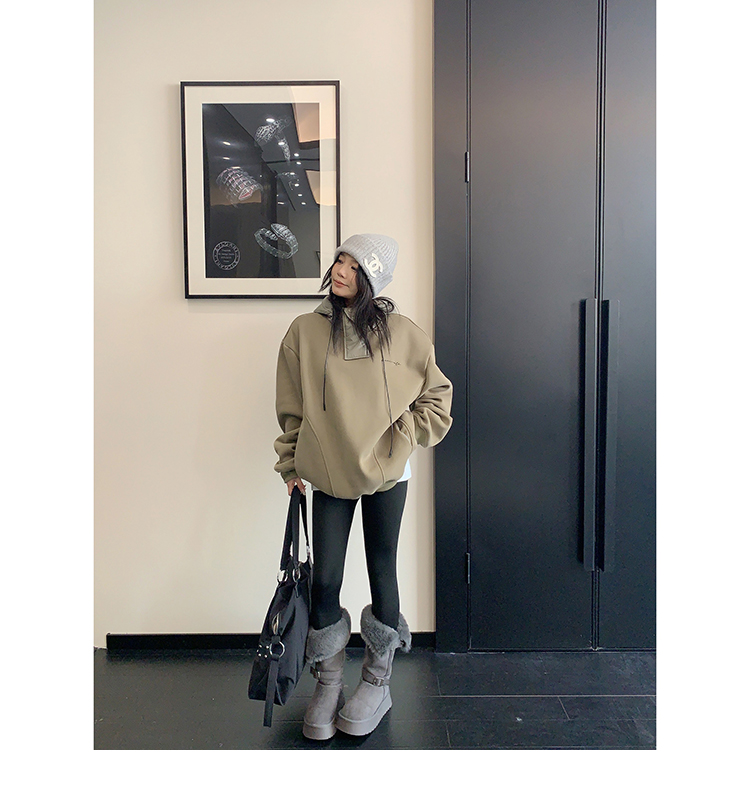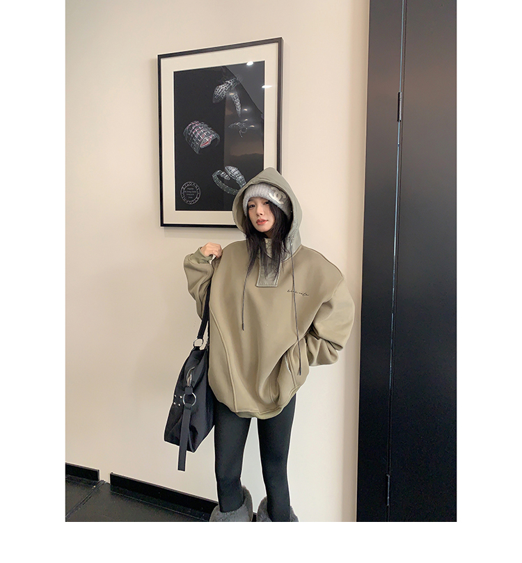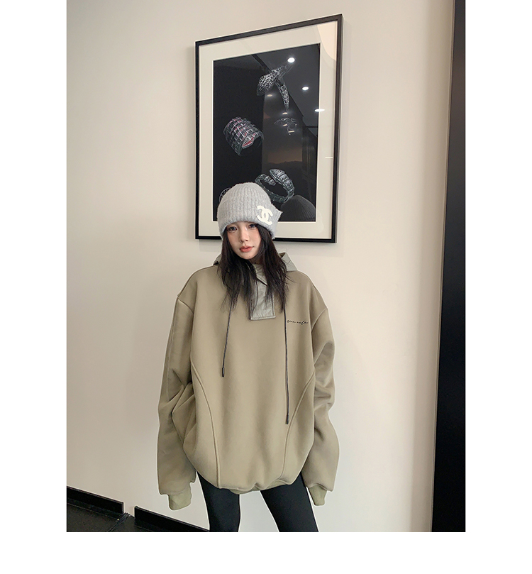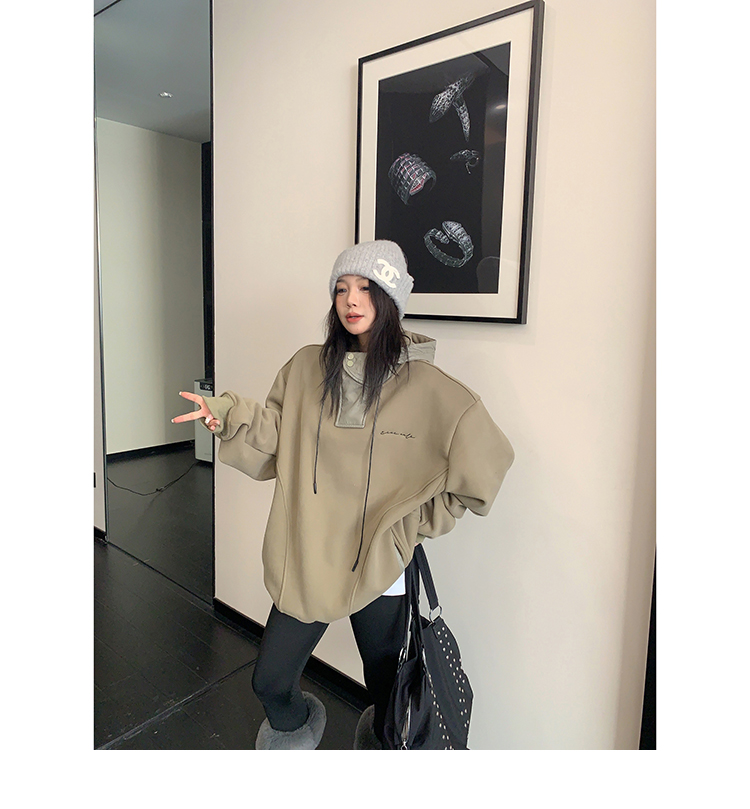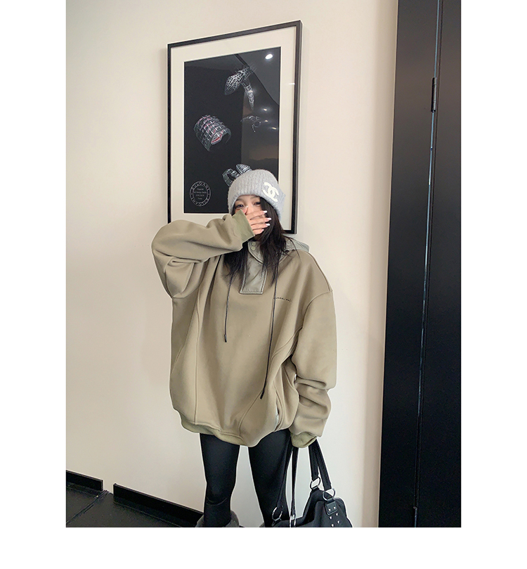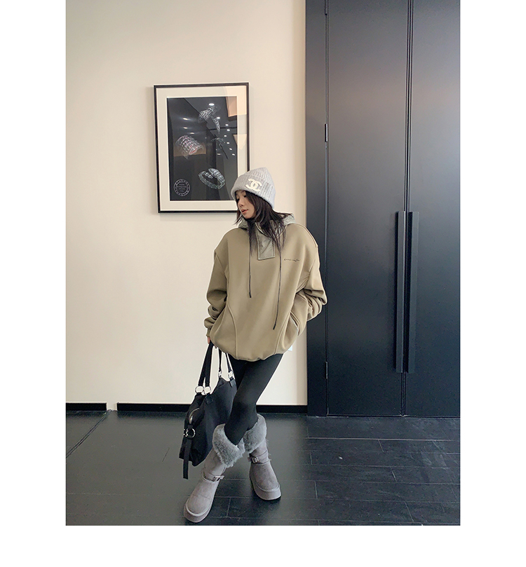 【商品名】【トップス】裏起毛 春 秋 冬 切り替え ルーズ フード付きパーカー 【FCシリーズ】