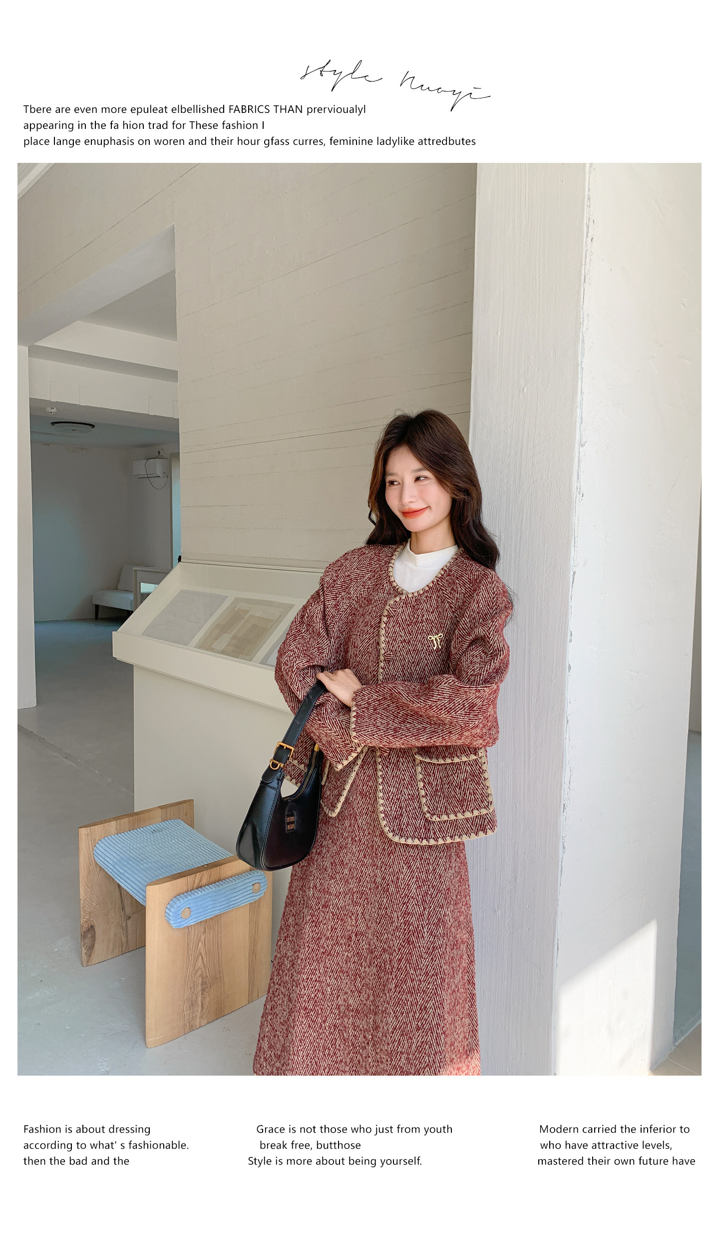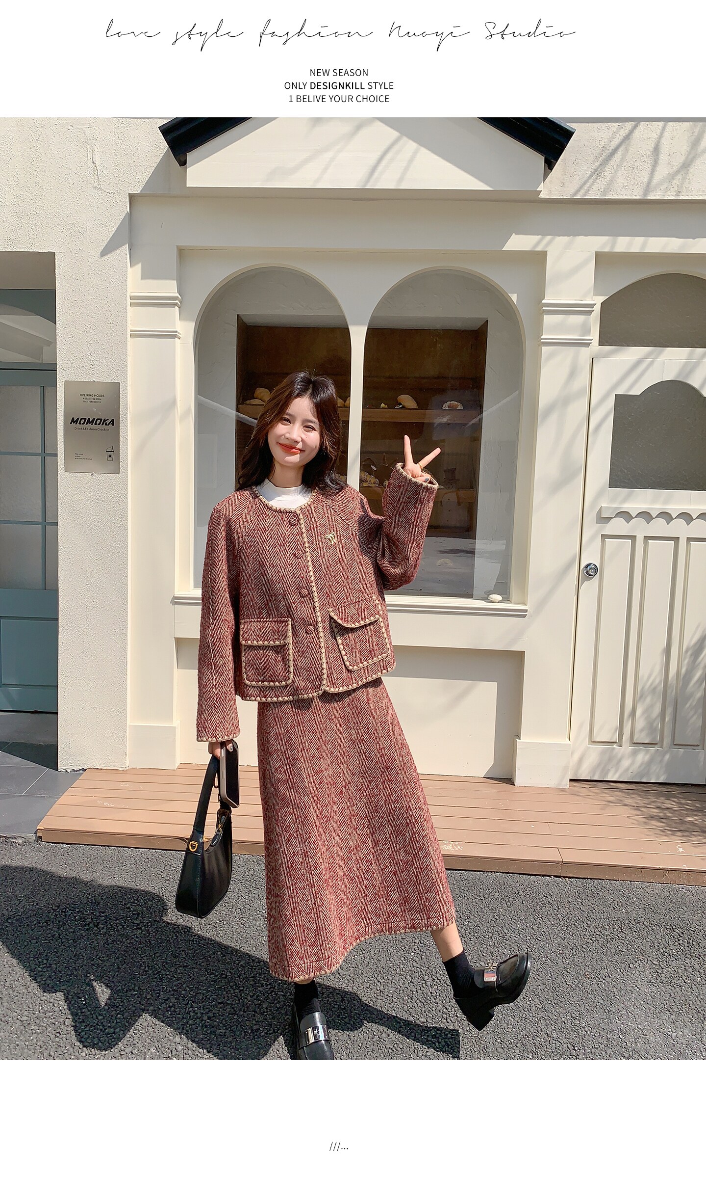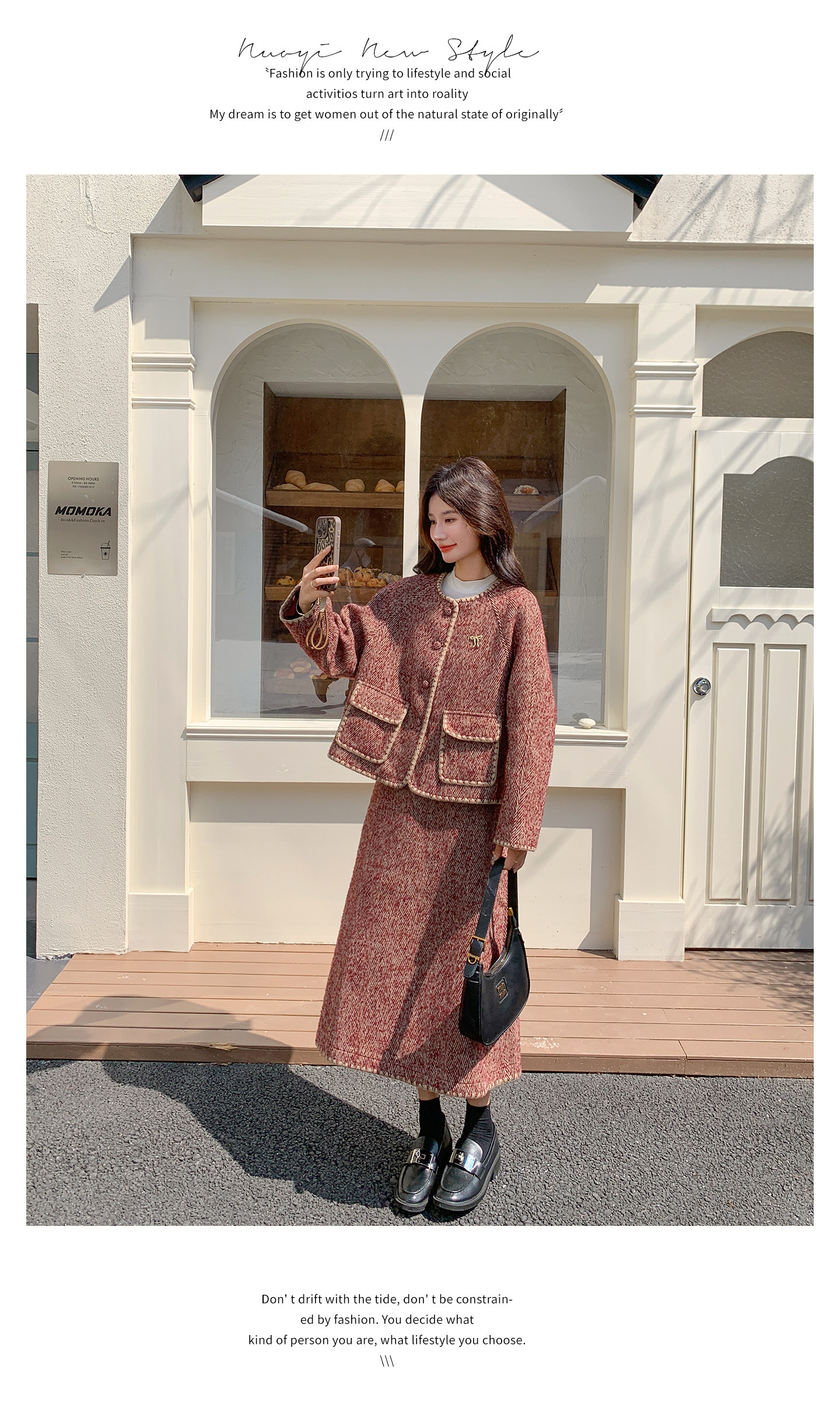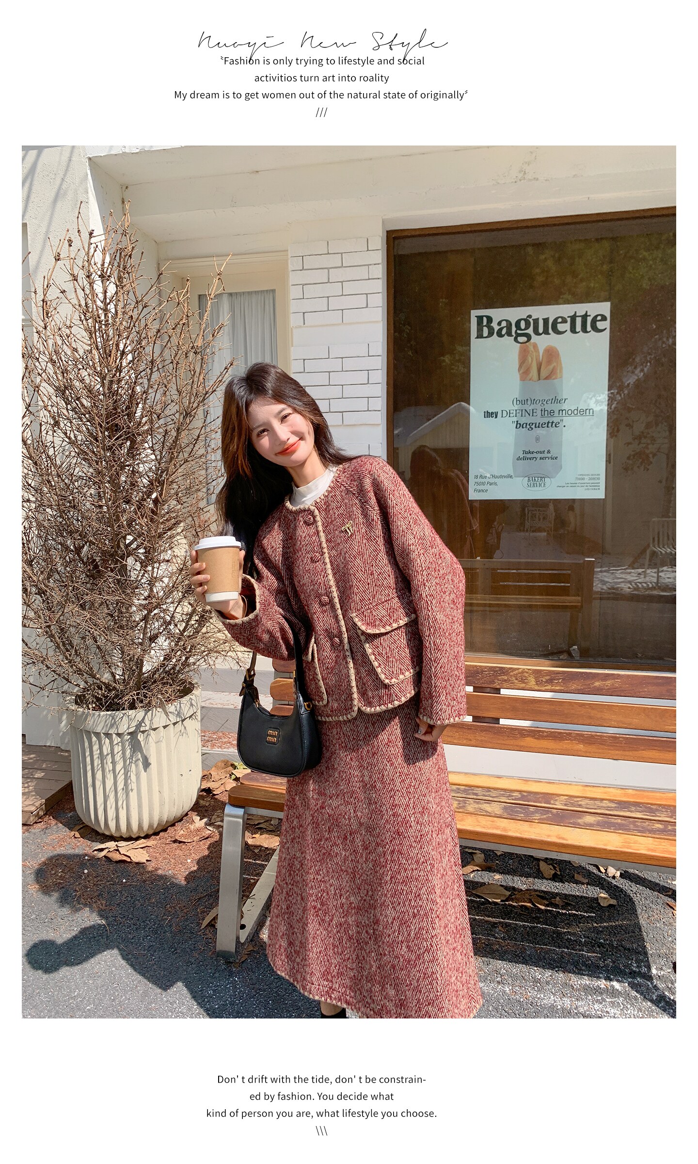 【商品名】【セットアップ】ウール調 ジャケット&スカート 上下セット レディース 秋冬 OOTD 上品 大人可愛い【JZシリーズ】