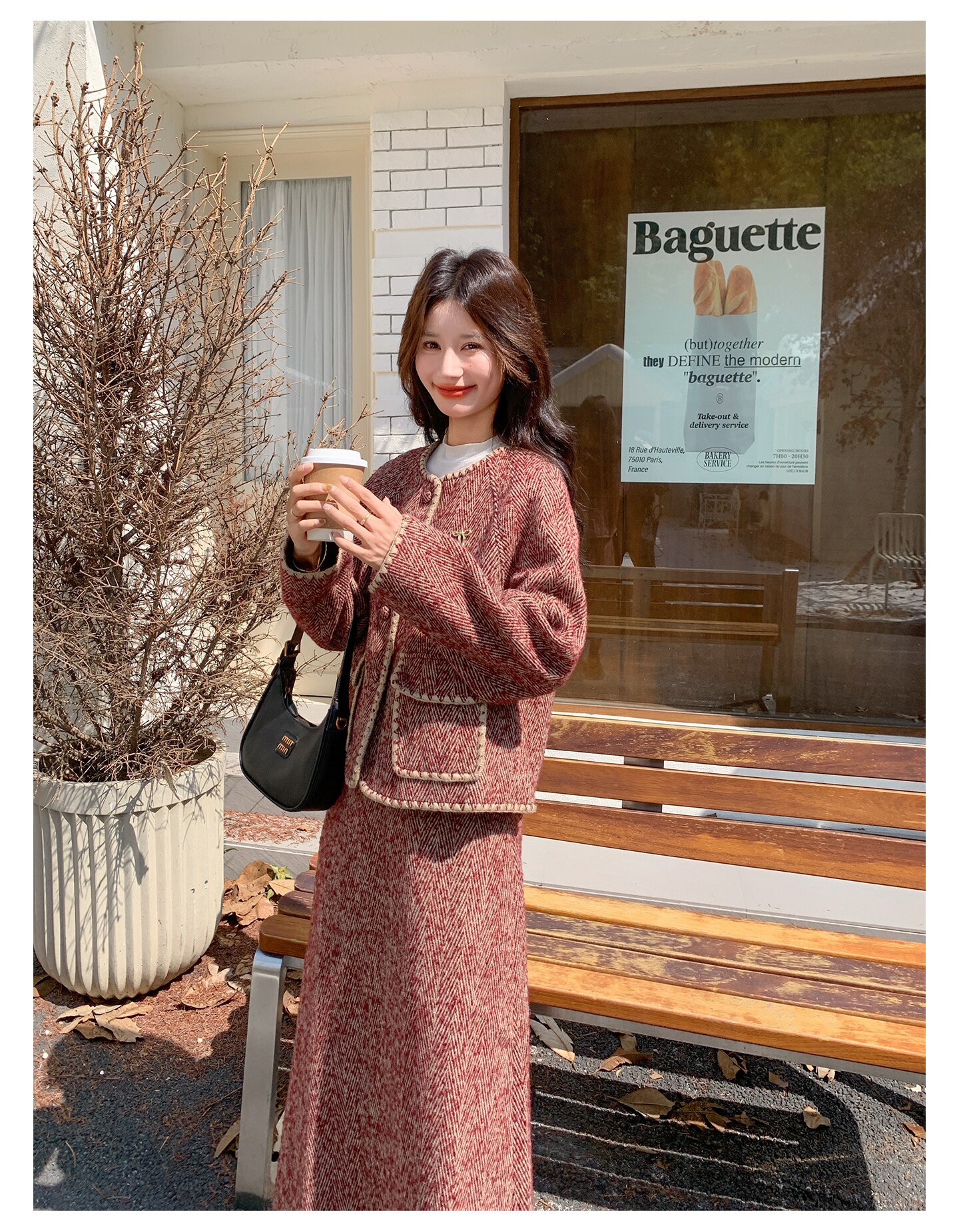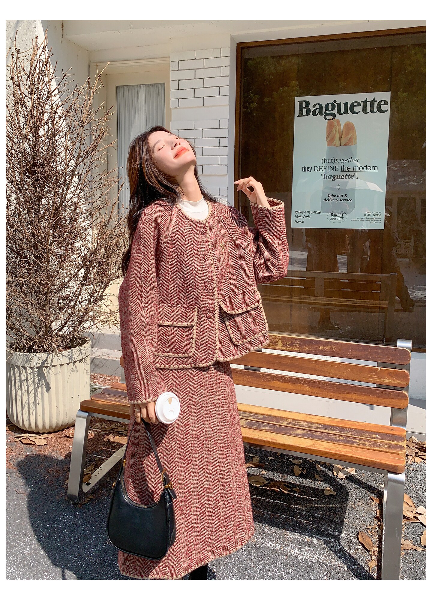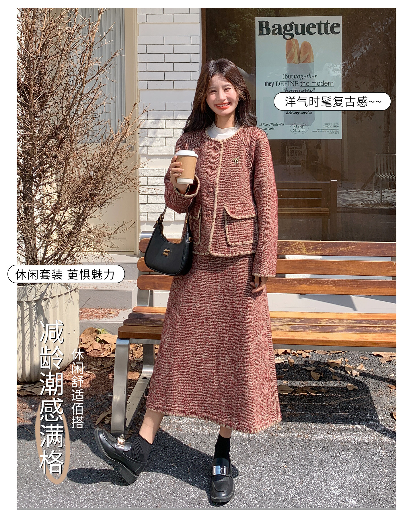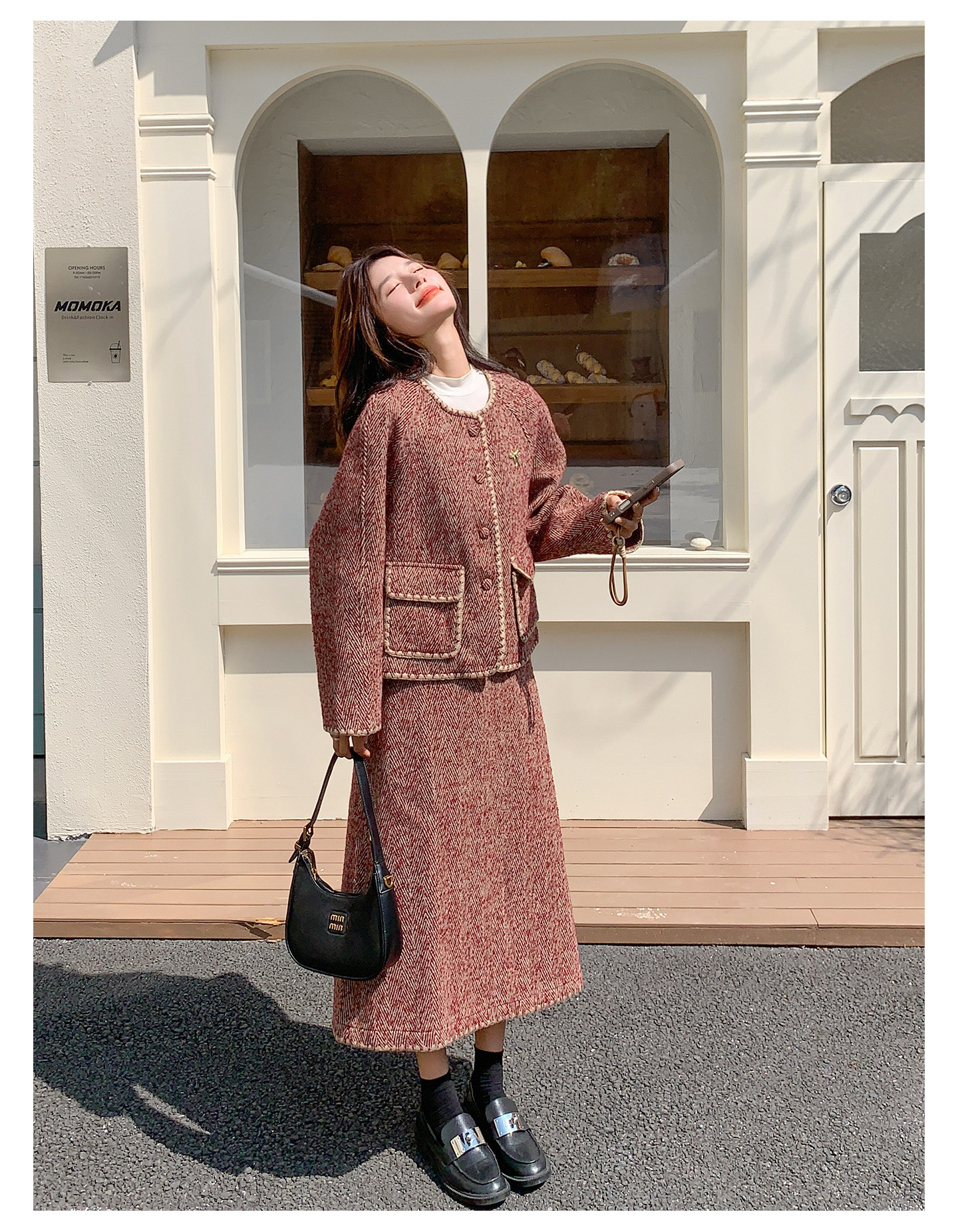 【セットアップ】ウール調 ジャケット&スカート 上下セット レディース 秋冬 OOTD 上品 大人可愛い【JZシリーズ】