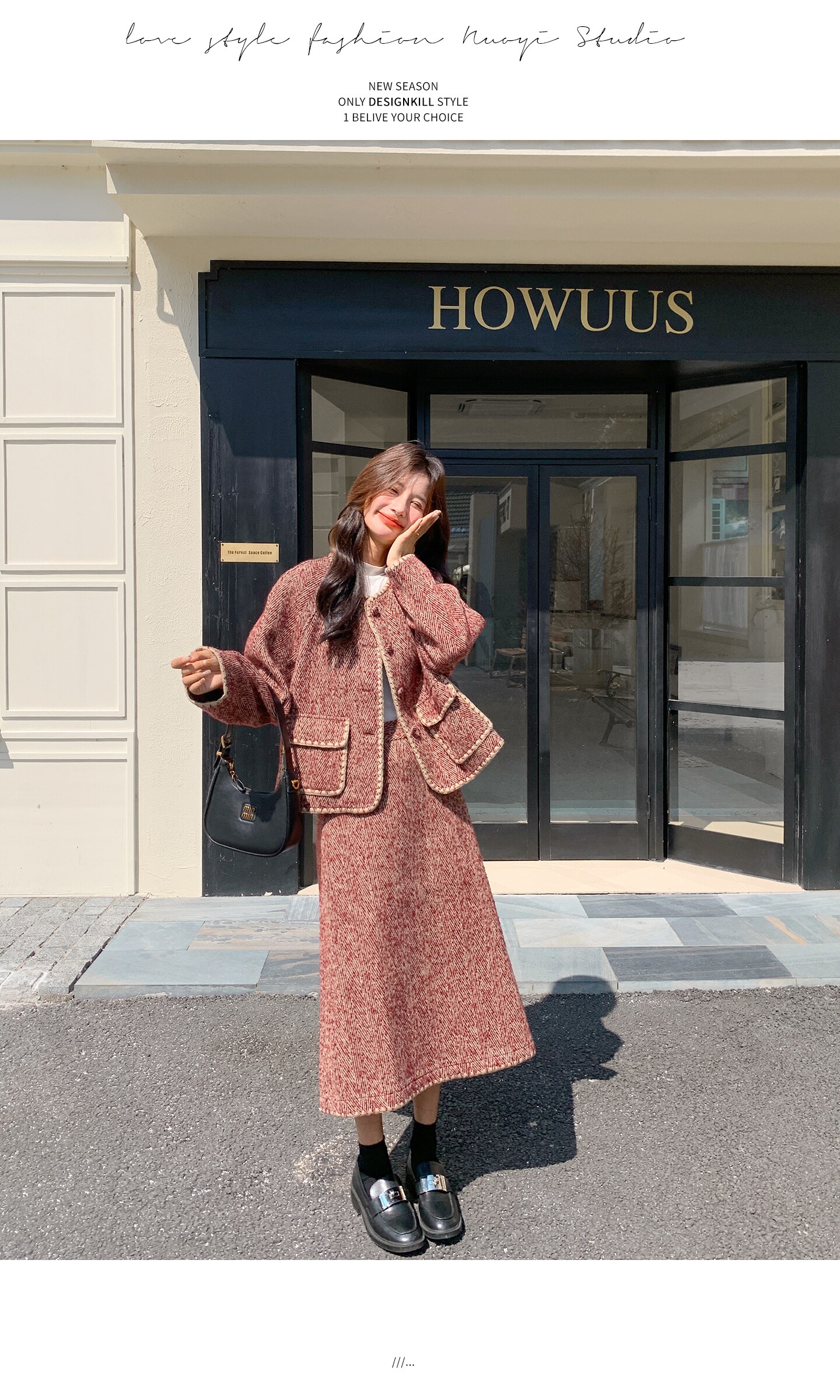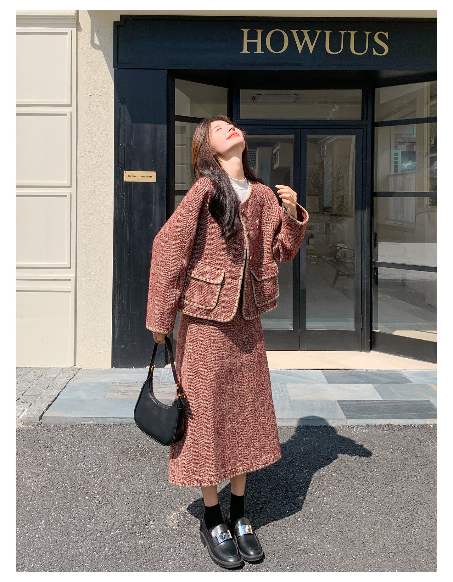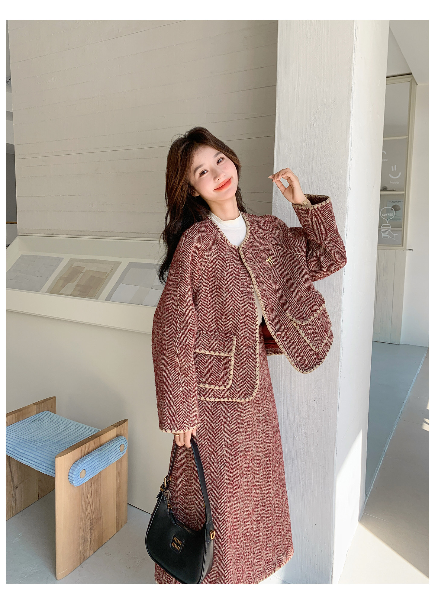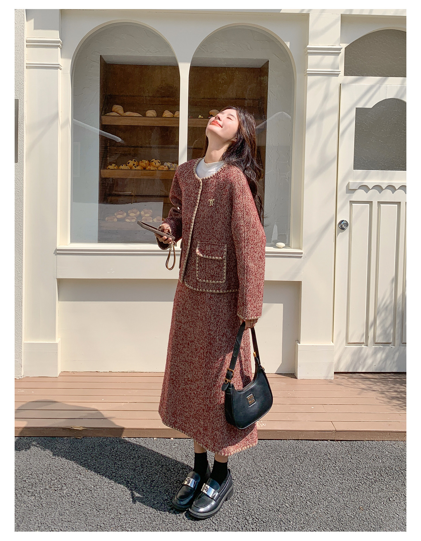 【セットアップ】ウール調 ジャケット&スカート 上下セット レディース 秋冬 OOTD 上品 大人可愛い【JZシリーズ】