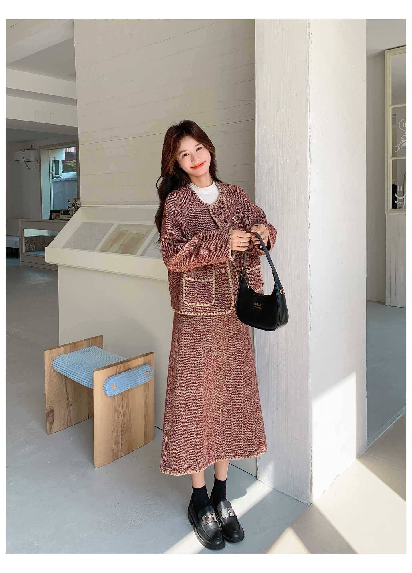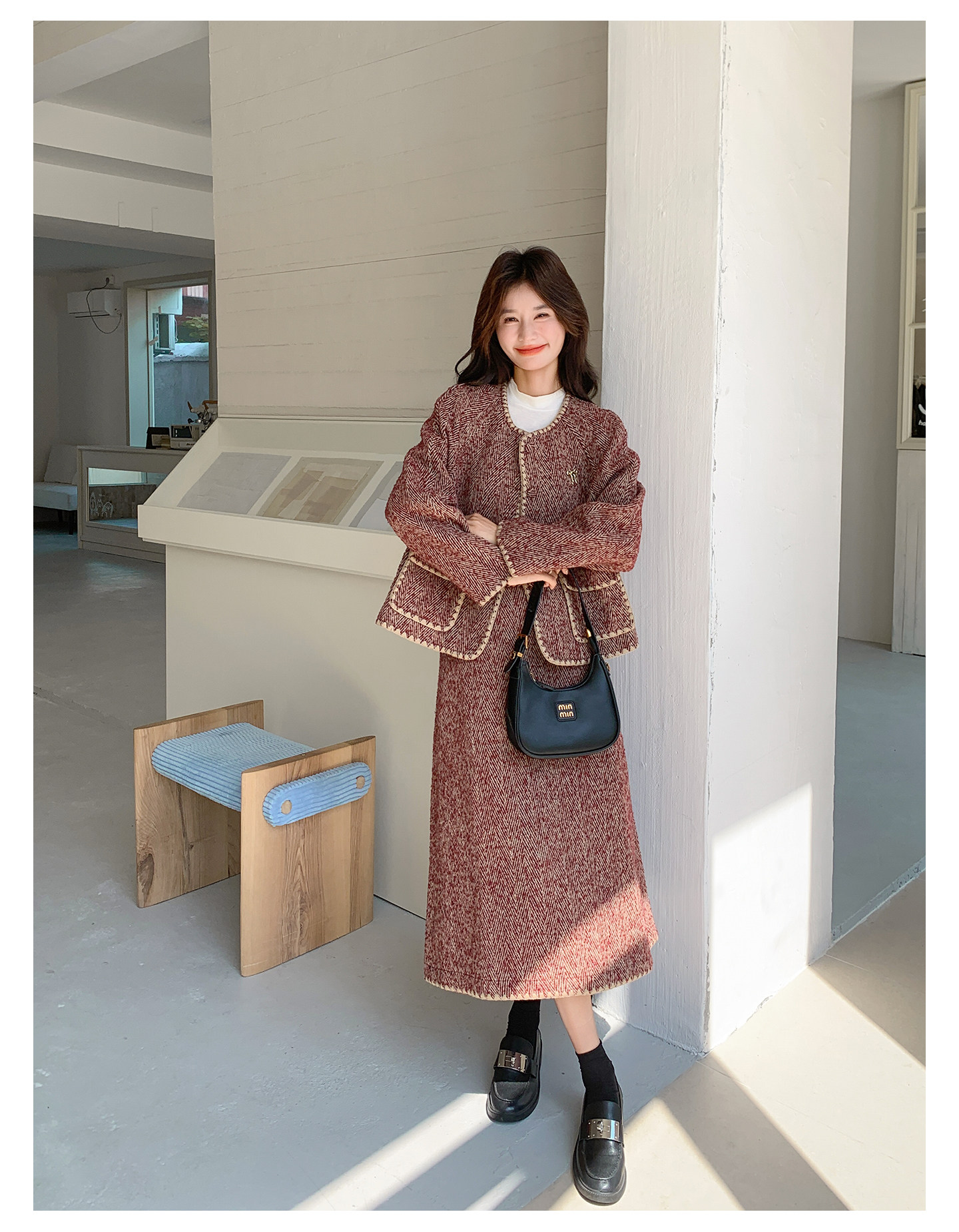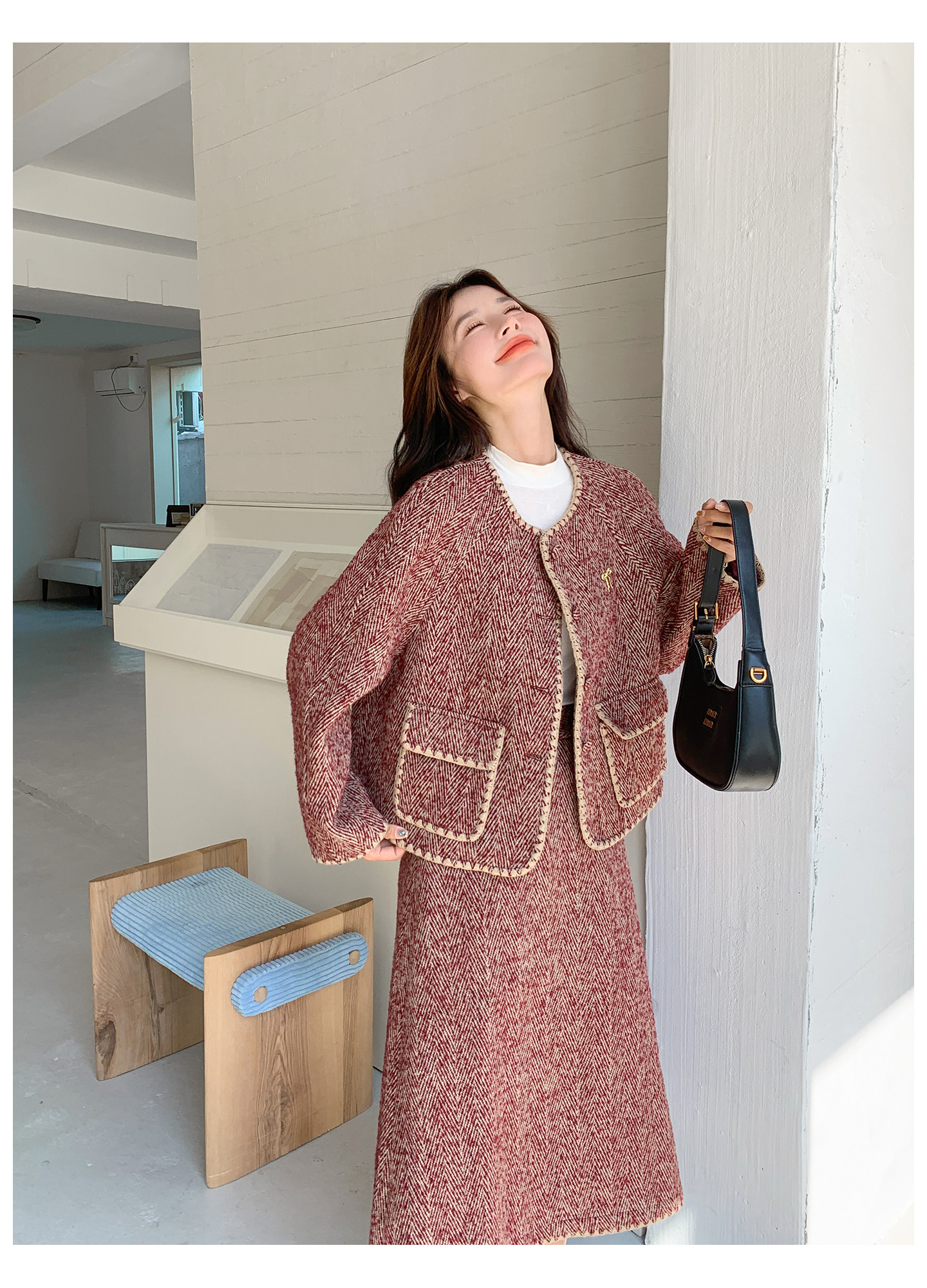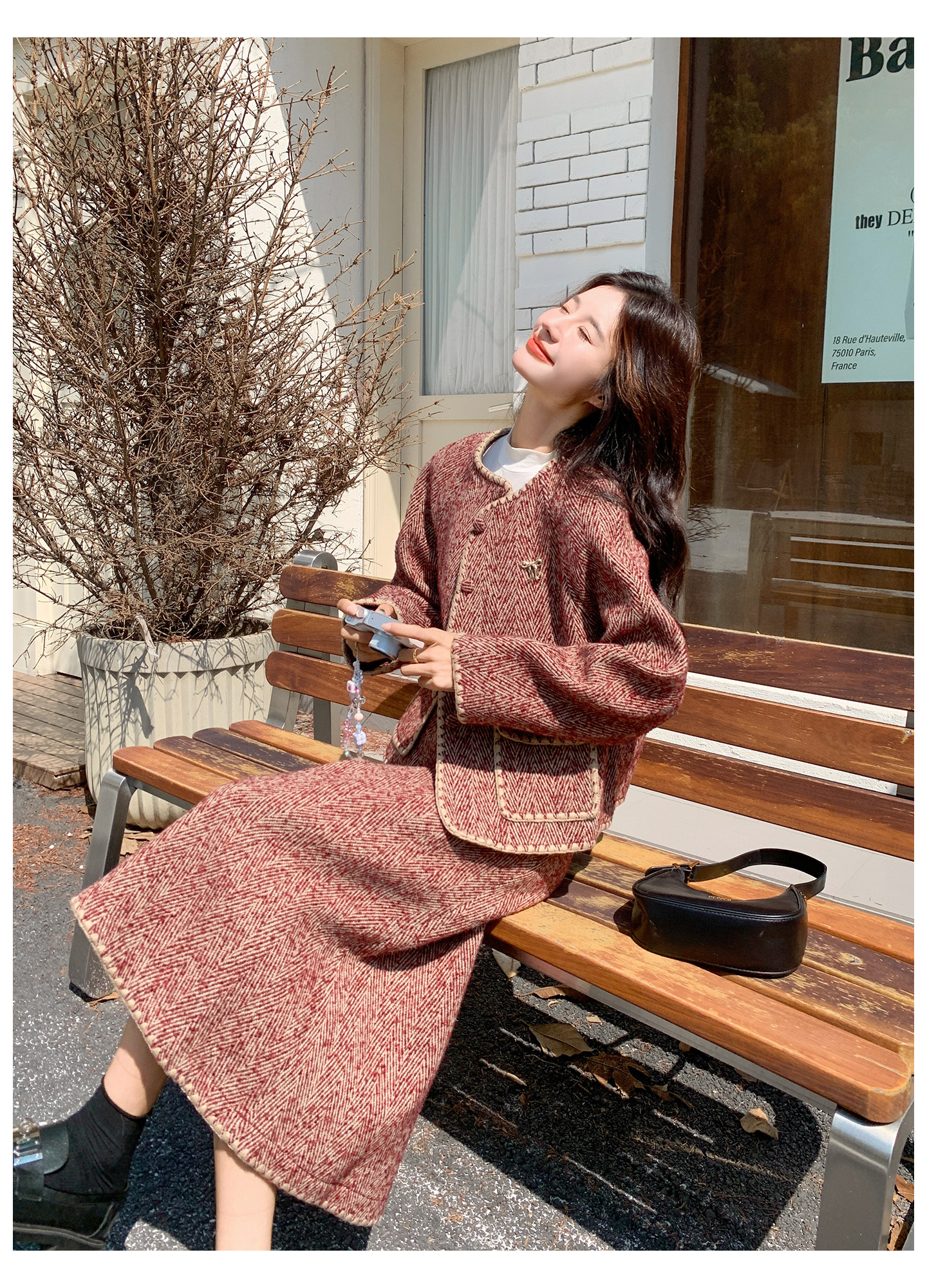 【セットアップ】ウール調 ジャケット&スカート 上下セット レディース 秋冬 OOTD 上品 大人可愛い【JZシリーズ】