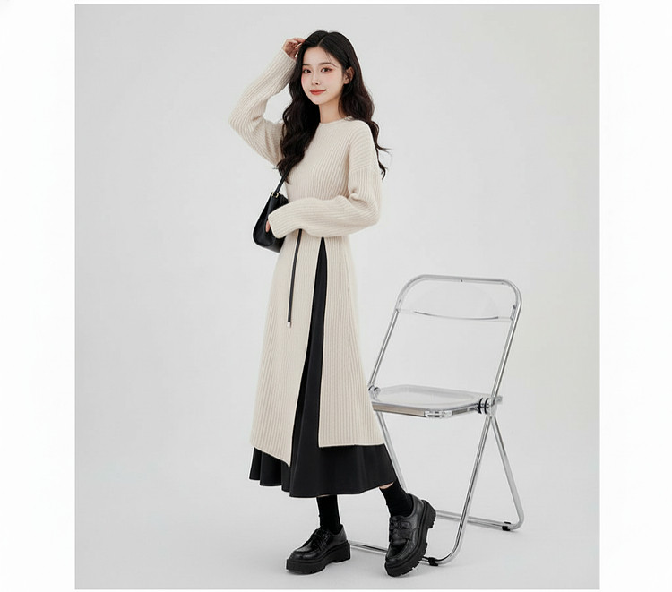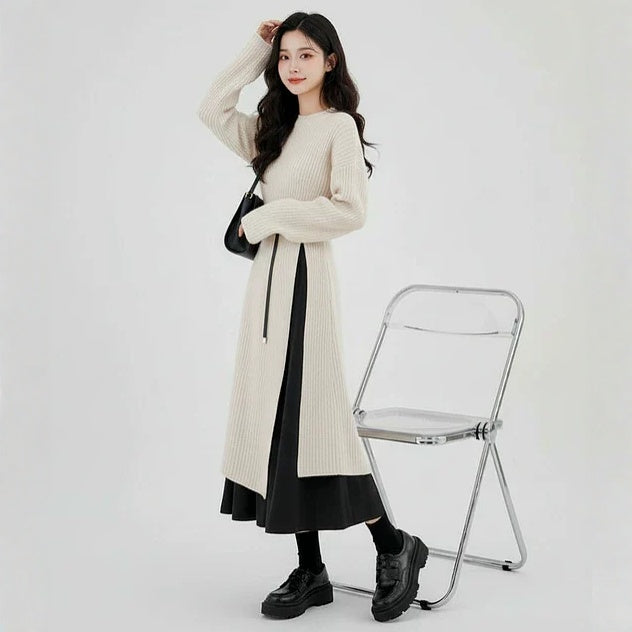 【商品名】【セットアップ】春 秋 冬 ニット ニットワンピース + インナー ロングワンピース 2点セット 【JZシリーズ】