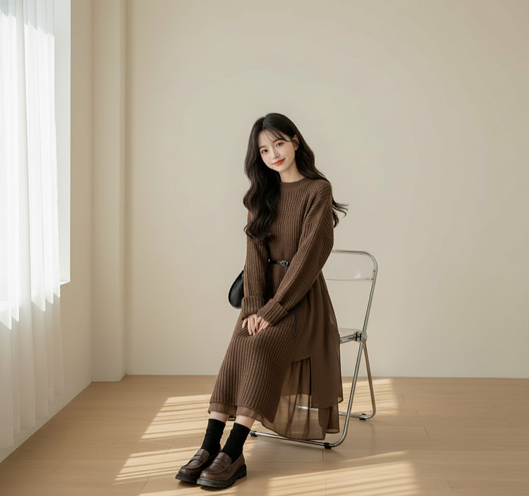 【ワンピース】春 秋 冬 ニット ワンピース + スカート 2点セット 【JZシリーズ】