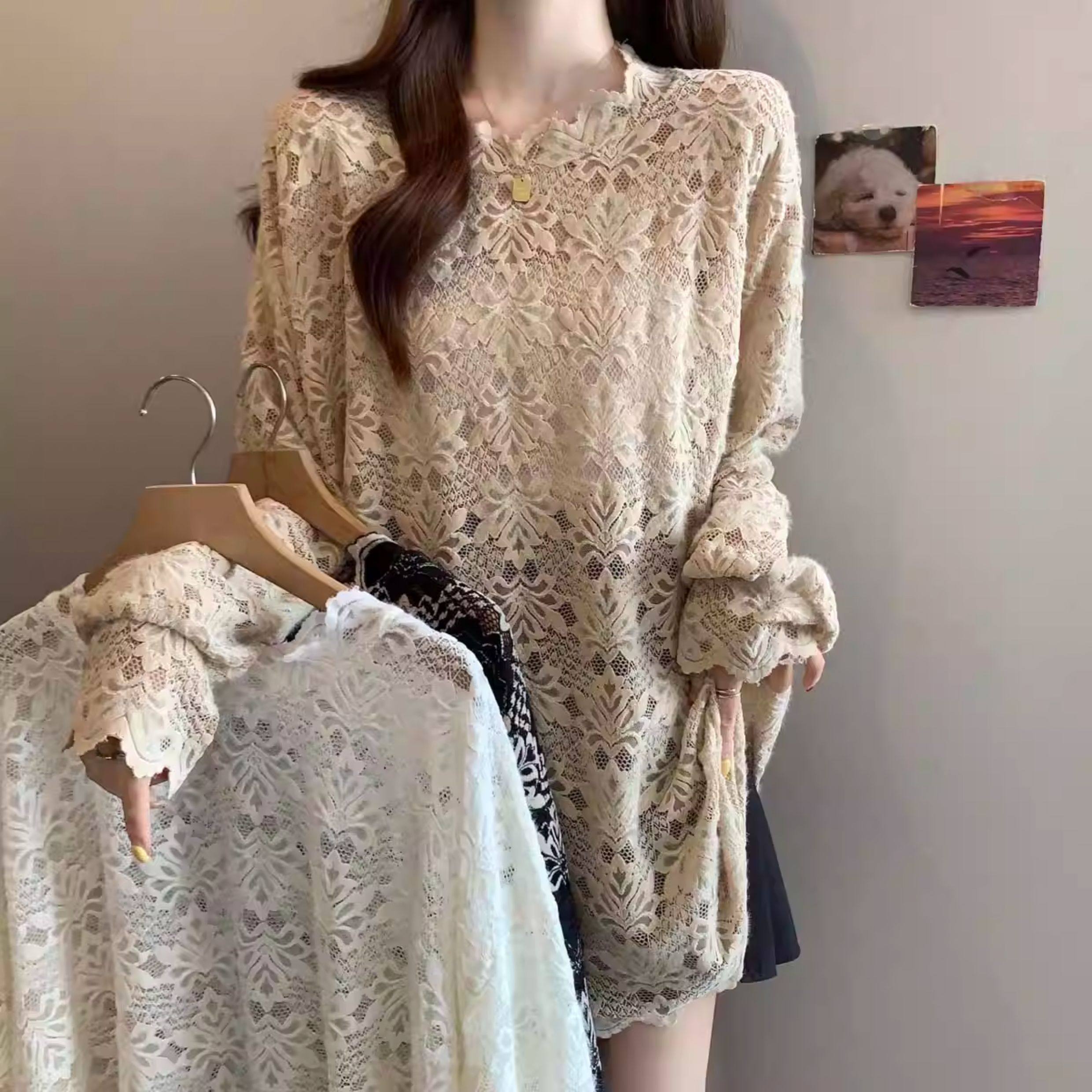 【商品名】【トップス】レース クロッシェ カットワーク 着痩せ 大きいサイズ Tシャツ【SHシリーズ】