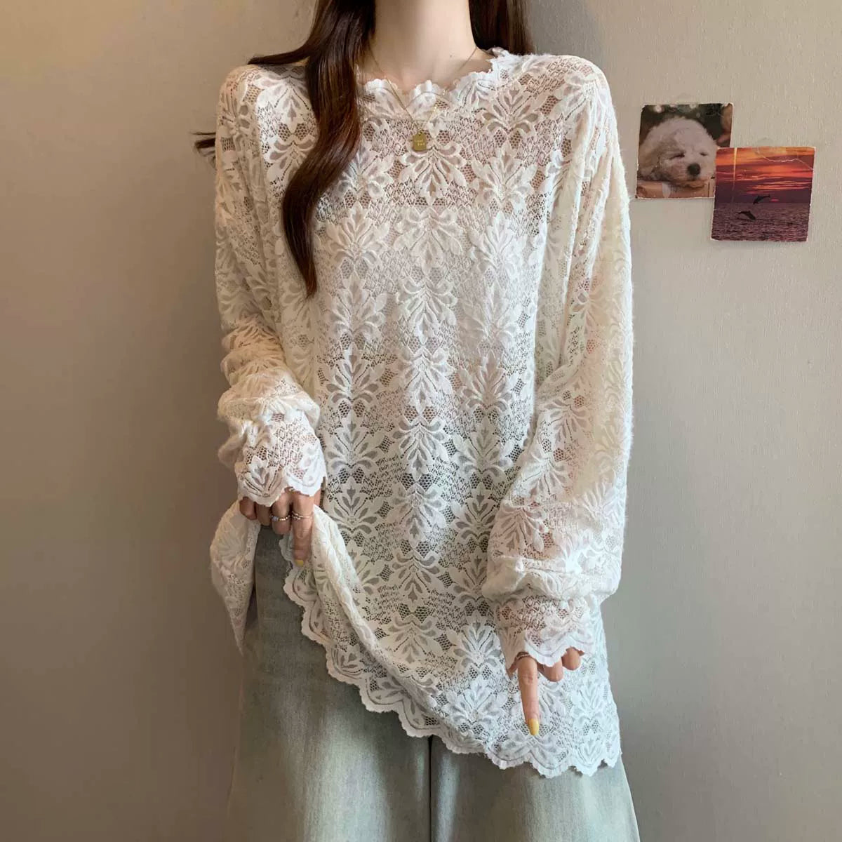 【トップス】レトロ デザイン 小犬柄 クルーネック ニット レディース ゆったり ルーズ 着回し セーター【FCシリーズ】