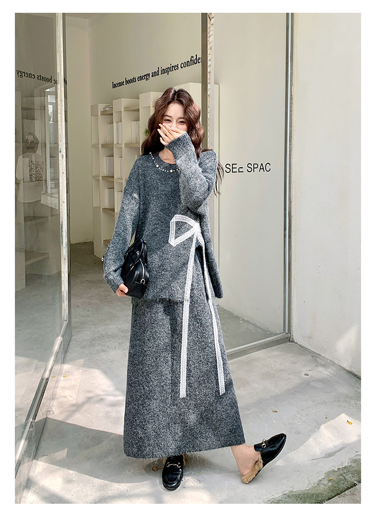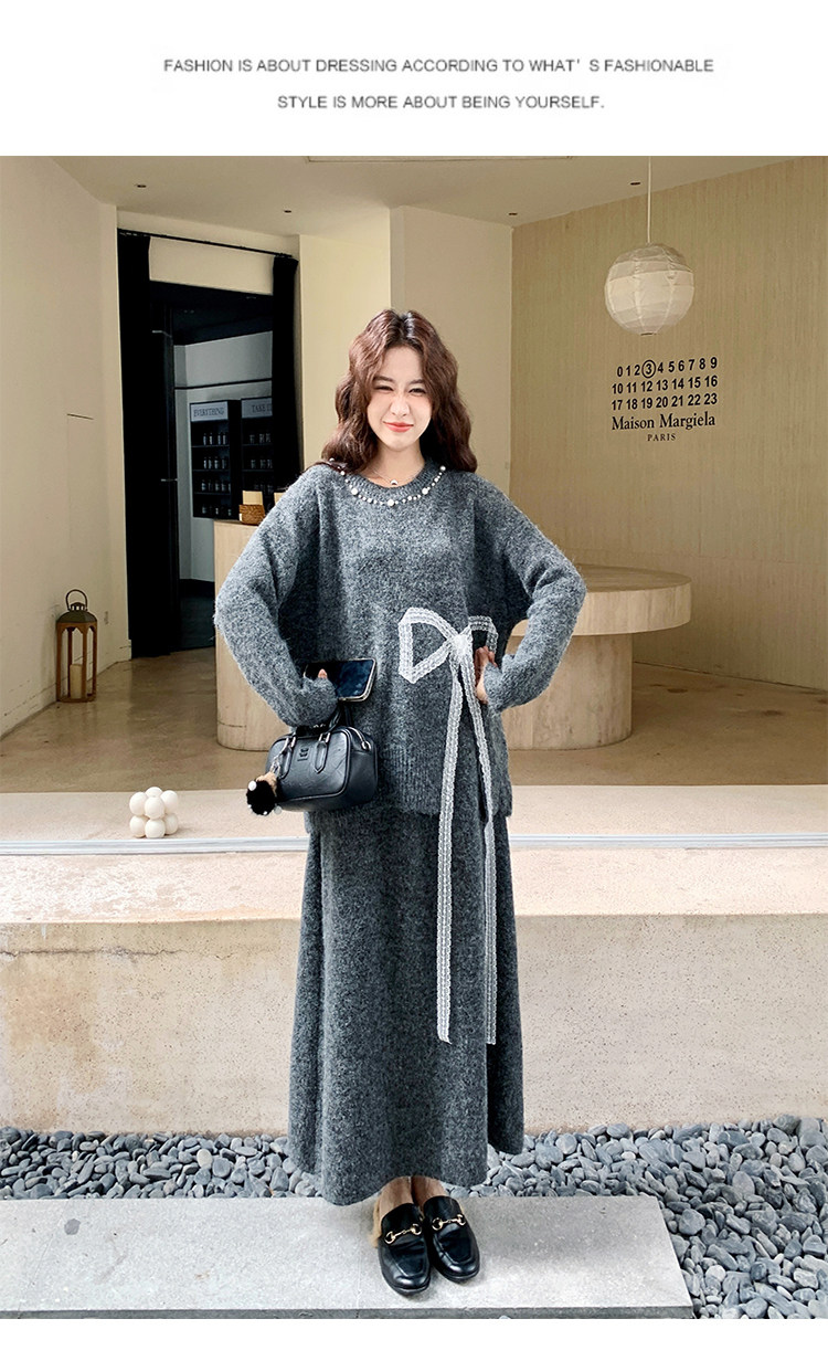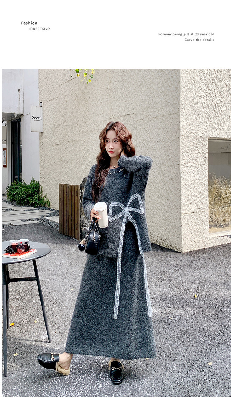 【商品名】【セットアップ】上品な リボンタイ 合わせやすい ゆったり 2点セット【JZシリーズ】