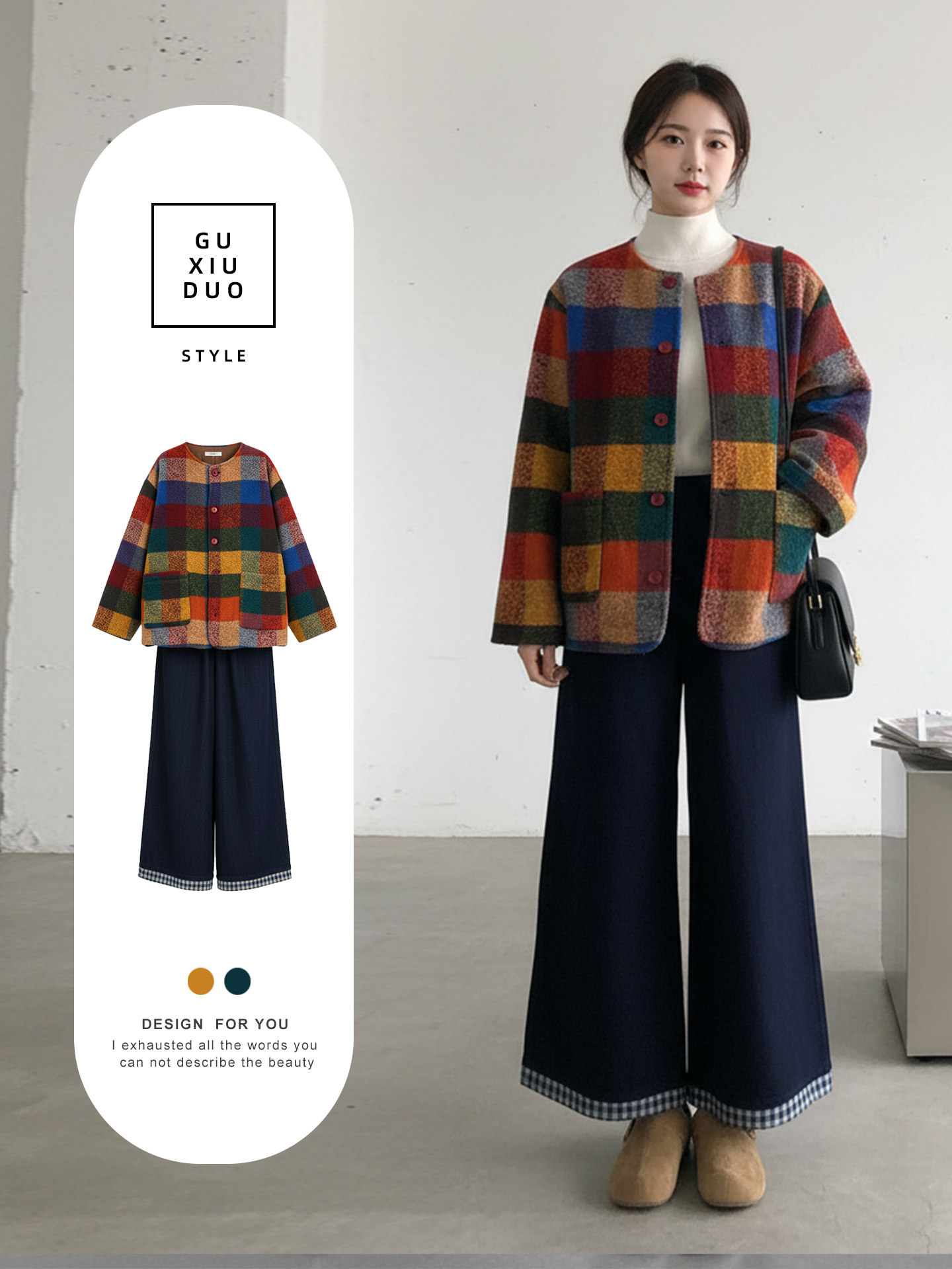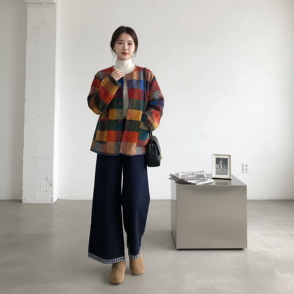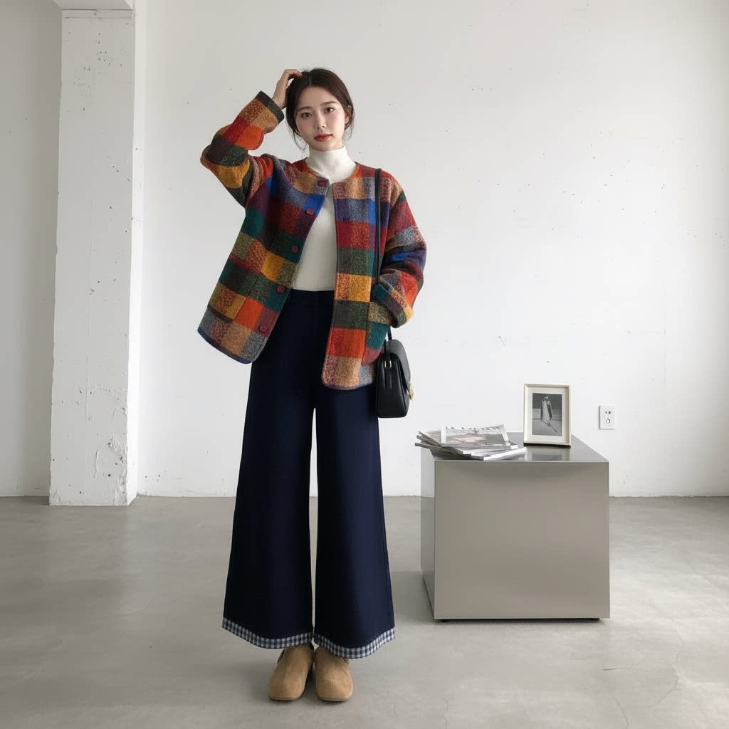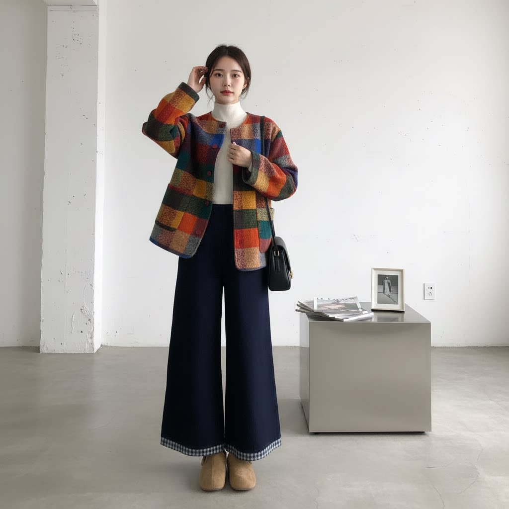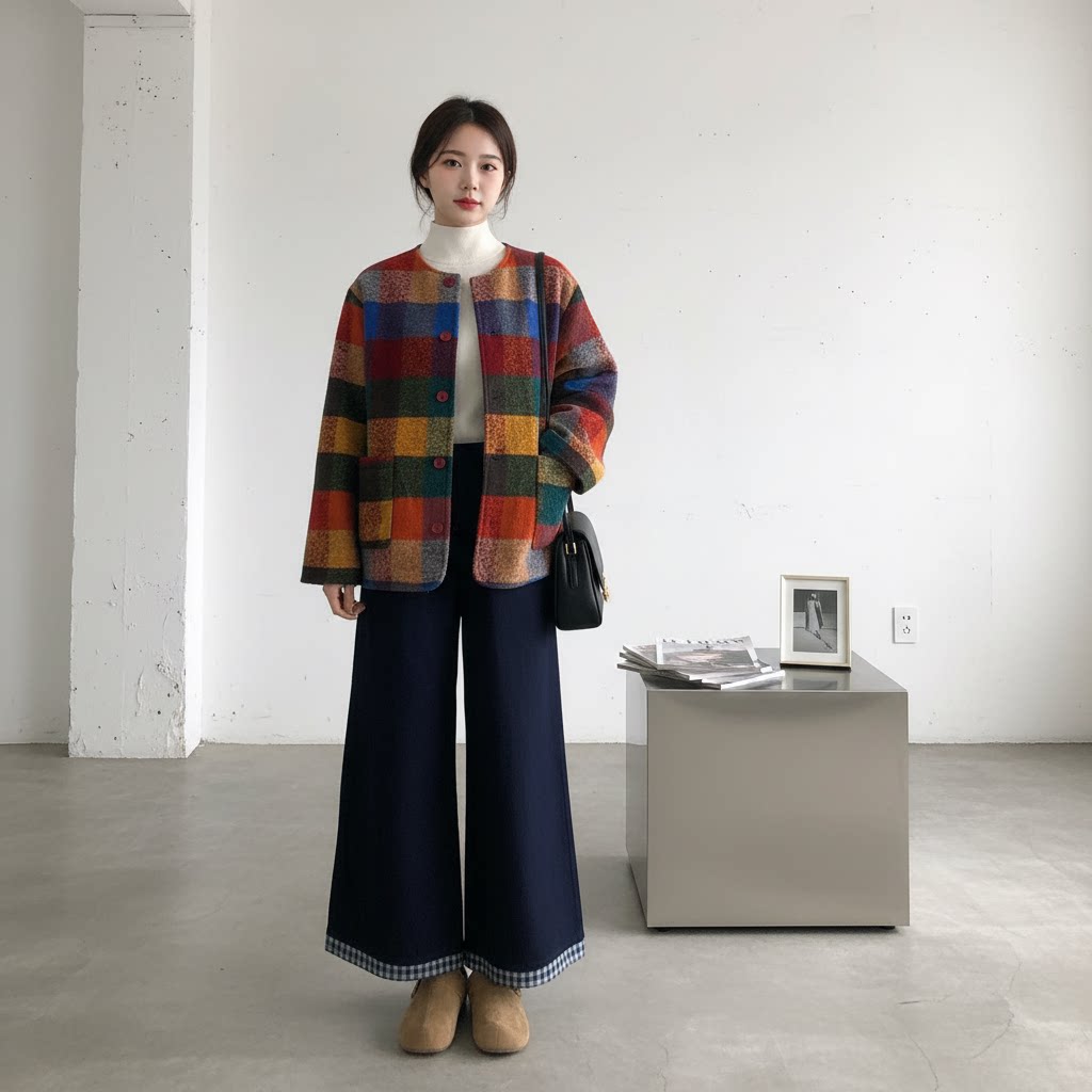 【商品名】【セットアップ】春 秋 冬 チェック柄 ジャケット + ワイドパンツ 2点セット 【JZシリーズ】