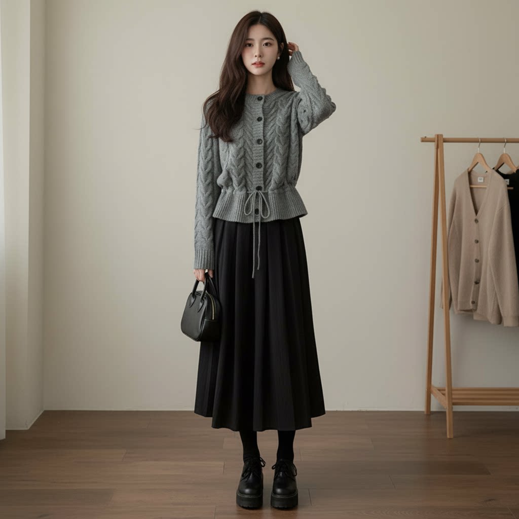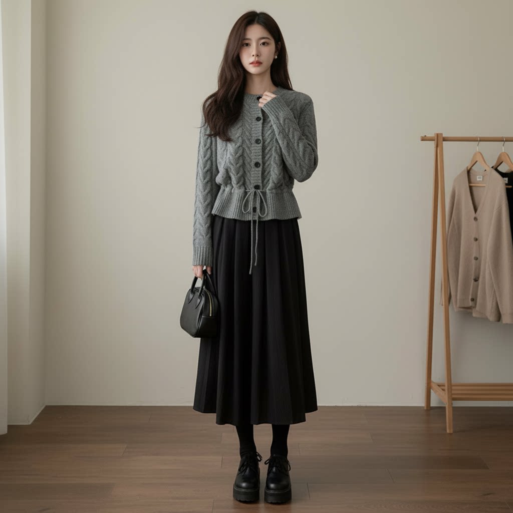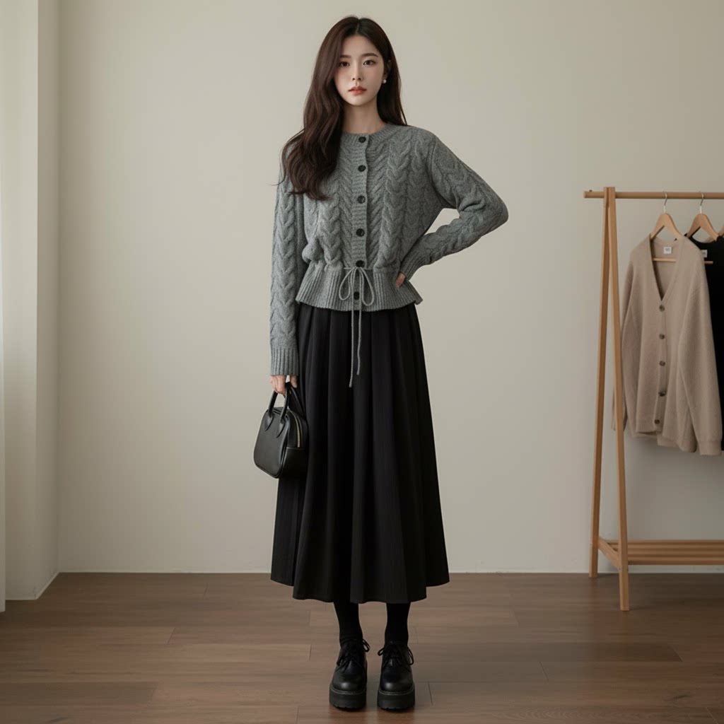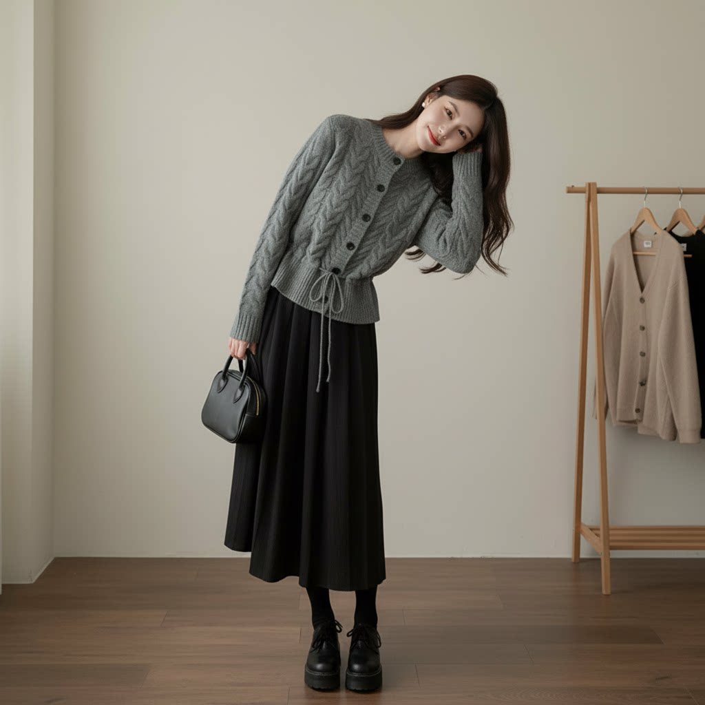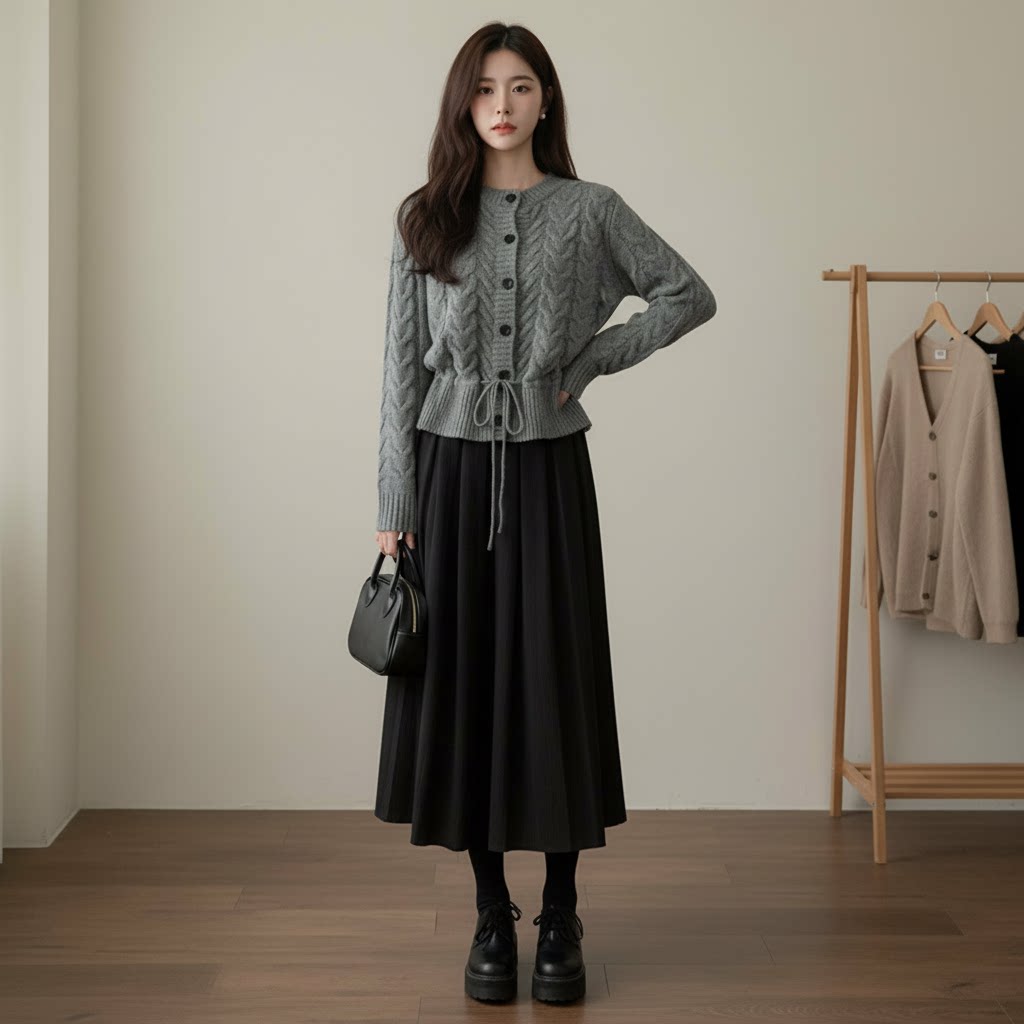 【セットアップ】春 秋 冬 ニットカーディガン + スカート 2点上下セット 【JZシリーズ】