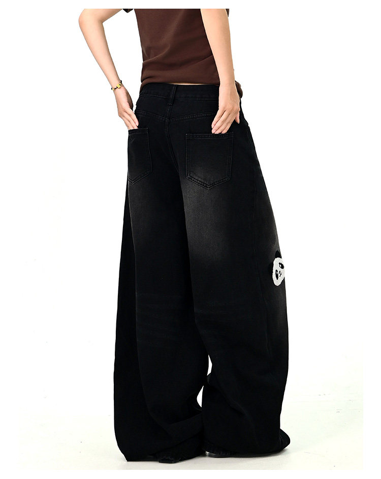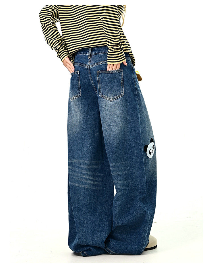 【商品名】【ボトムス】アメリカンスタイル パンダ刺繍 裏起毛 デニム パンツ【FCシリーズ】