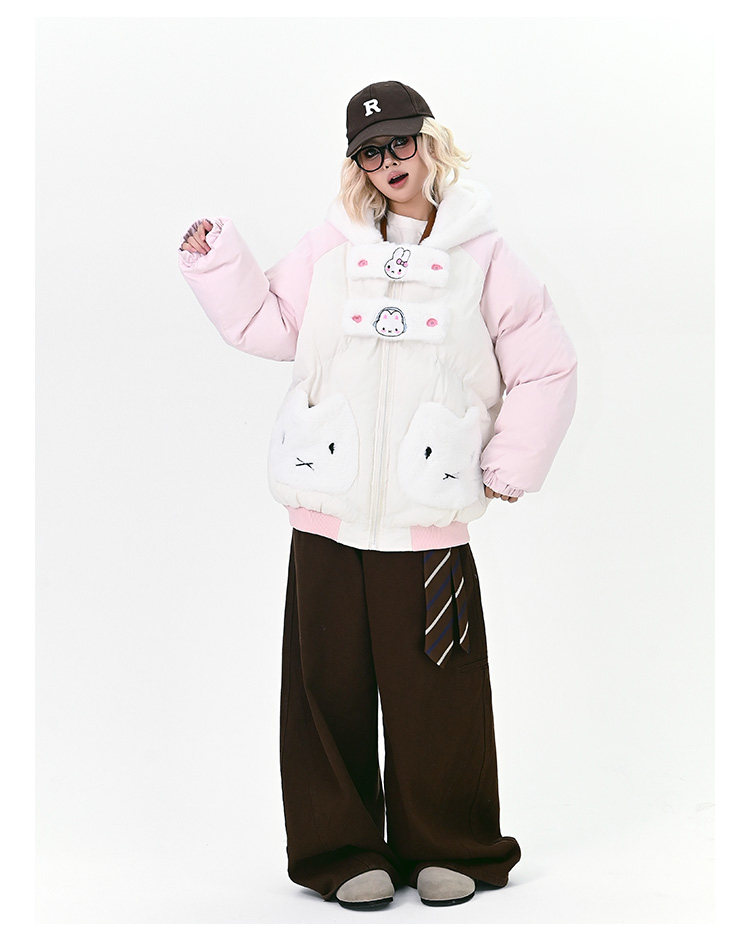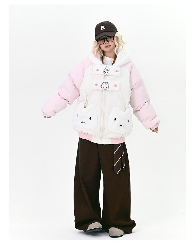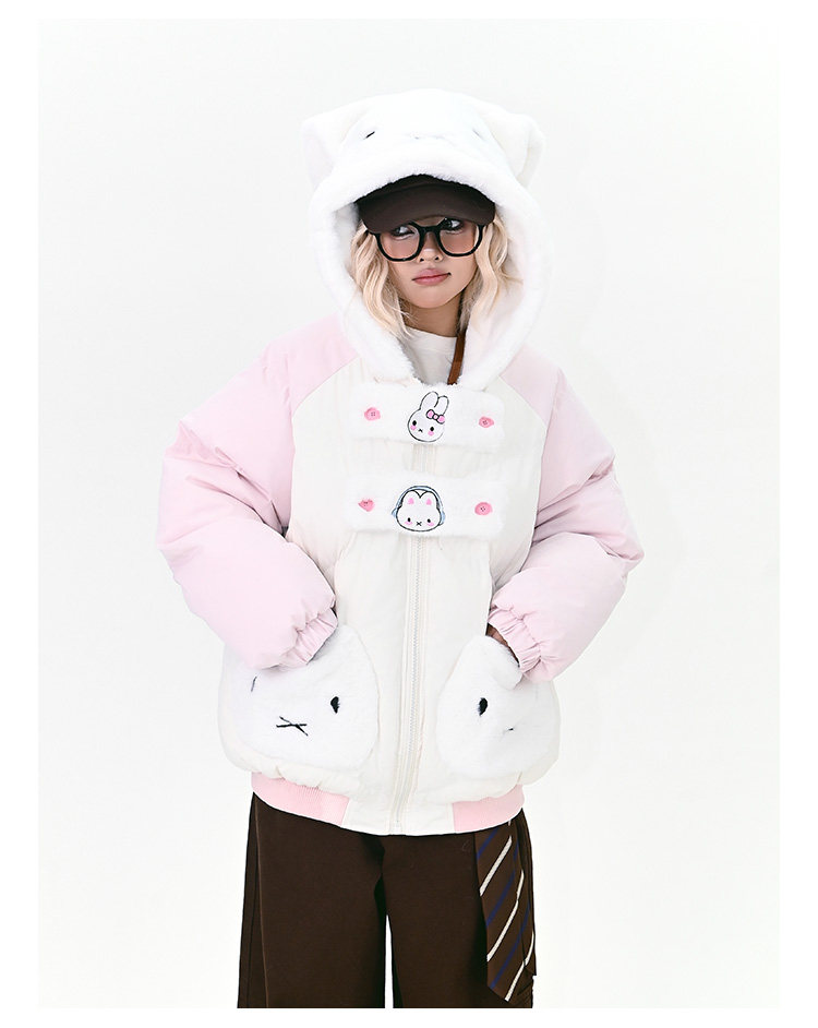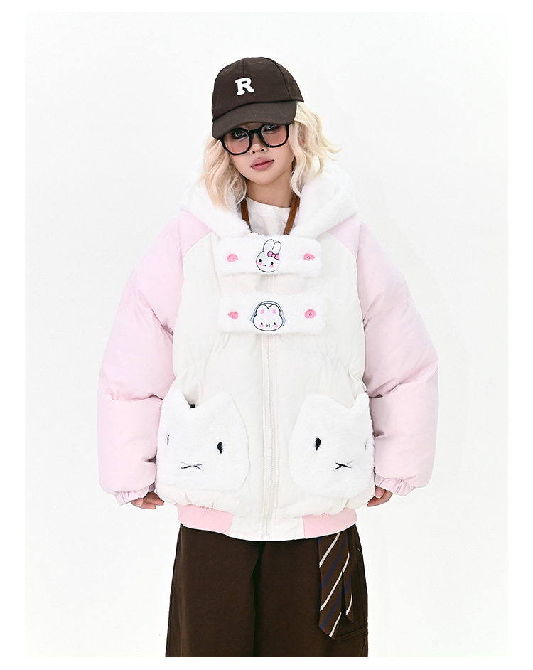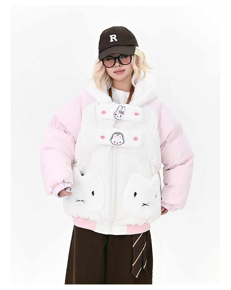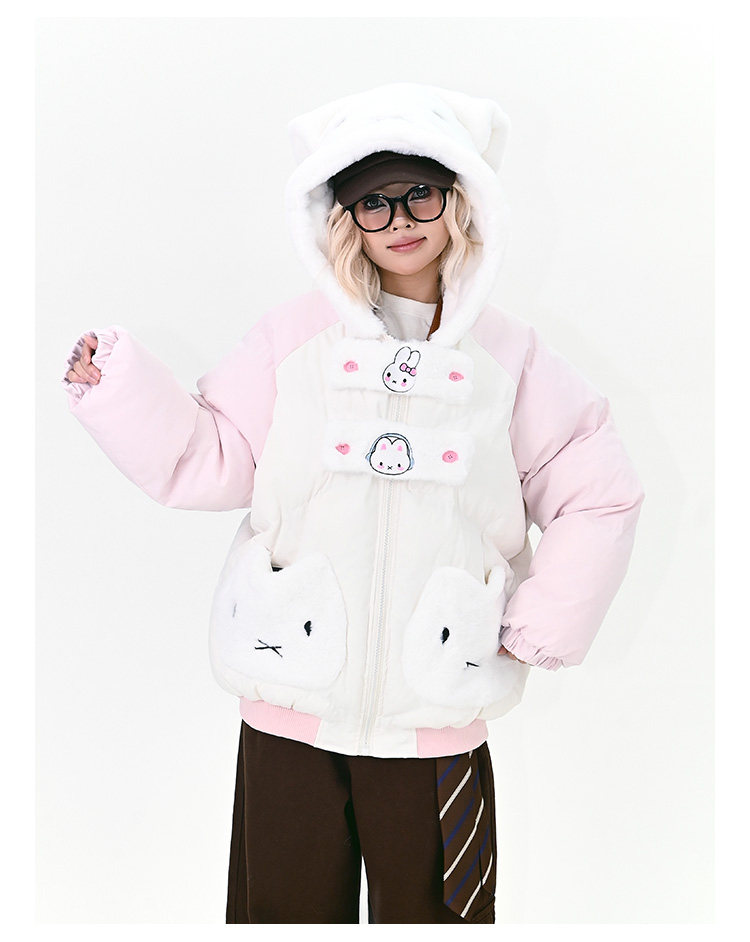 【アウター】韓国風 ゆったり 動物耳 目立つ 売れ筋 フード付き 綿入れコート【FCシリーズ】