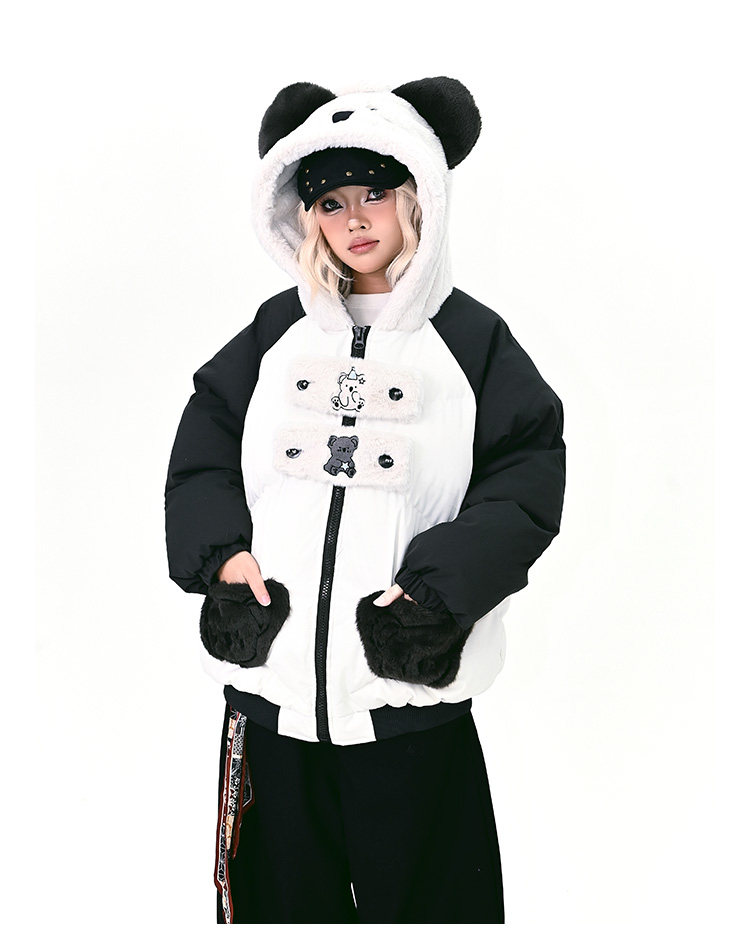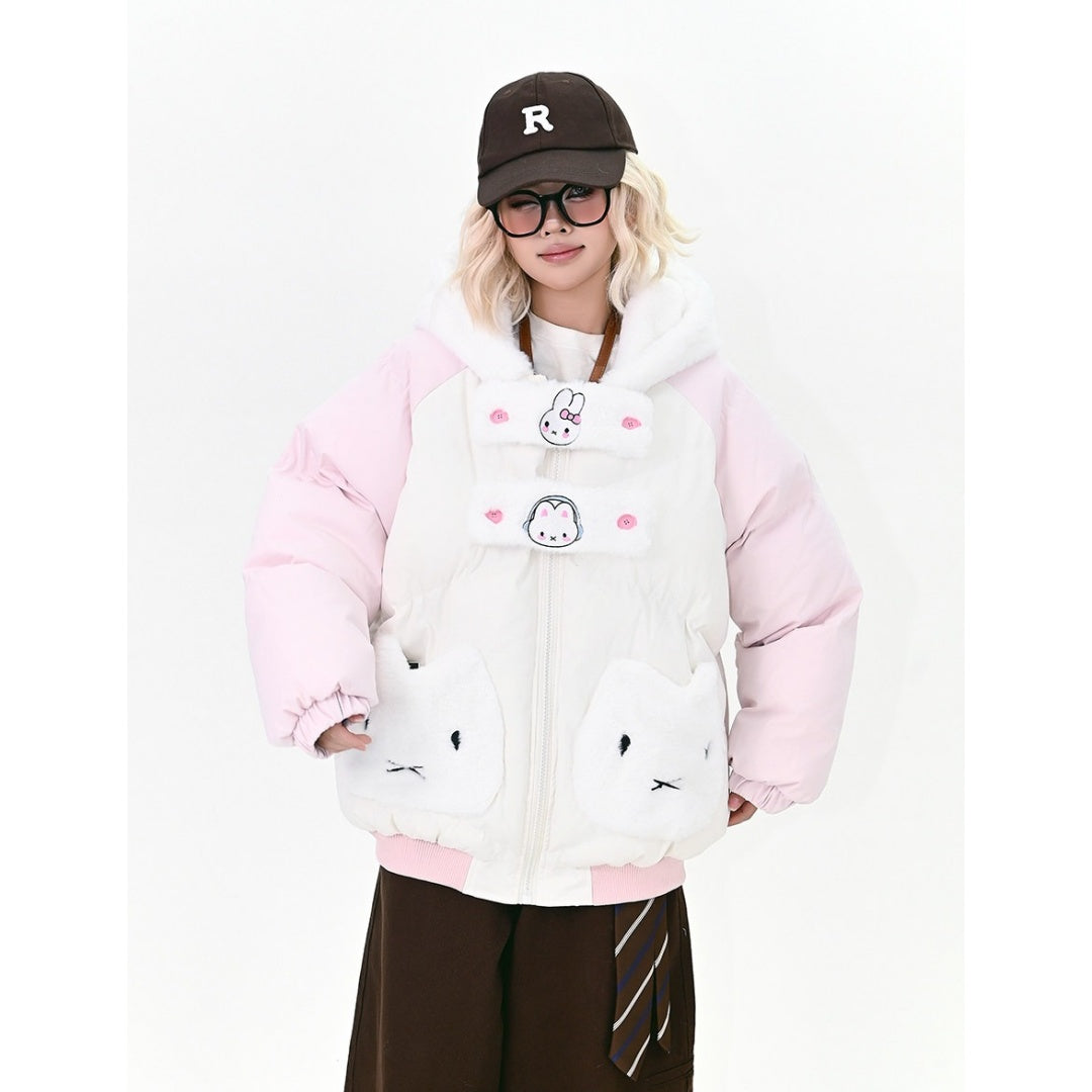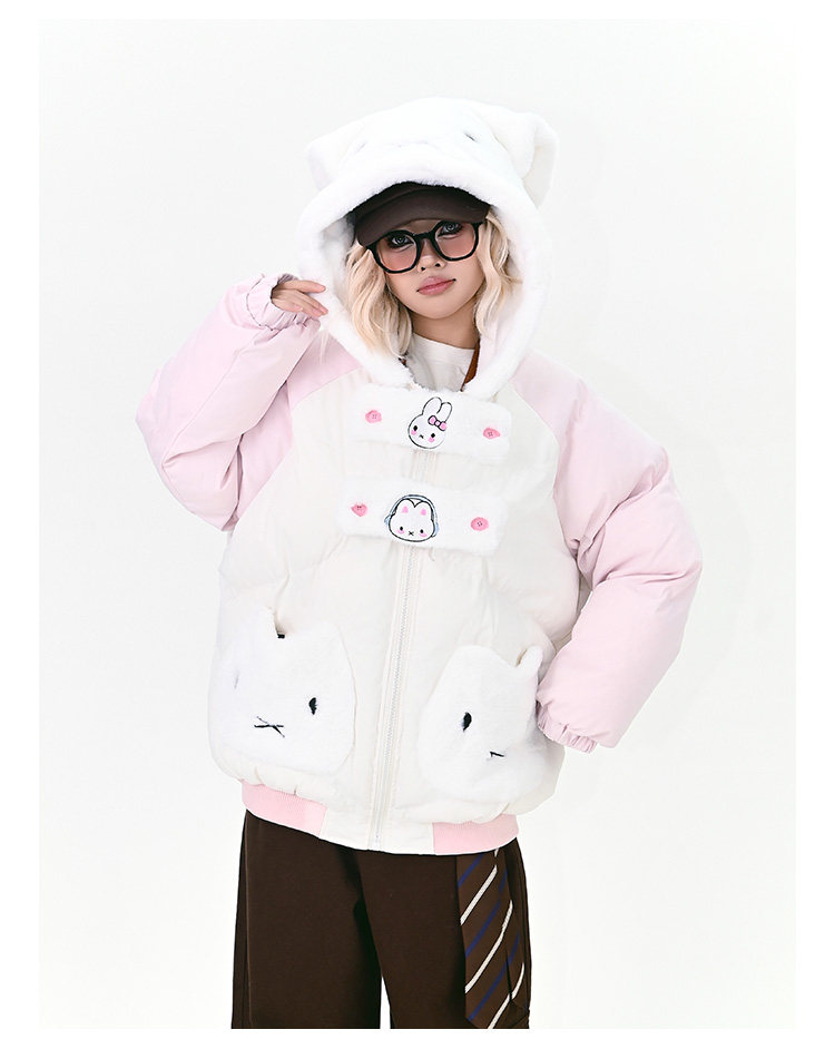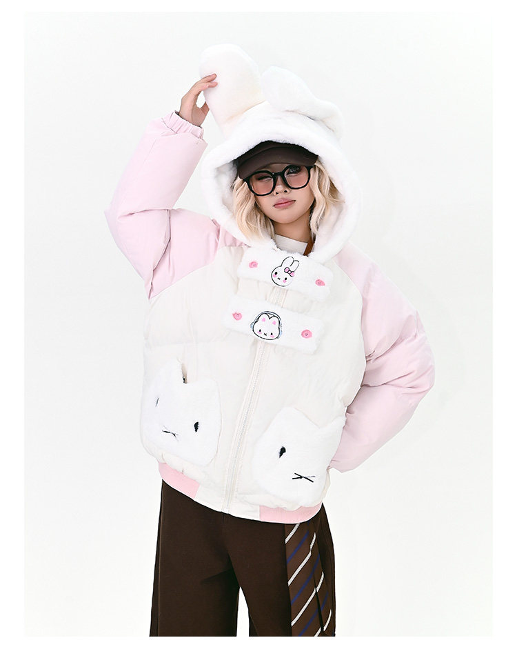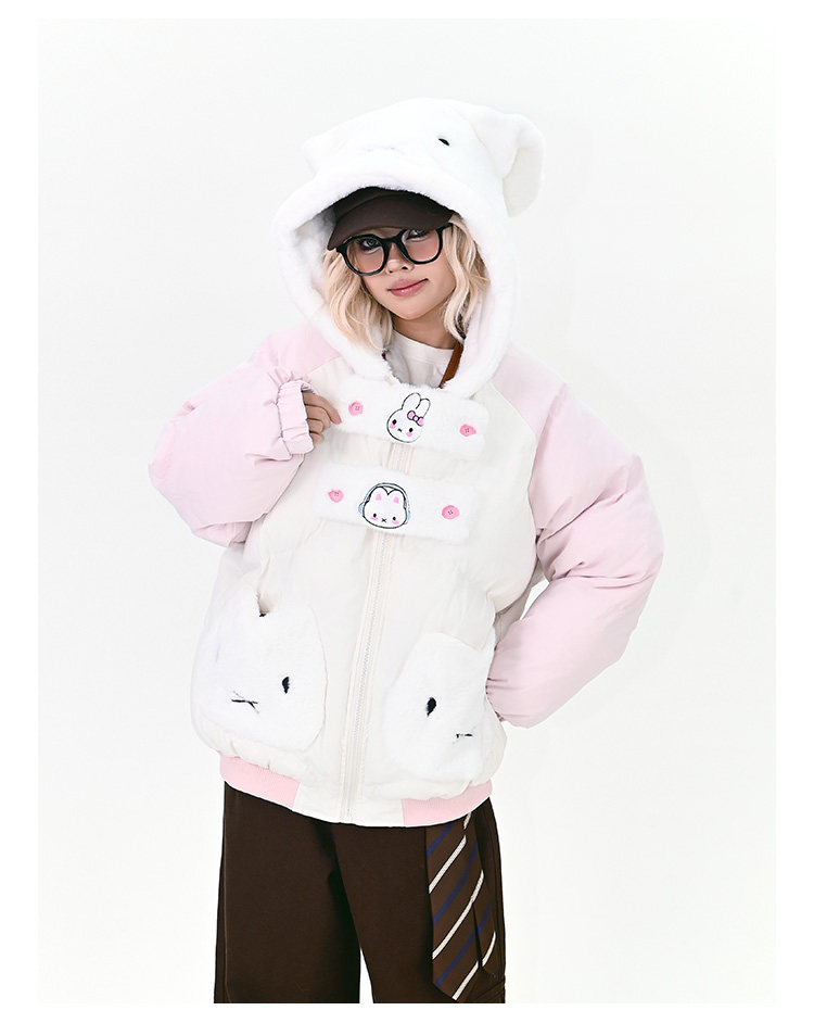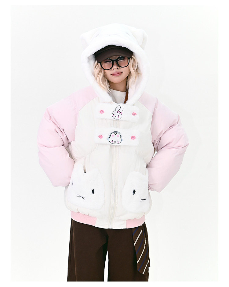 【アウター】韓国風 ゆったり 動物耳 目立つ 売れ筋 フード付き 綿入れコート【FCシリーズ】