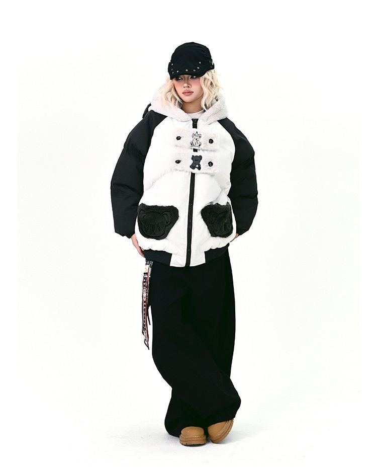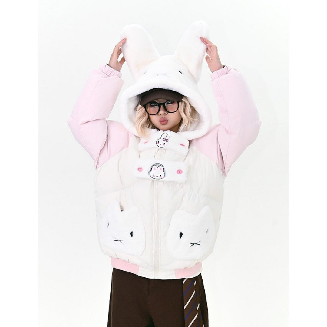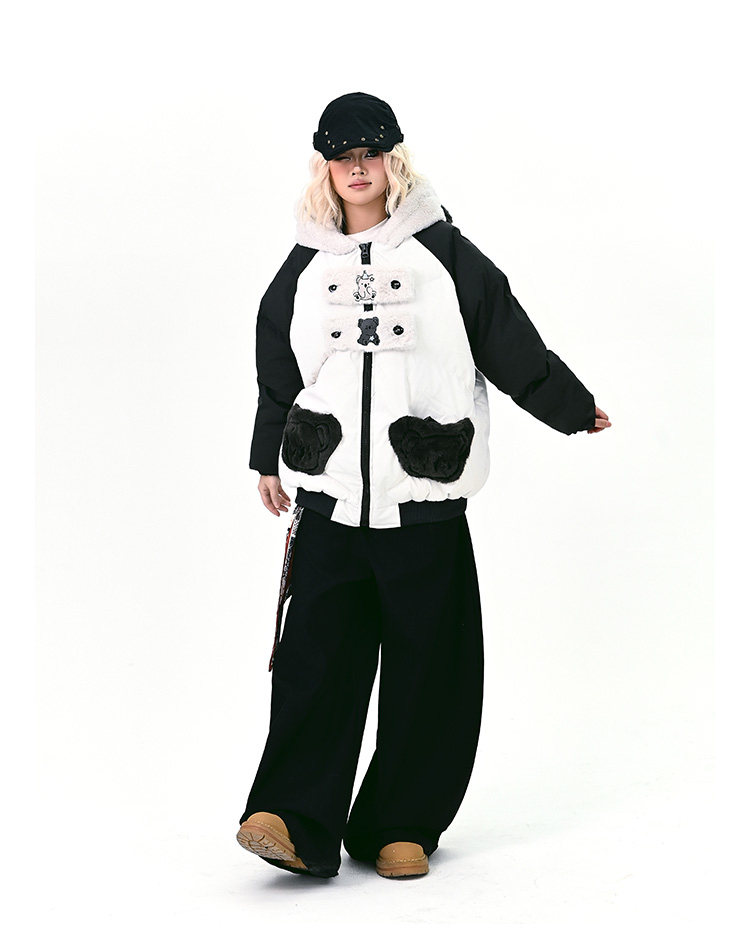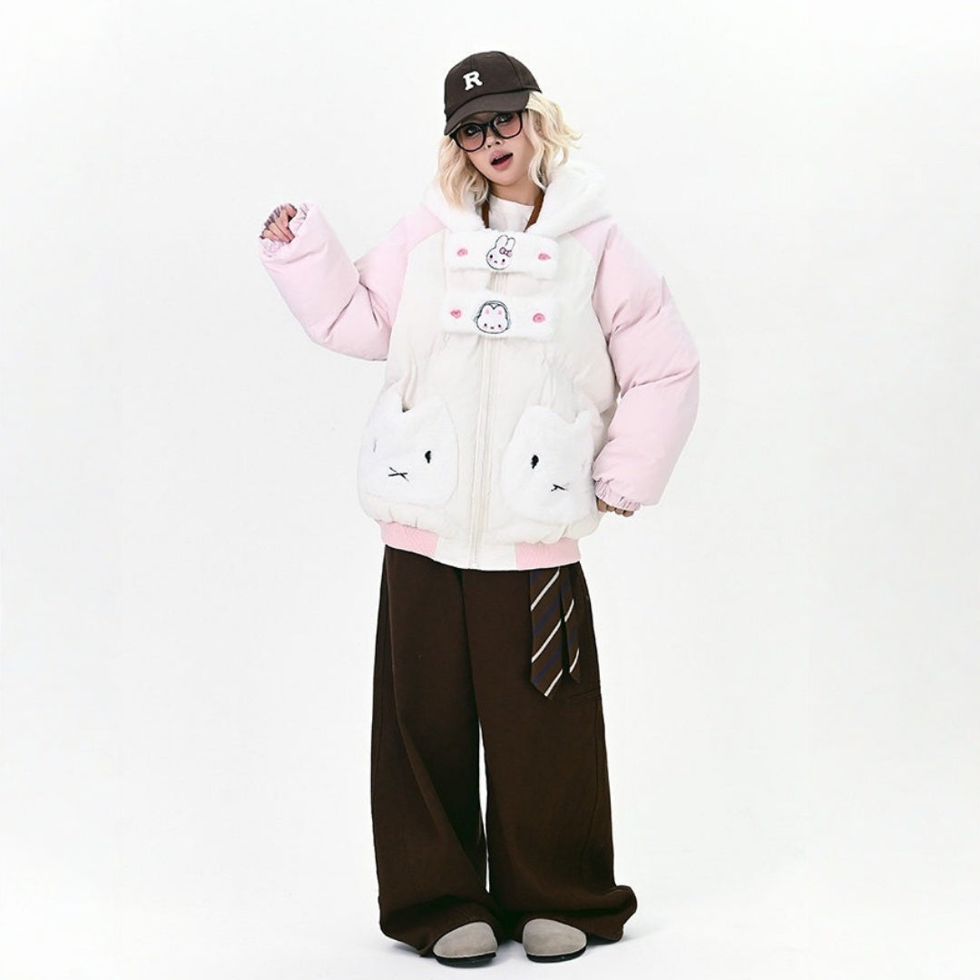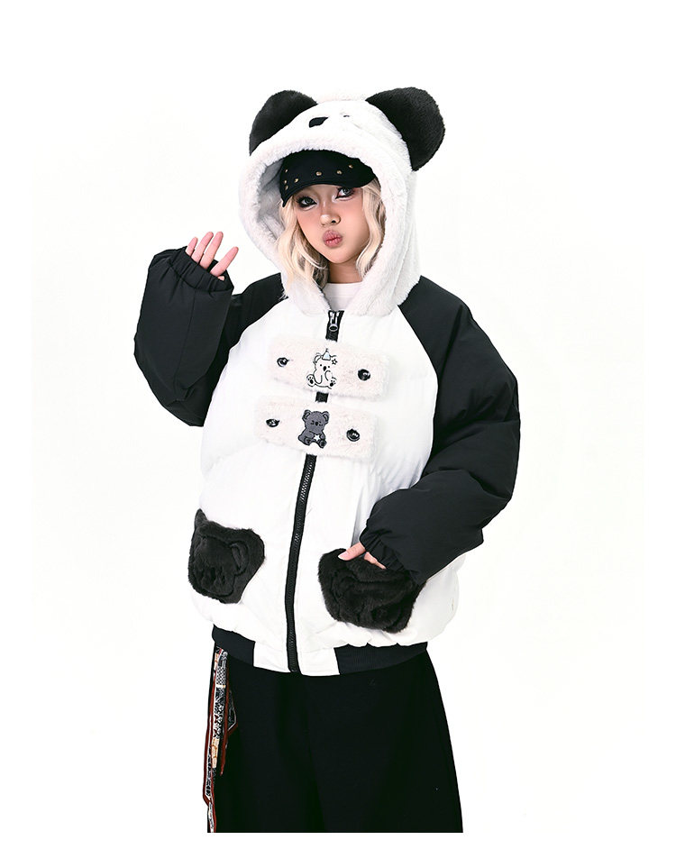 【アウター】韓国風 ゆったり 動物耳 目立つ 売れ筋 フード付き 綿入れコート【FCシリーズ】