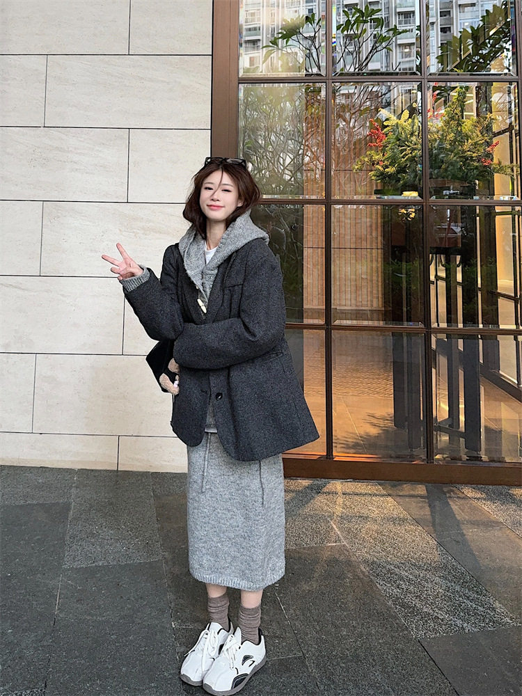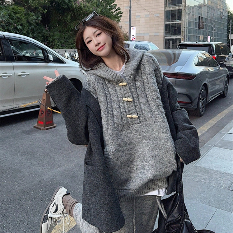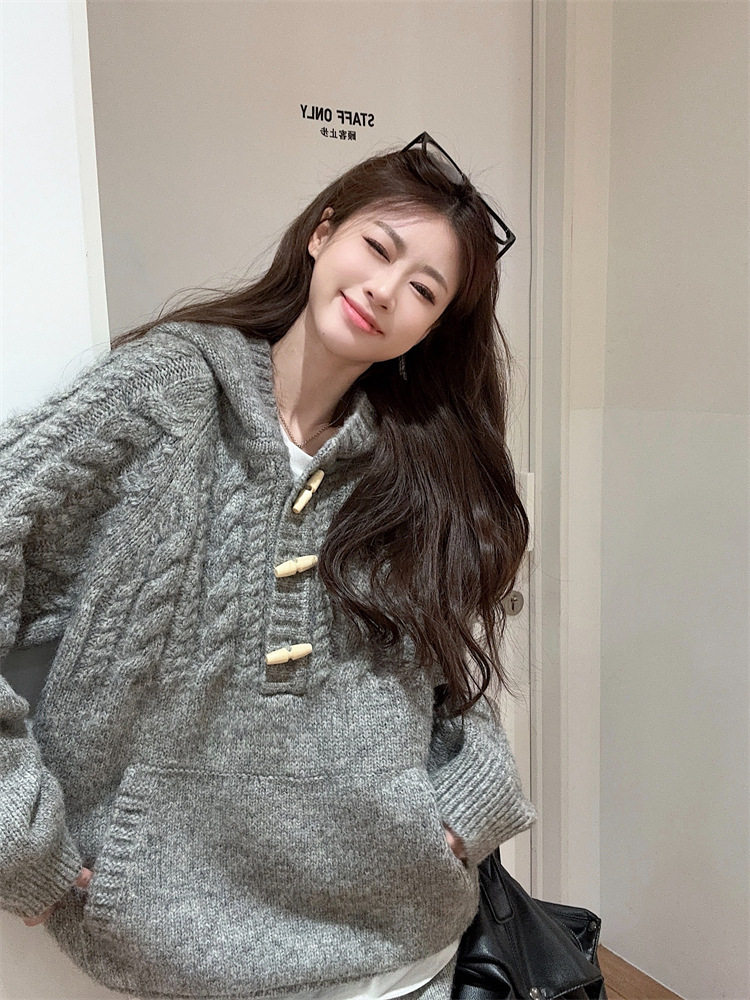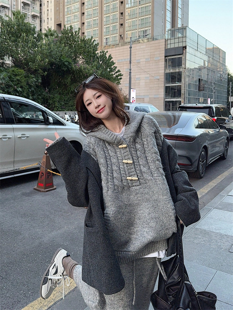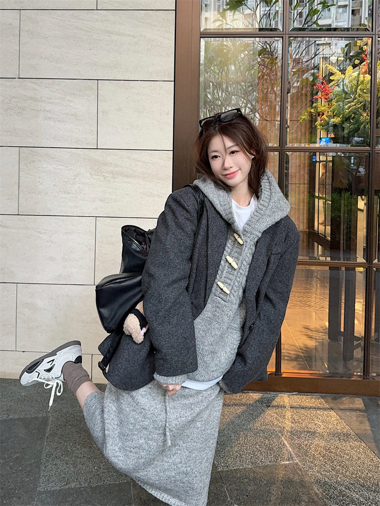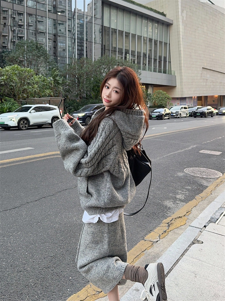 【60%OFF⭐️早い者勝ち】【セットアップ】リラックス感 トグルボタン プルオーバー フード付きニット + スカート 2点上下セット【JZシリーズ】