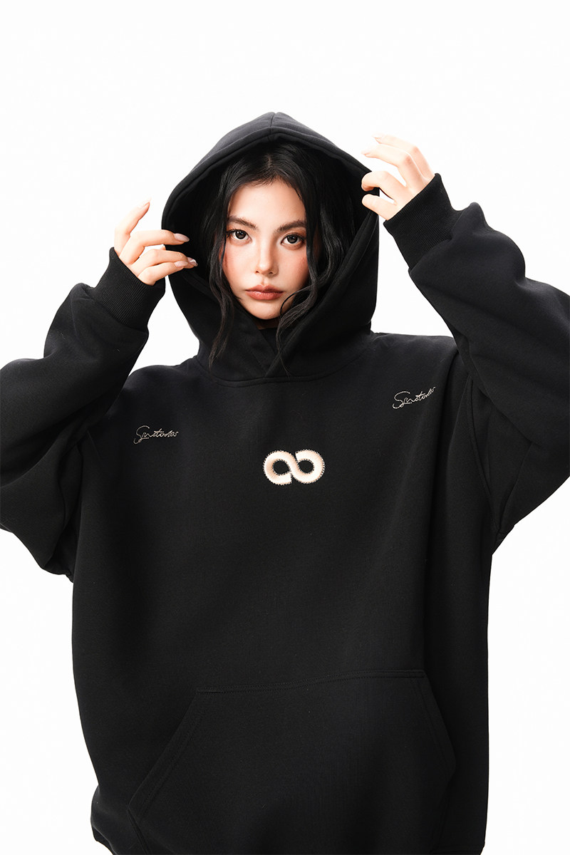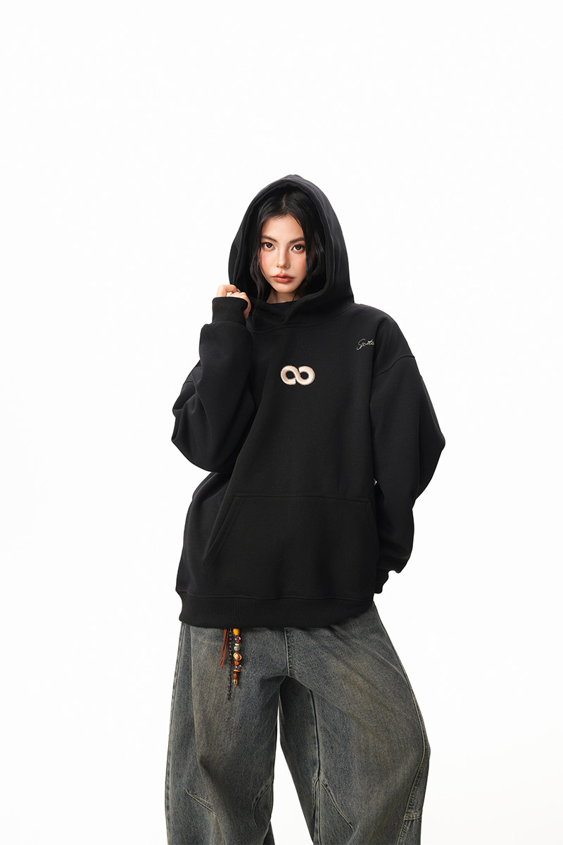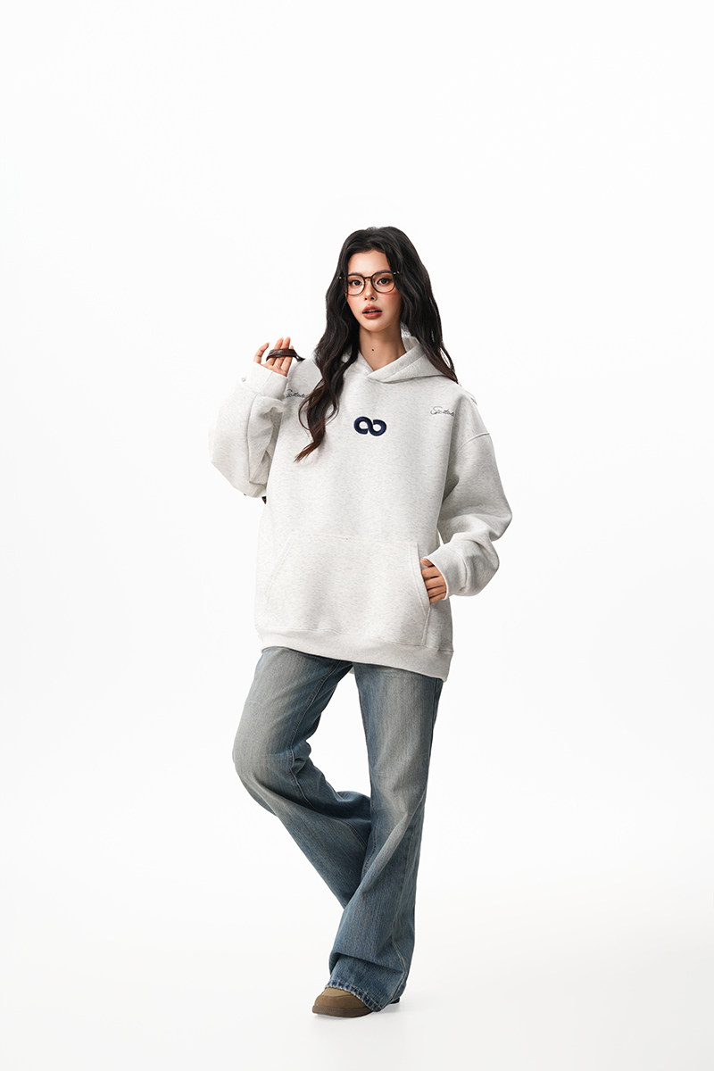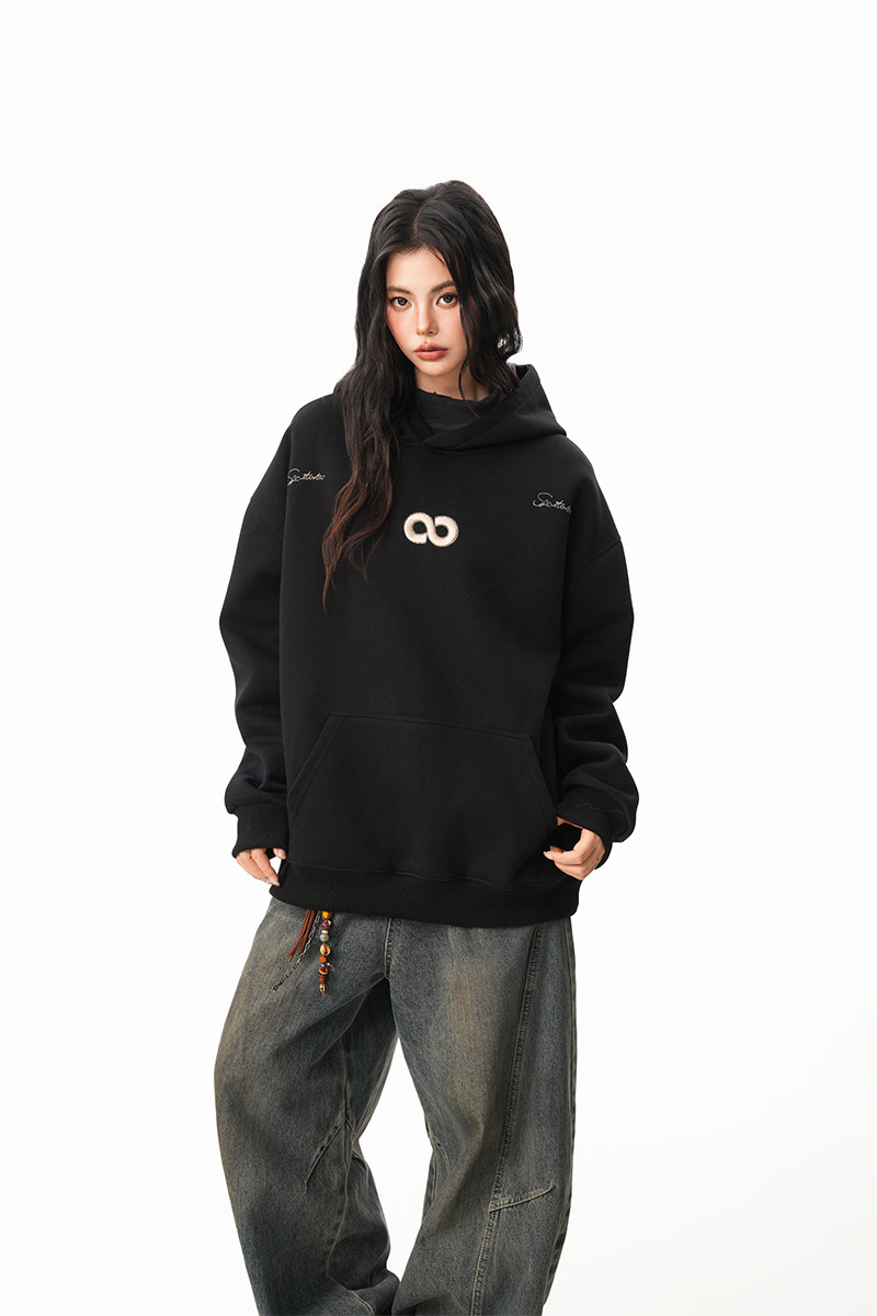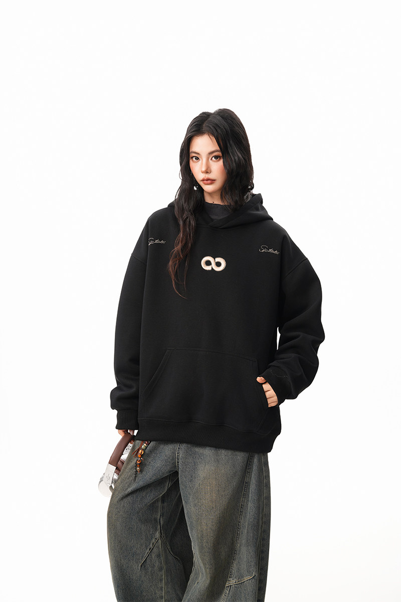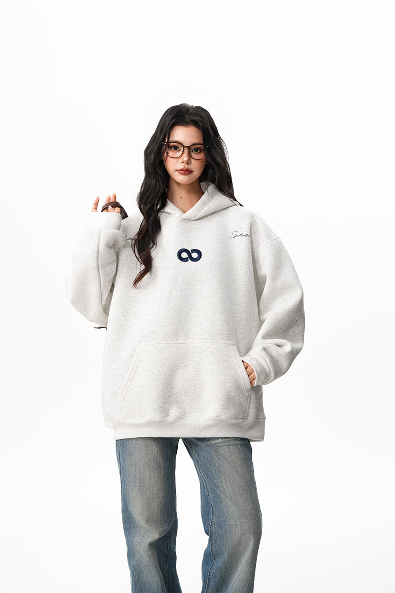 【商品名】【トップス】立体ナンバー刺繍 裏起毛 フーディ レディース メンズ 秋冬 ルーズ カップル パーカー【FCシリーズ】