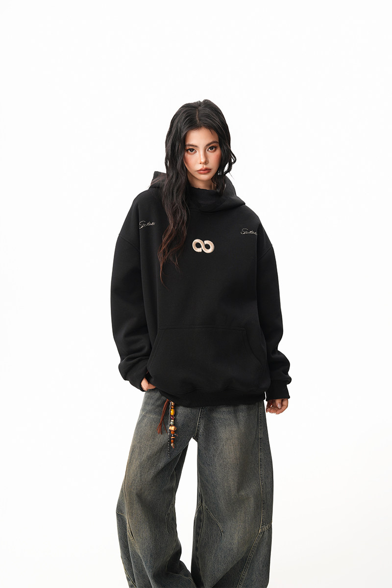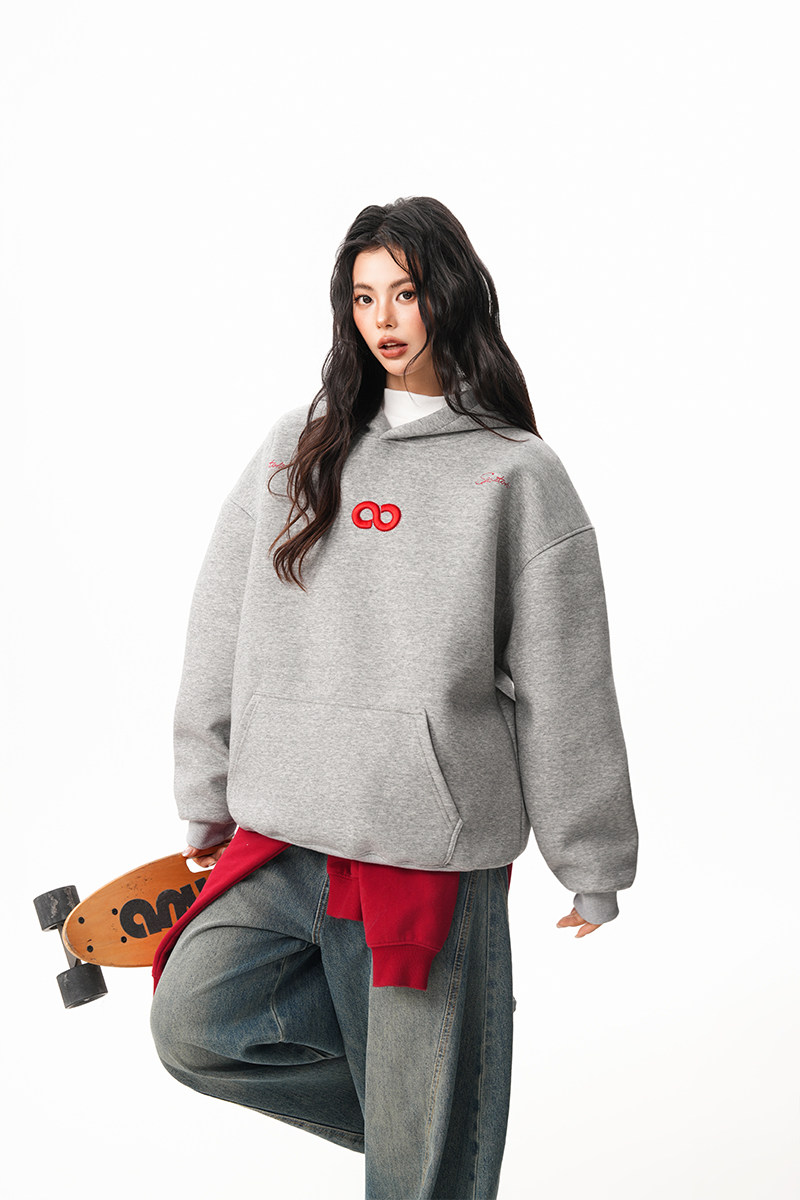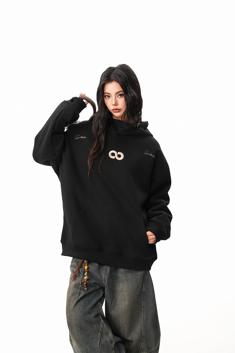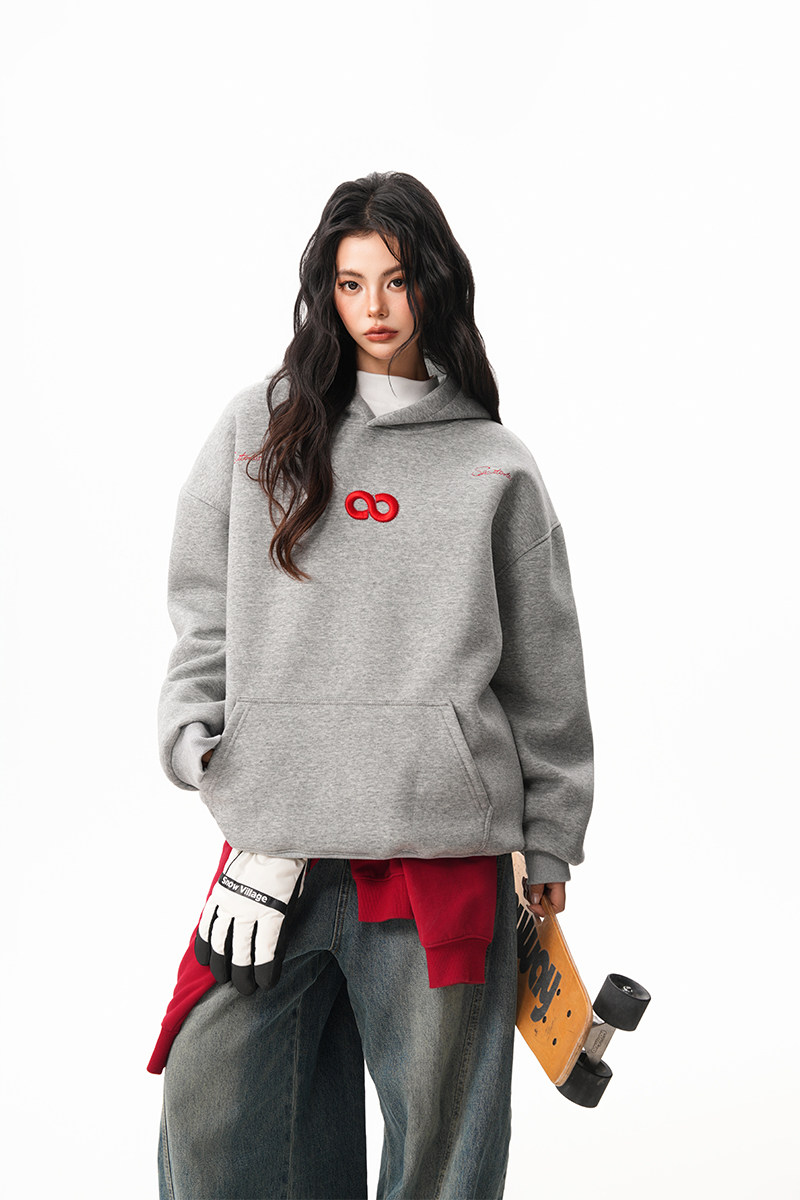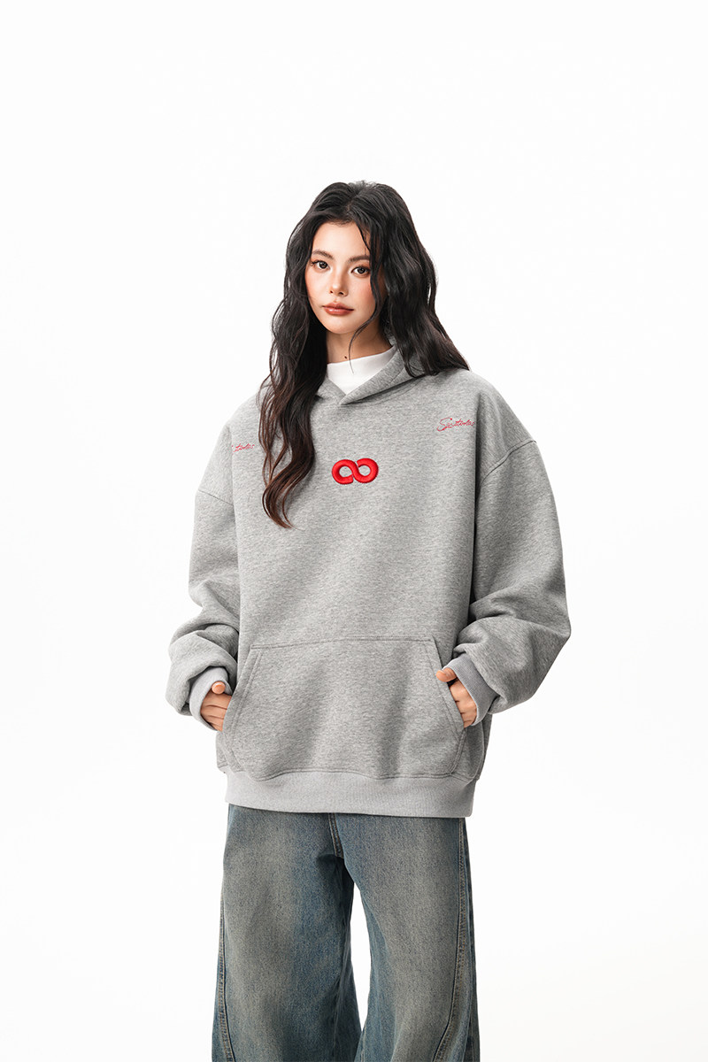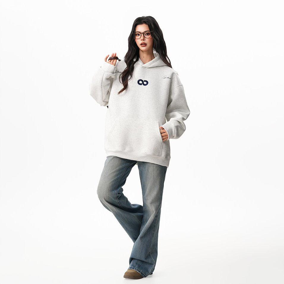 【商品名】【トップス】立体ナンバー刺繍 裏起毛 フーディ レディース メンズ 秋冬 ルーズ カップル パーカー【FCシリーズ】