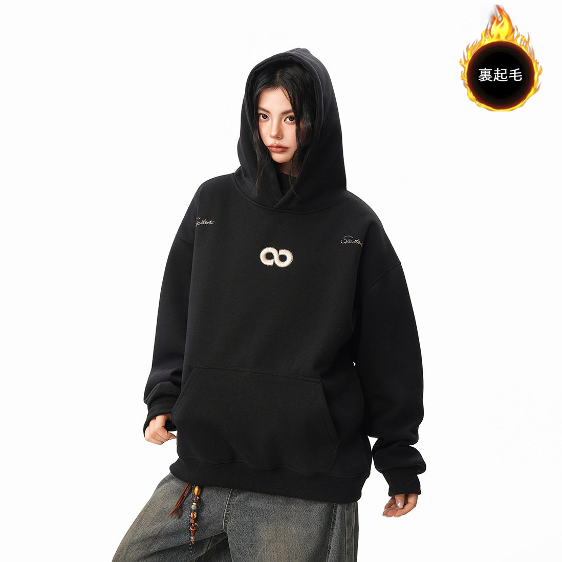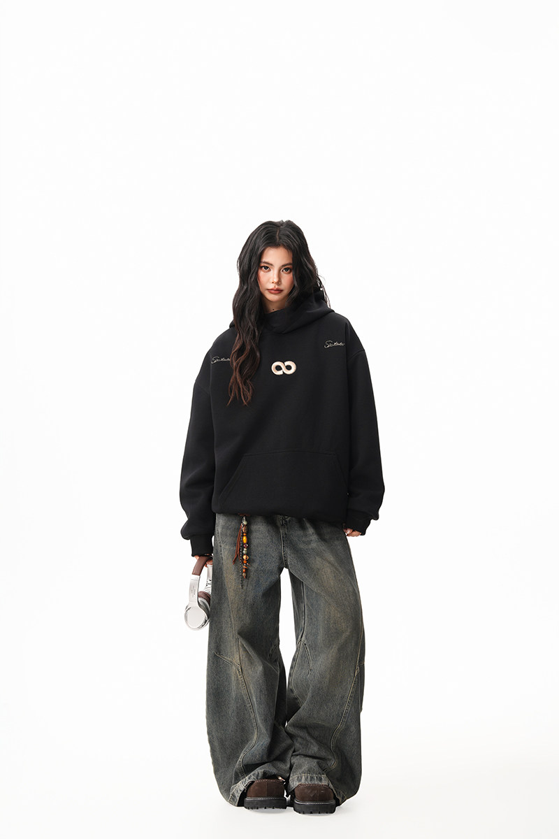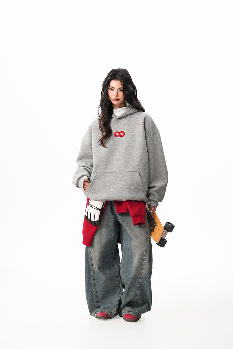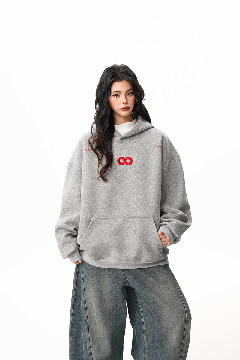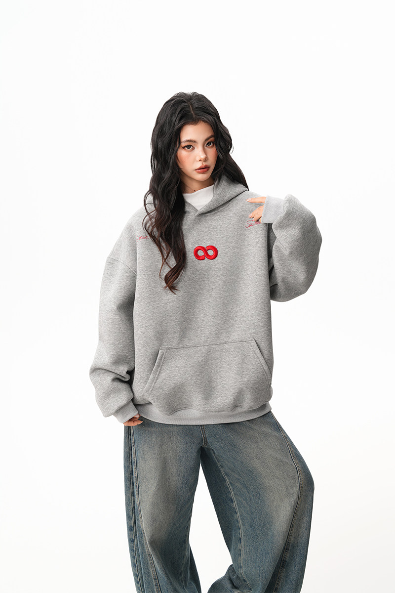 【商品名】【トップス】立体ナンバー刺繍 裏起毛 フーディ レディース メンズ 秋冬 ルーズ カップル パーカー【FCシリーズ】