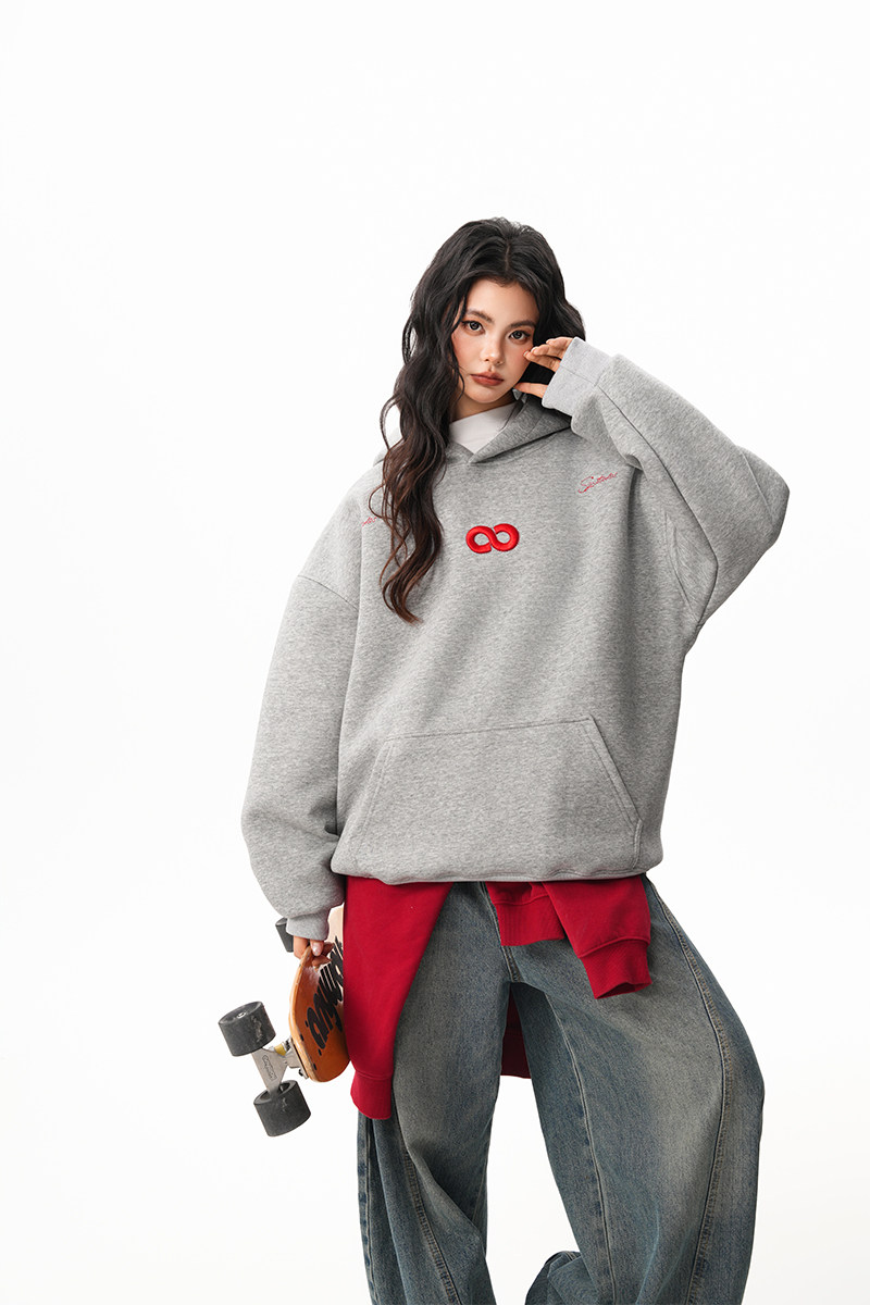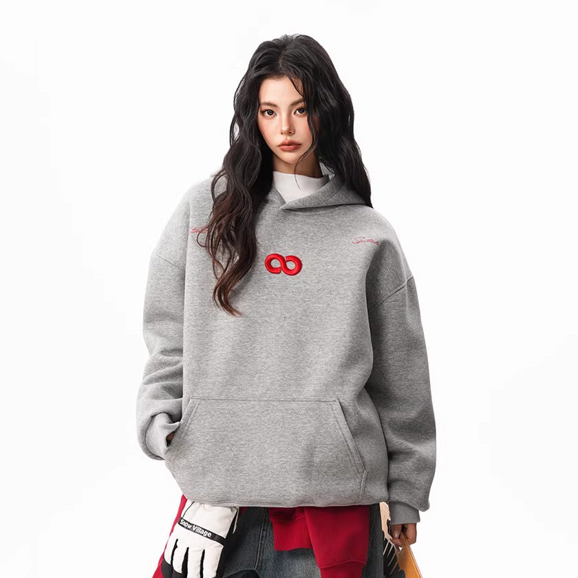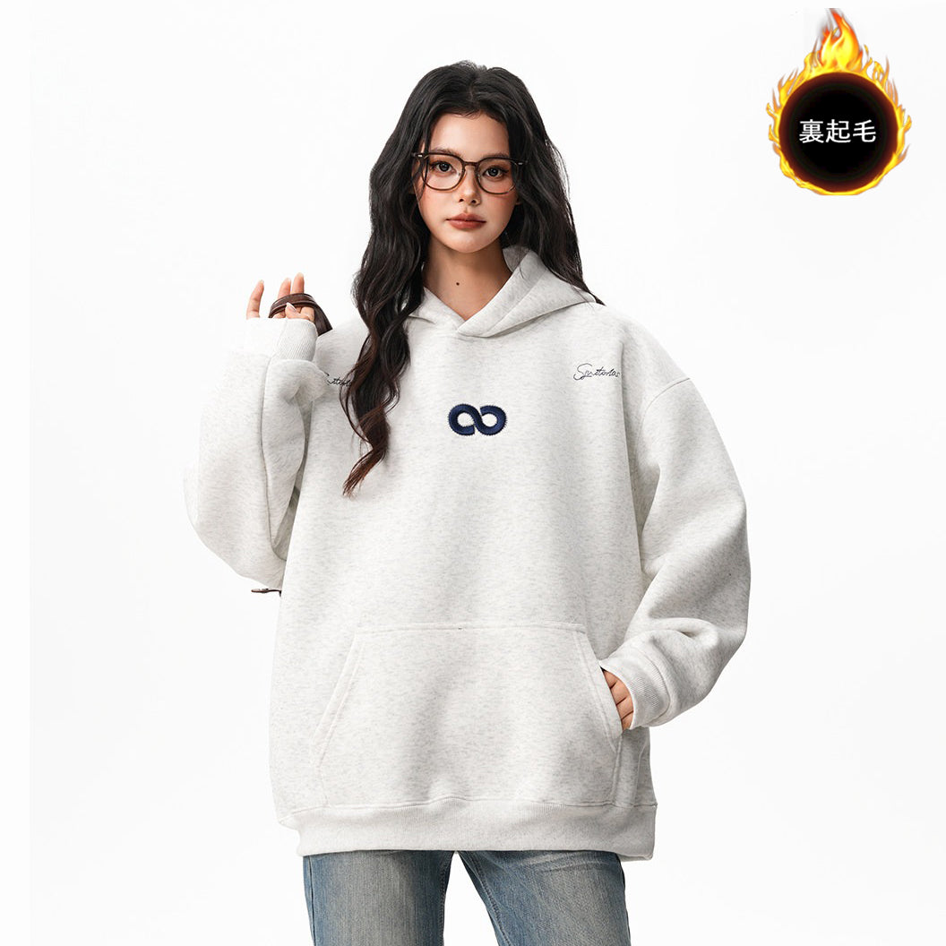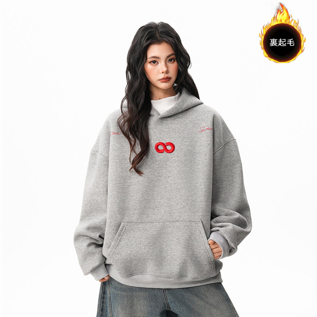 【トップス】立体ナンバー刺繍 裏起毛 フーディ レディース メンズ 秋冬 ルーズ カップル パーカー【FCシリーズ】