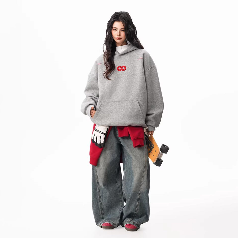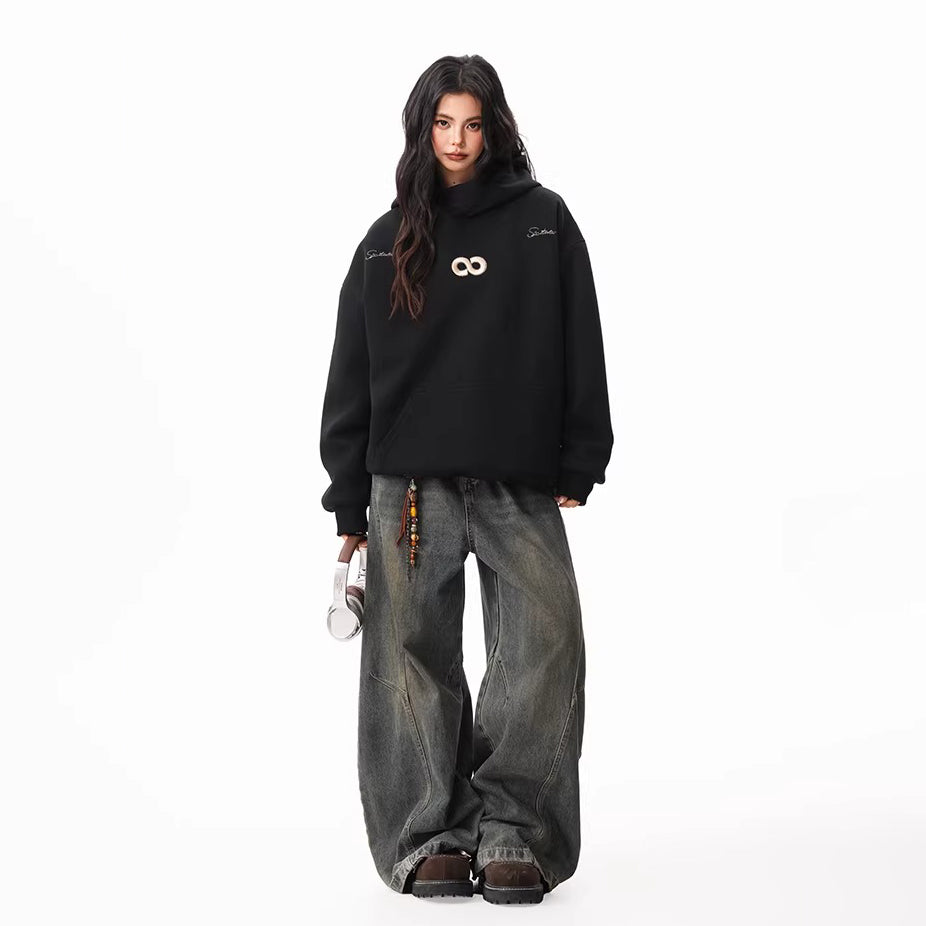 【トップス】春秋冬 Oversize レトロ 刺繍 ゆったり フード付き デニム パーカー【FCシリーズ】【15~20日発送】