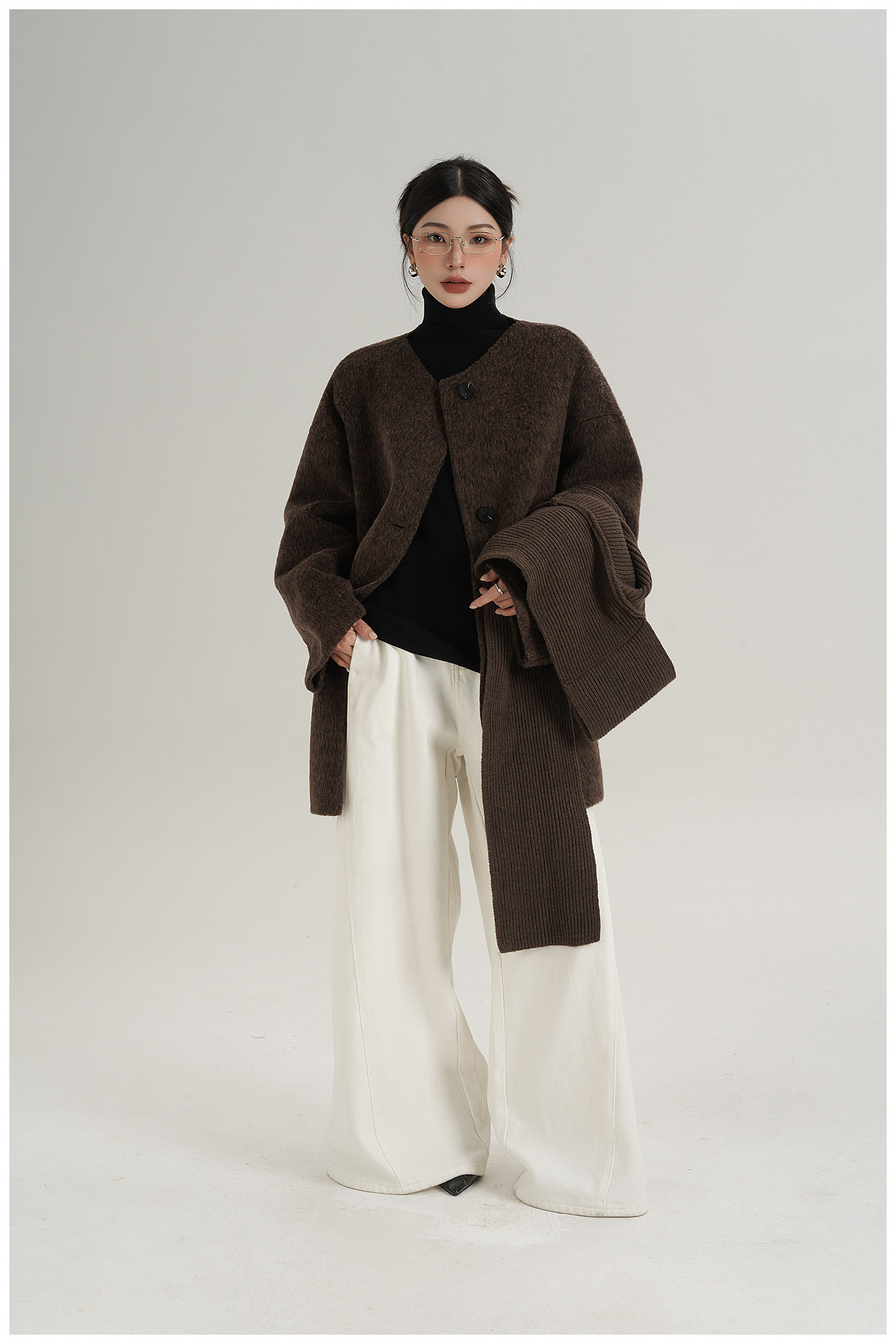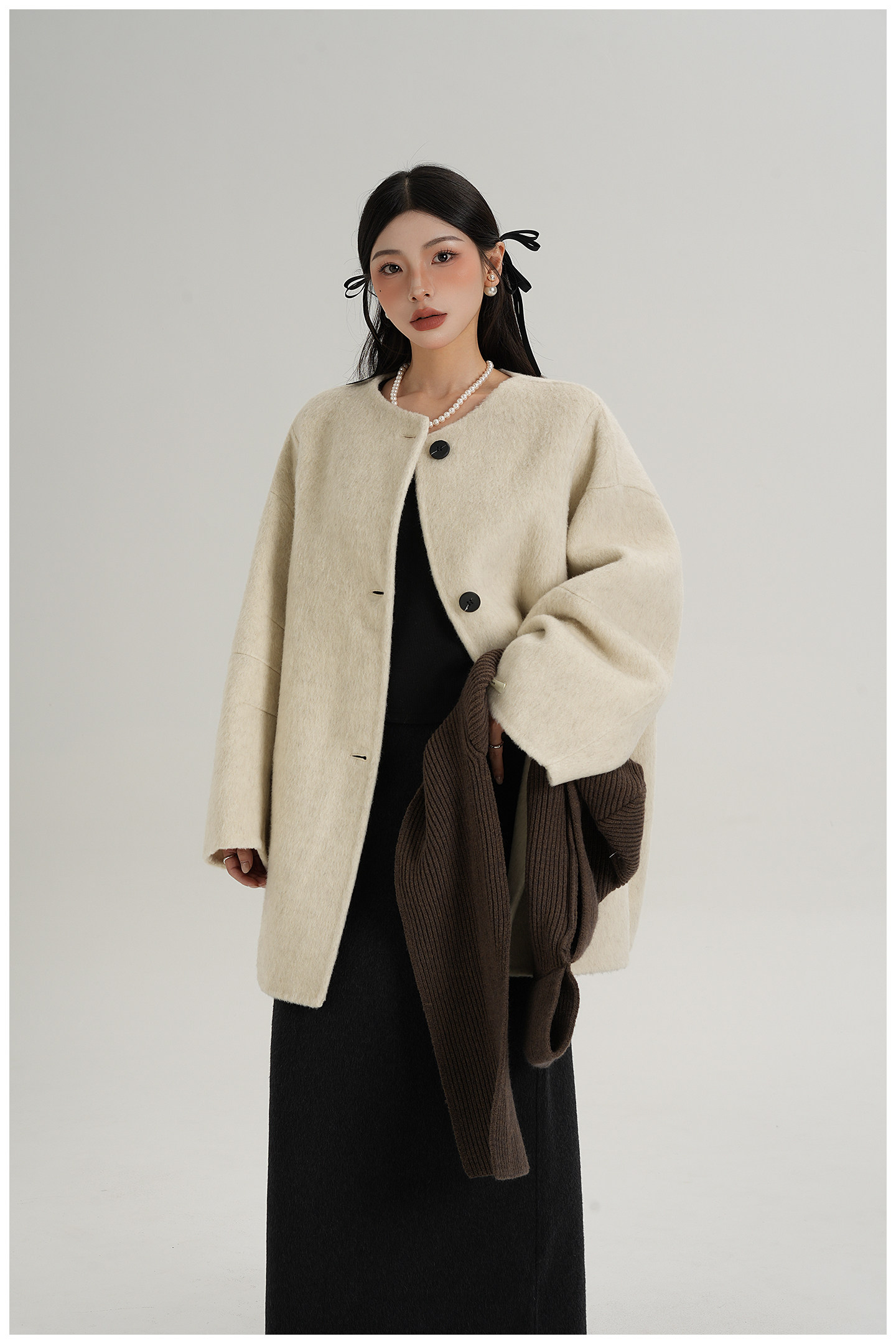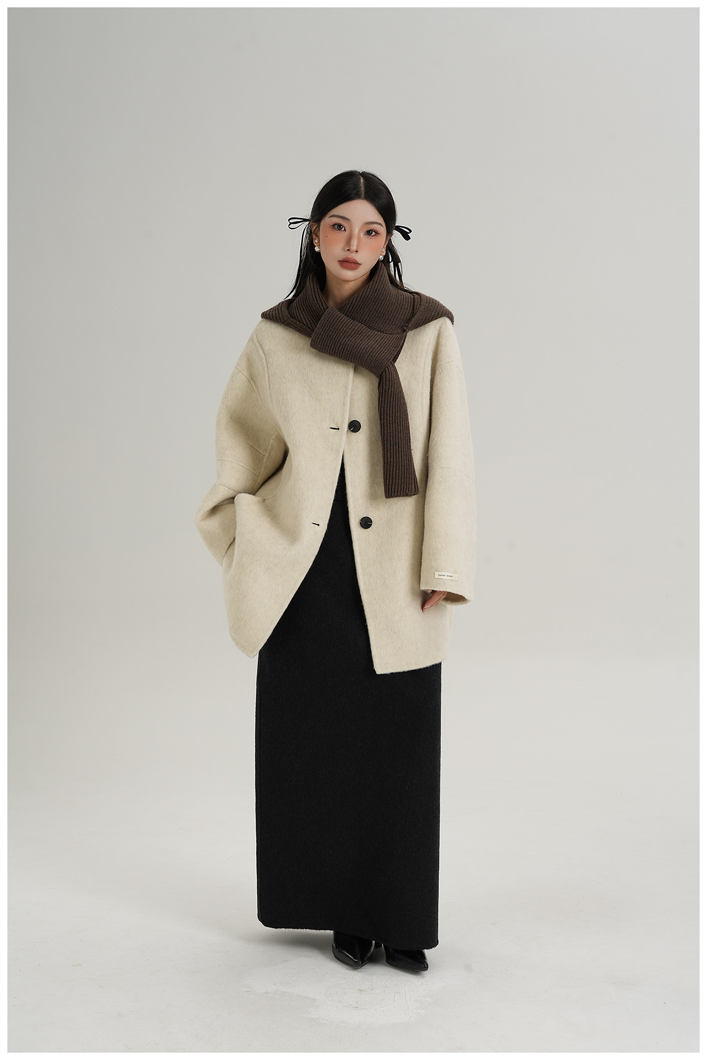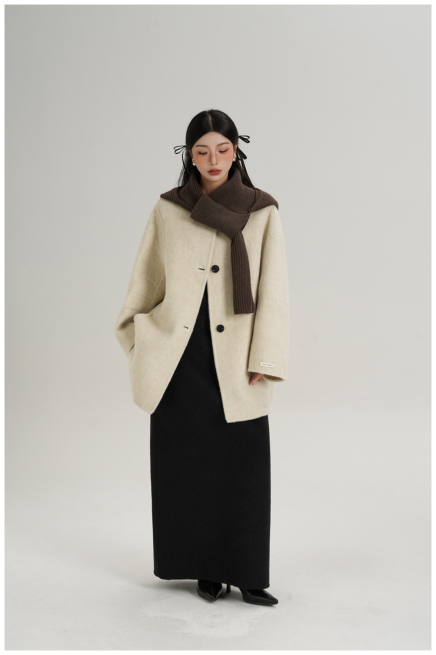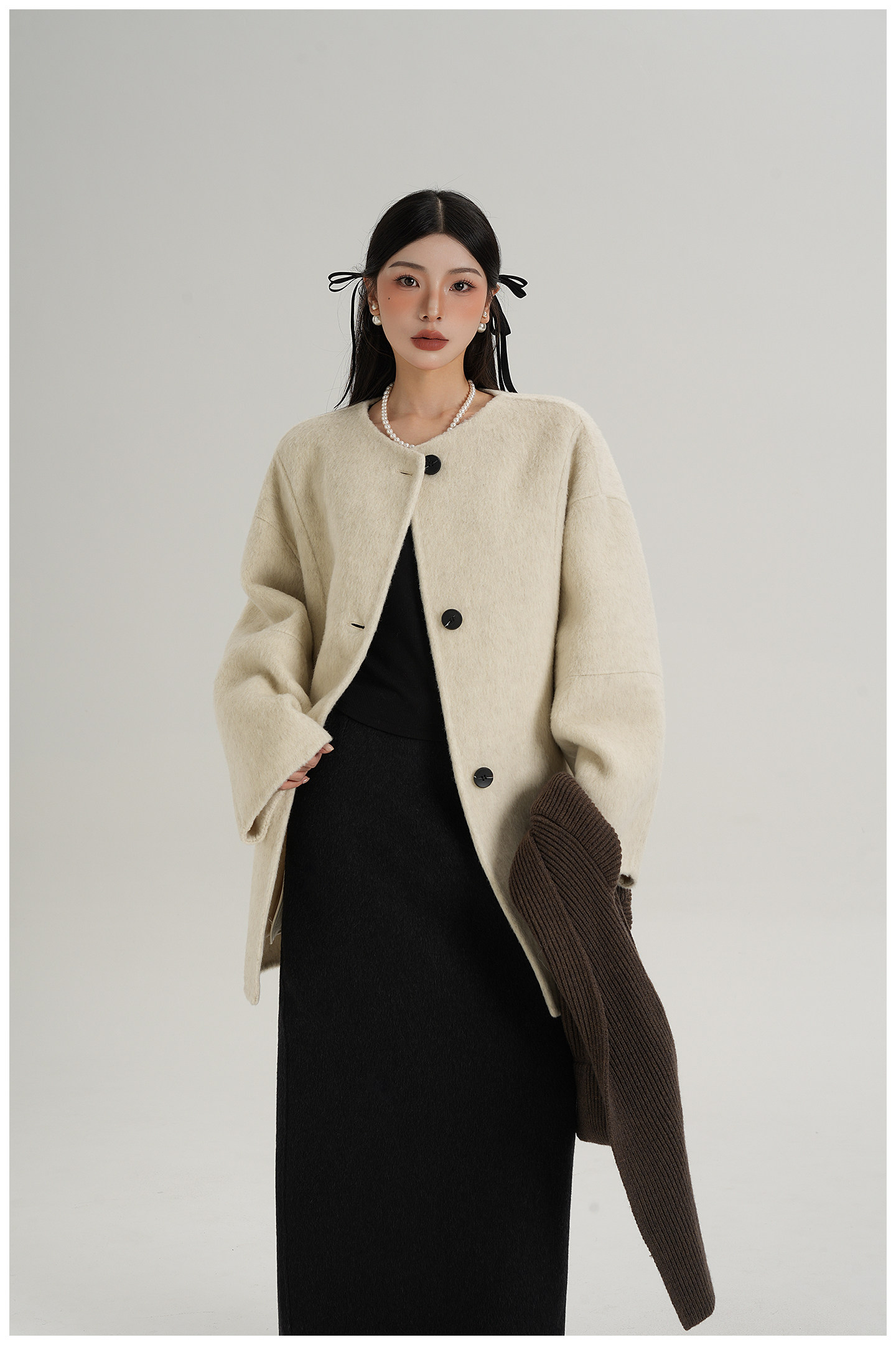 【アウター】高品質 ウール100% ニットカラー ミドルコート レディース【JZシリーズ】