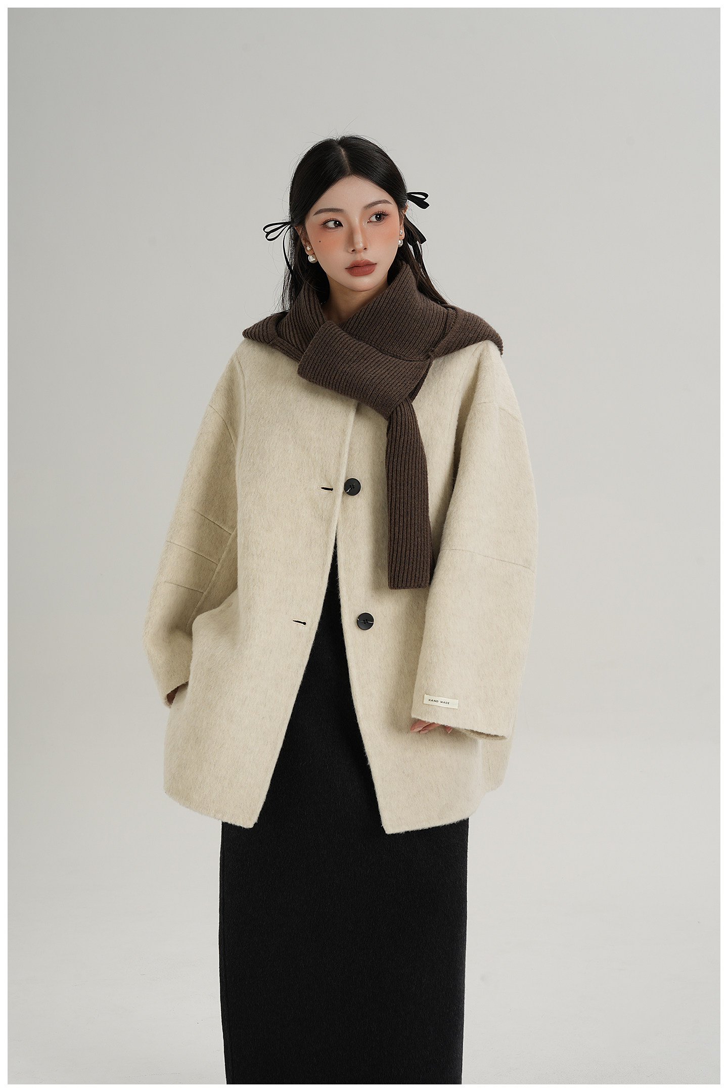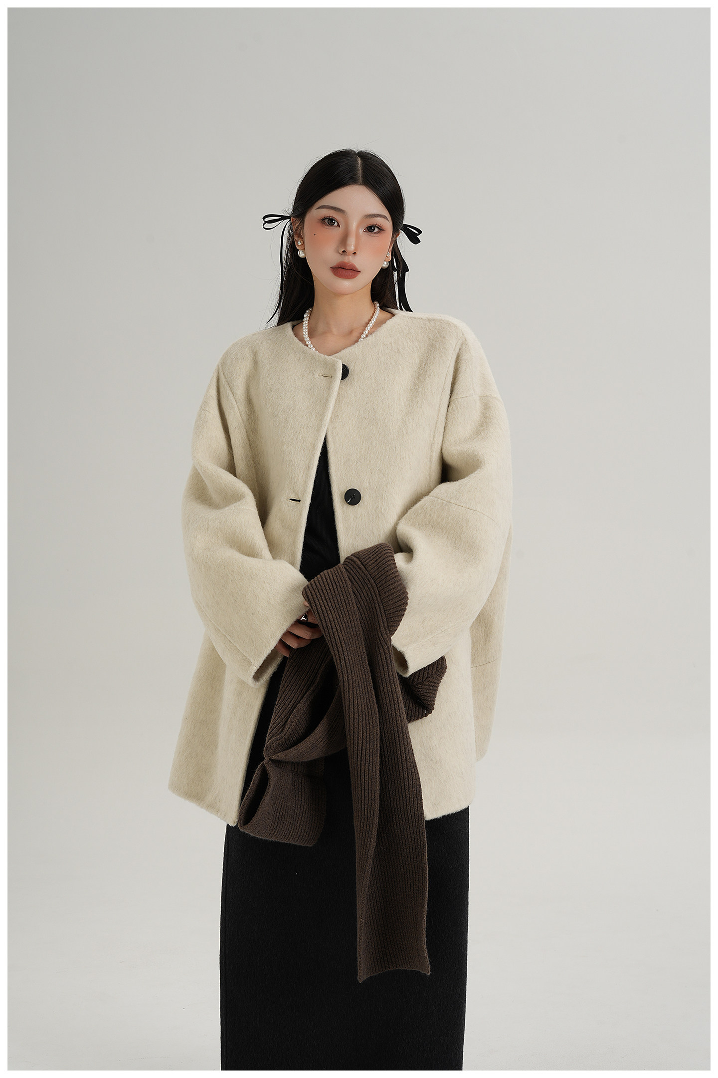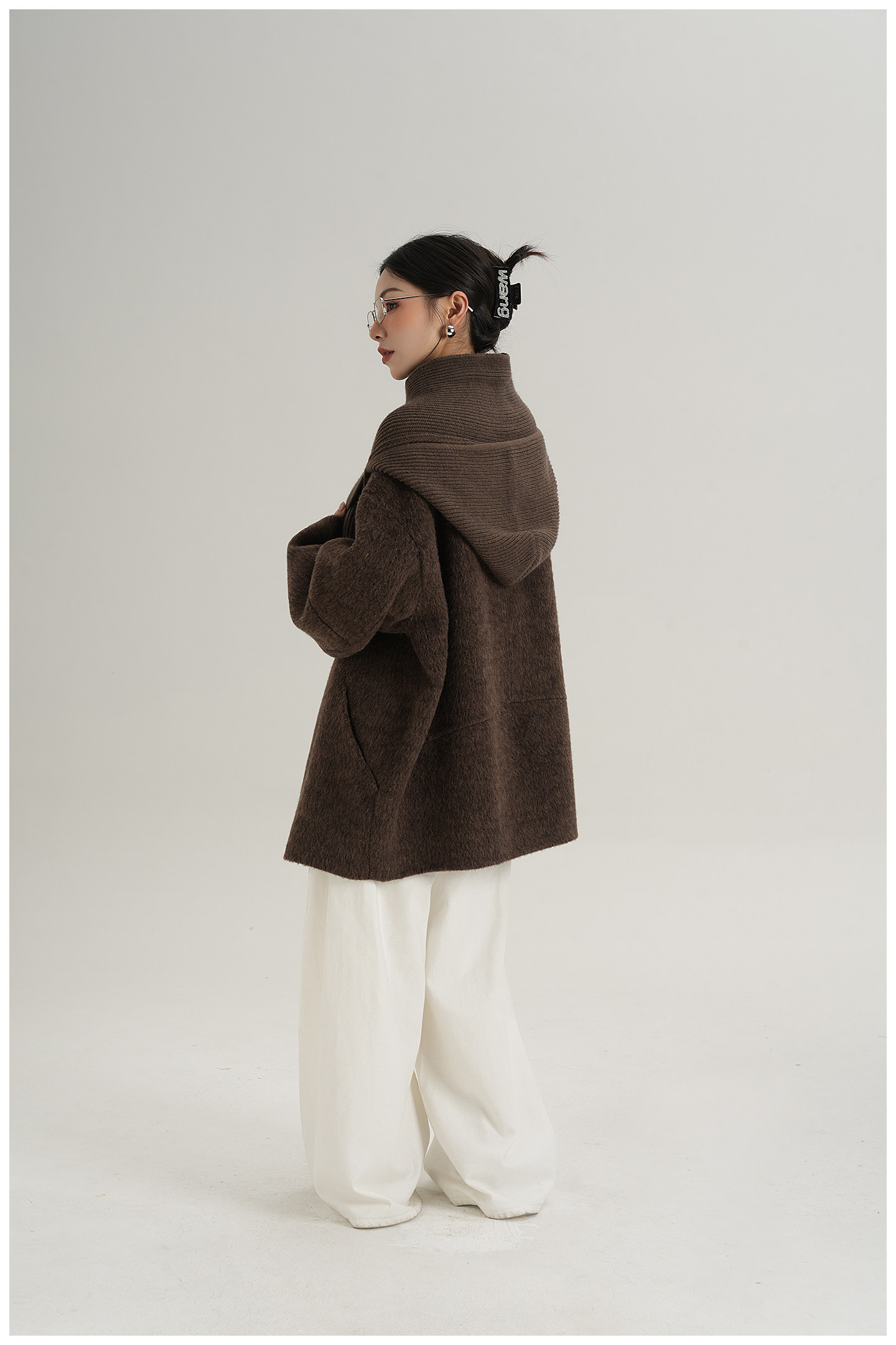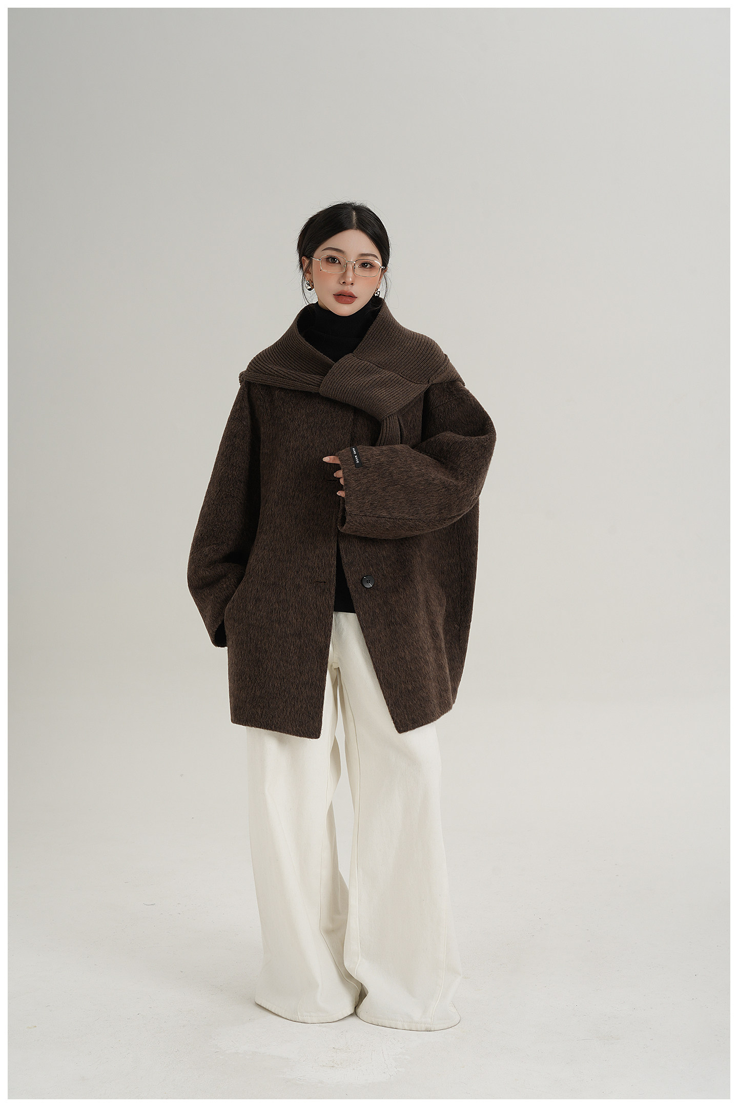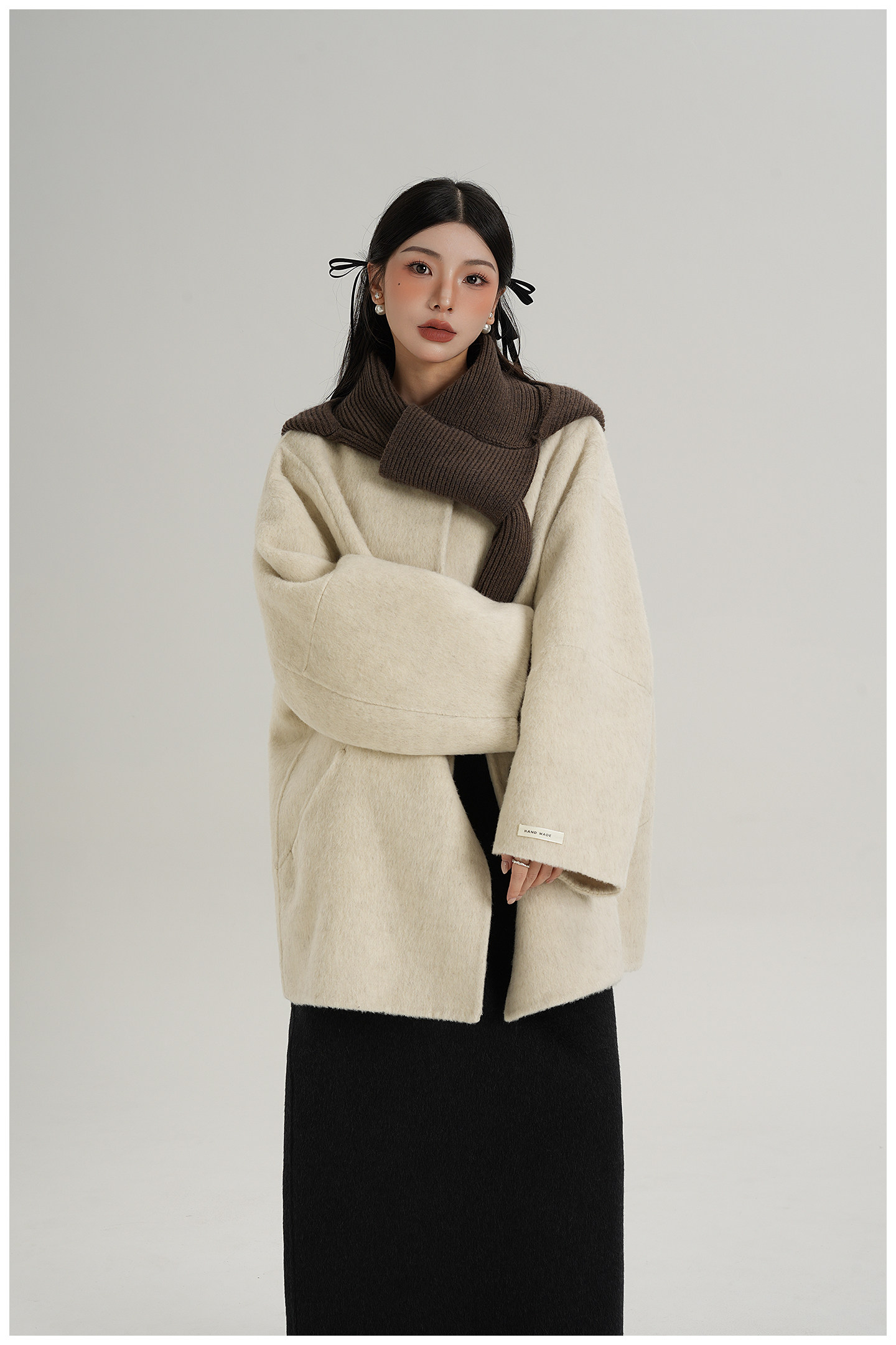 【アウター】高品質 ウール100% ニットカラー ミドルコート レディース【JZシリーズ】
