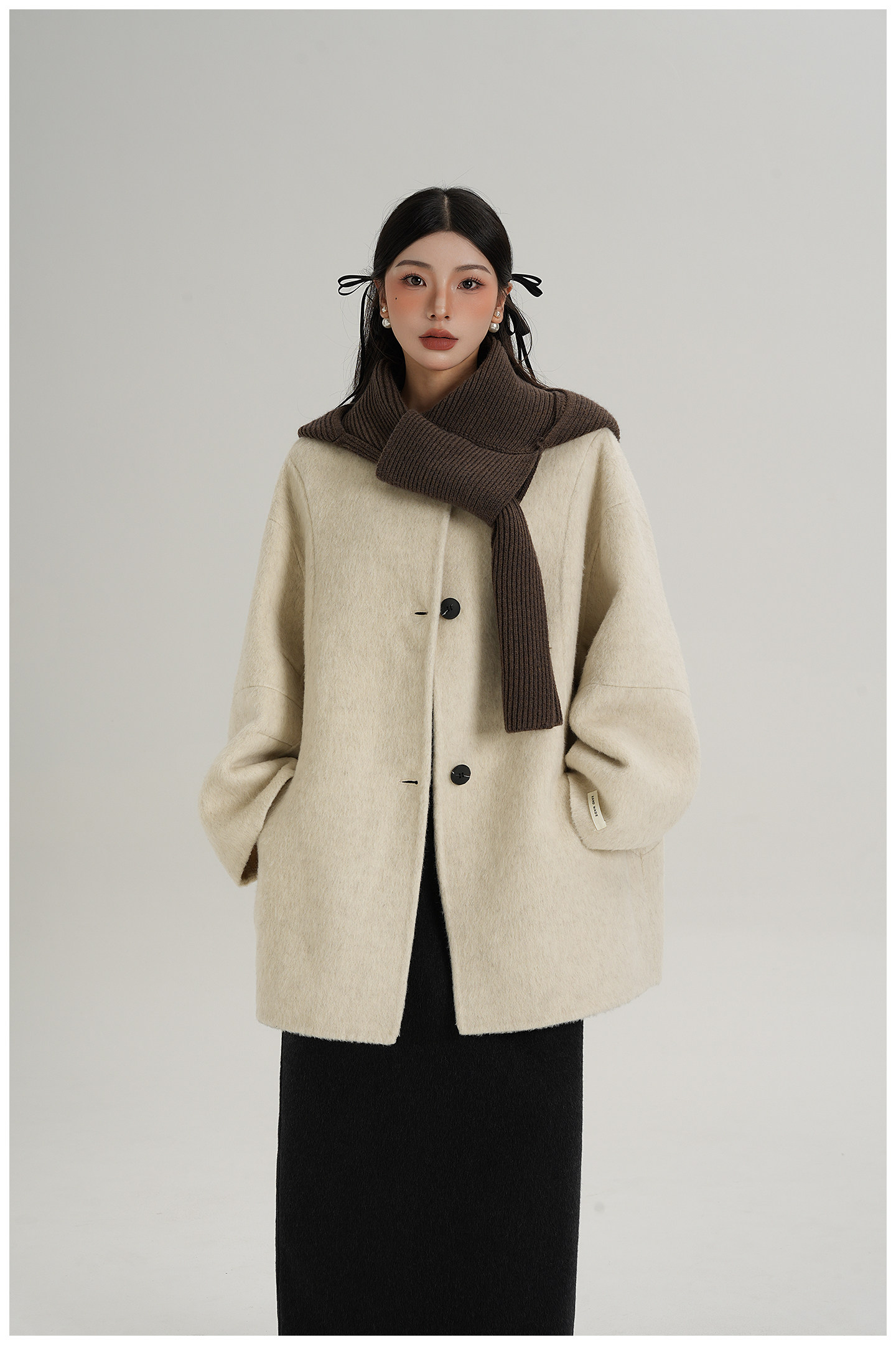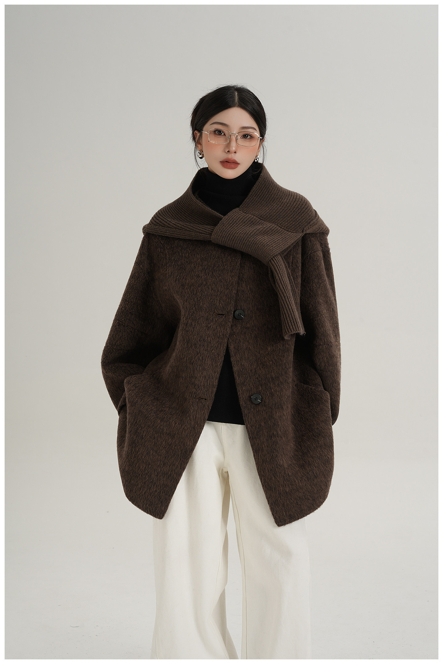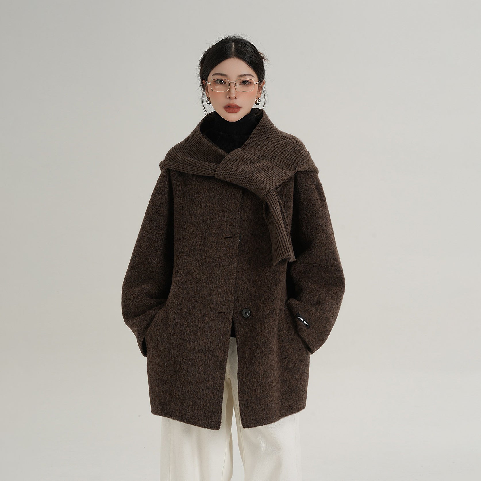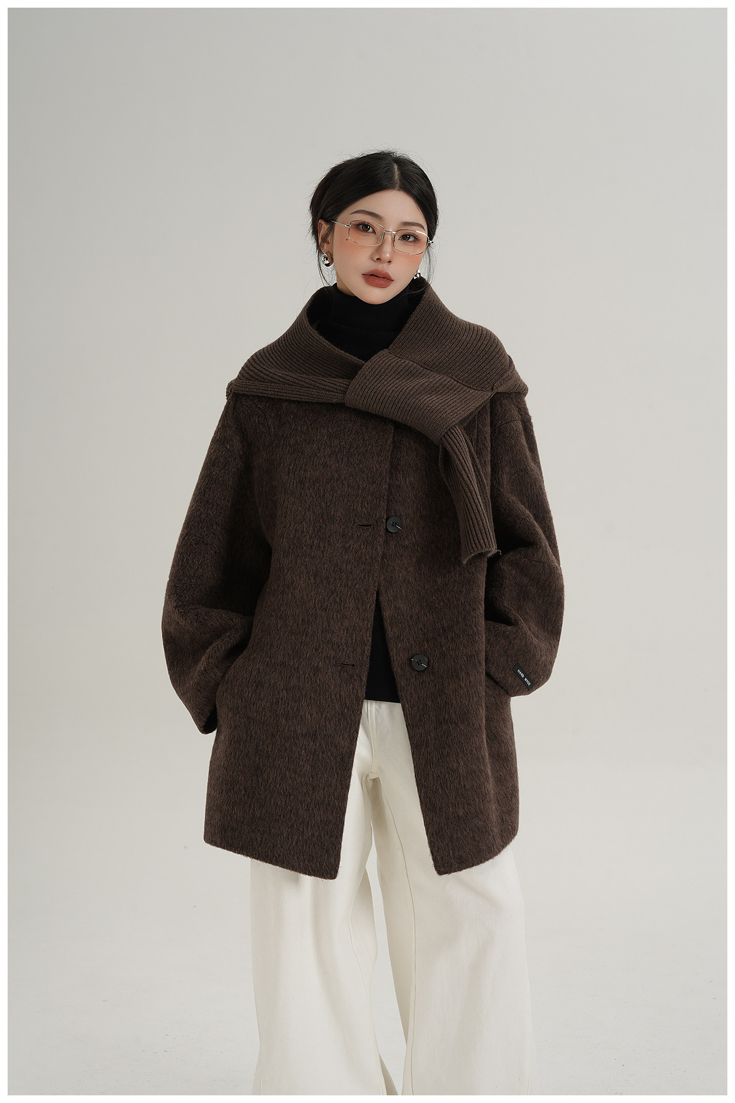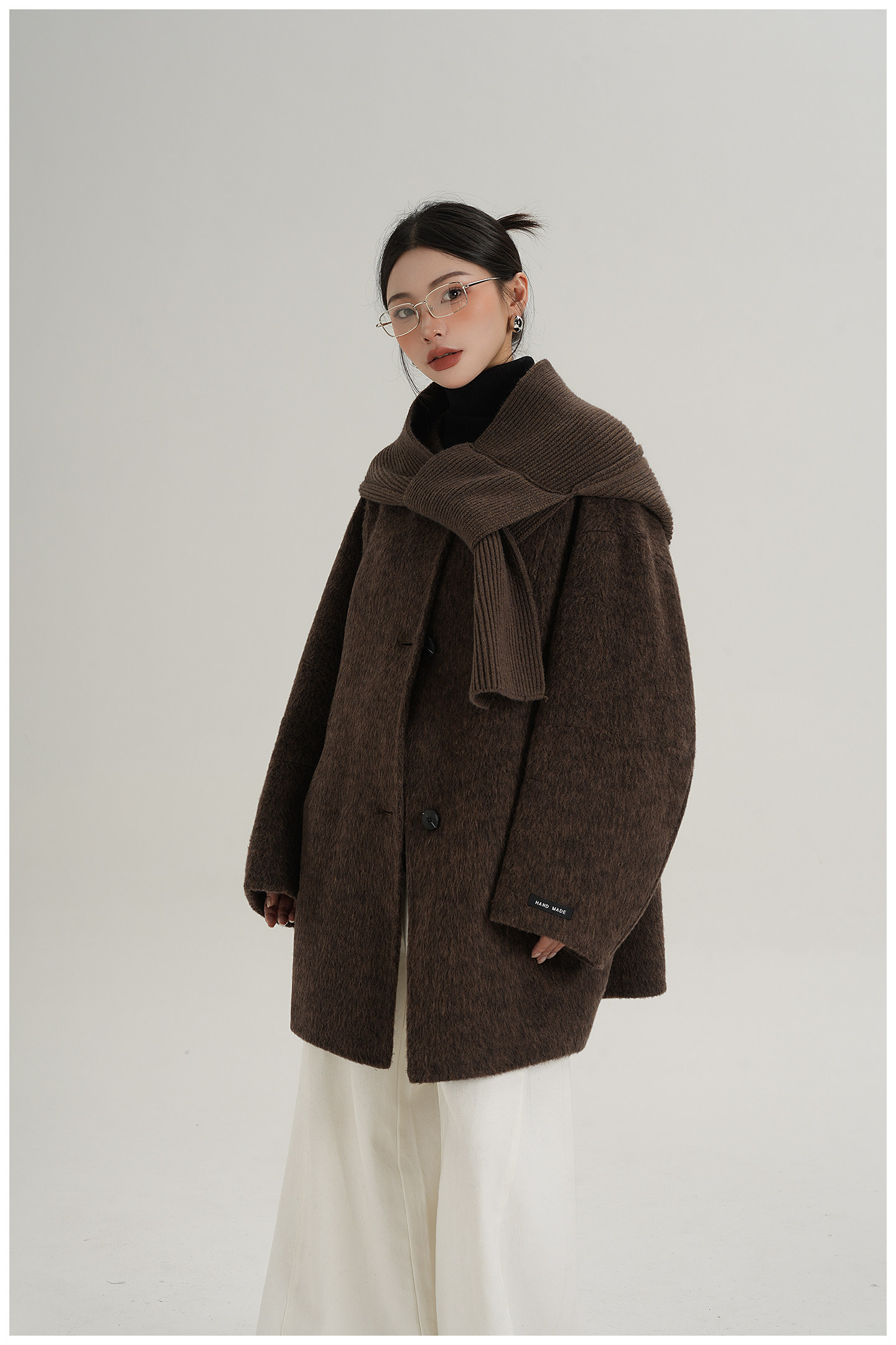 【アウター】高品質 ウール100% ニットカラー ミドルコート レディース【JZシリーズ】