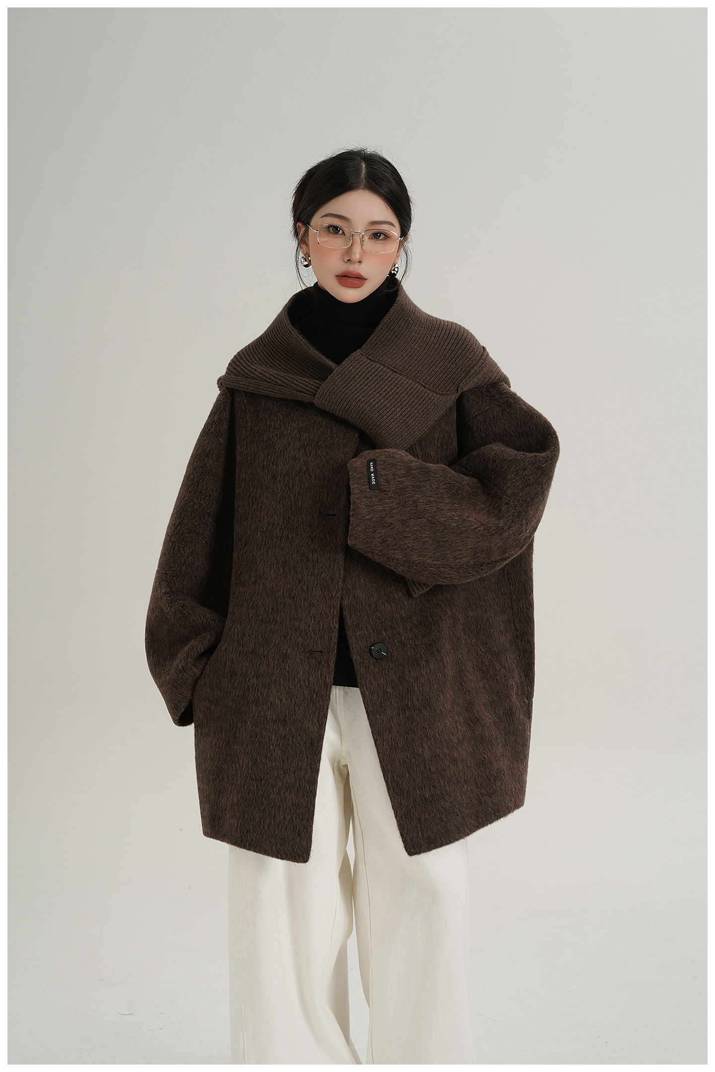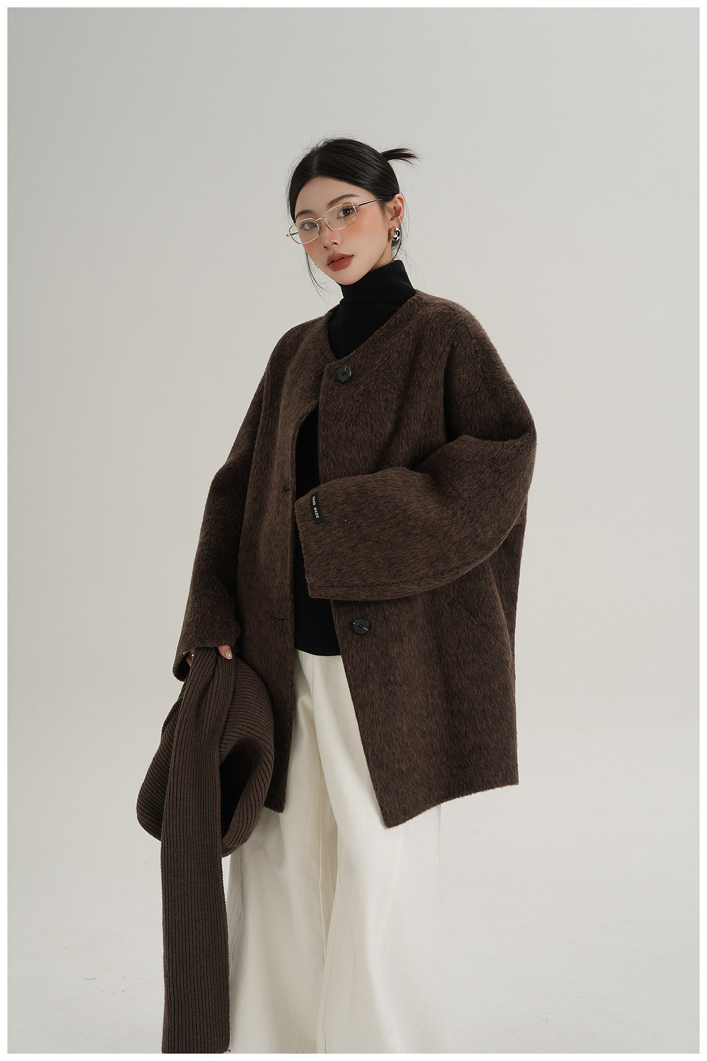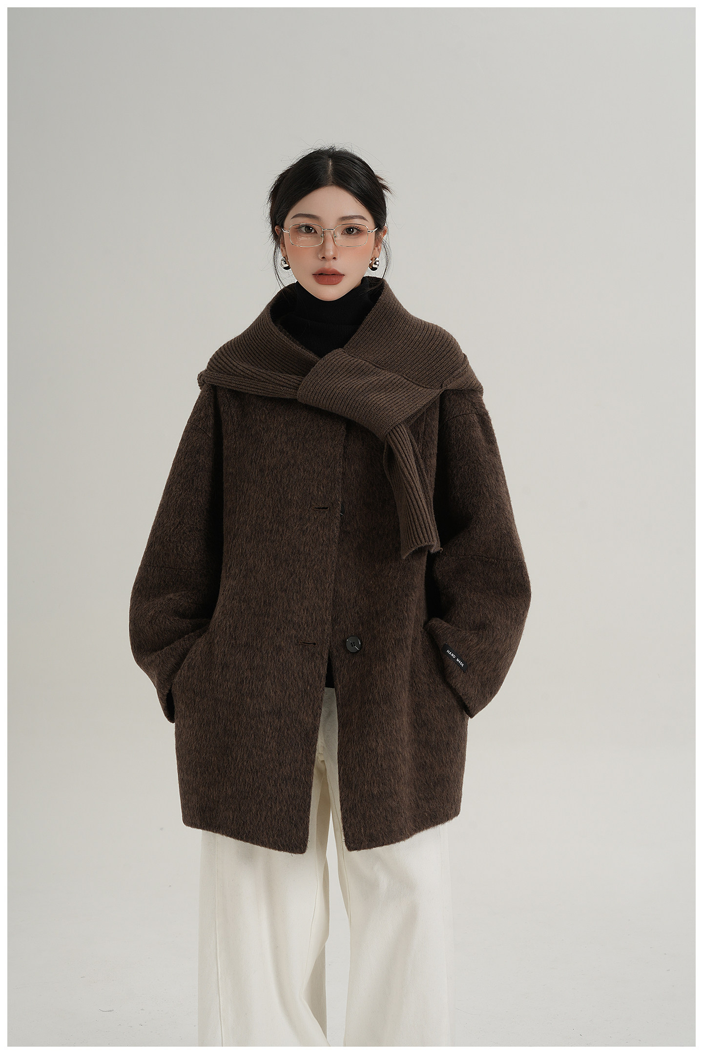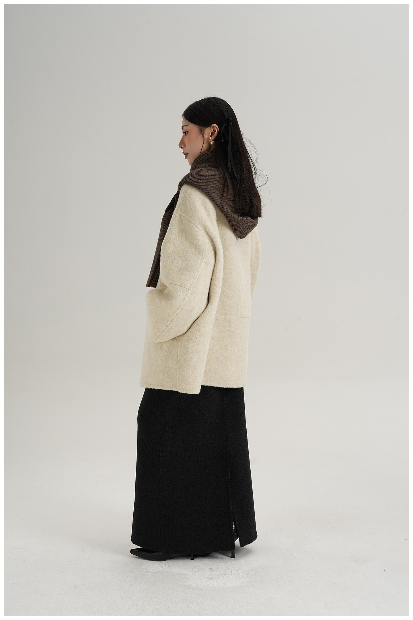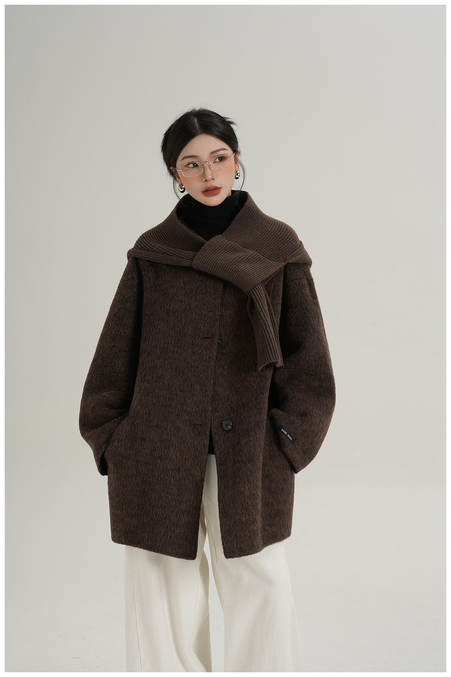 【アウター】高品質 ウール100% ニットカラー ミドルコート レディース【JZシリーズ】