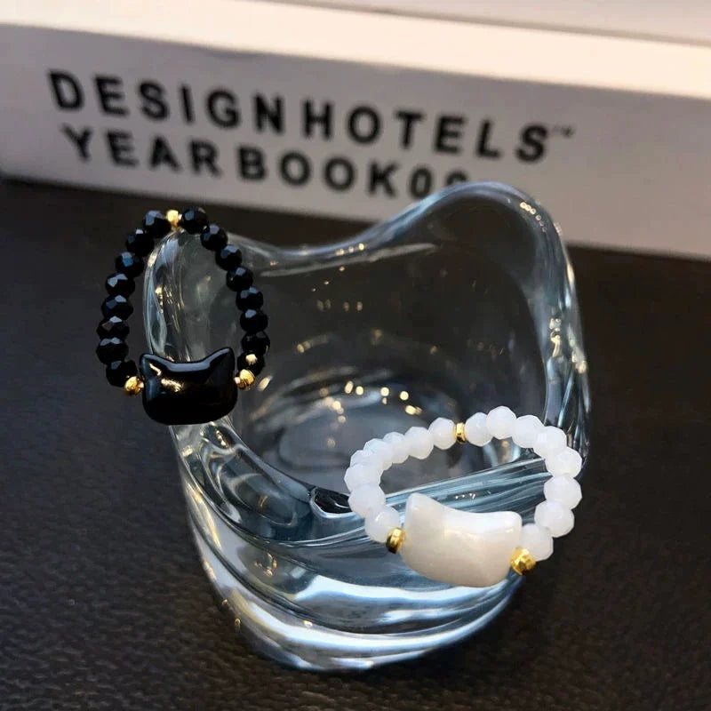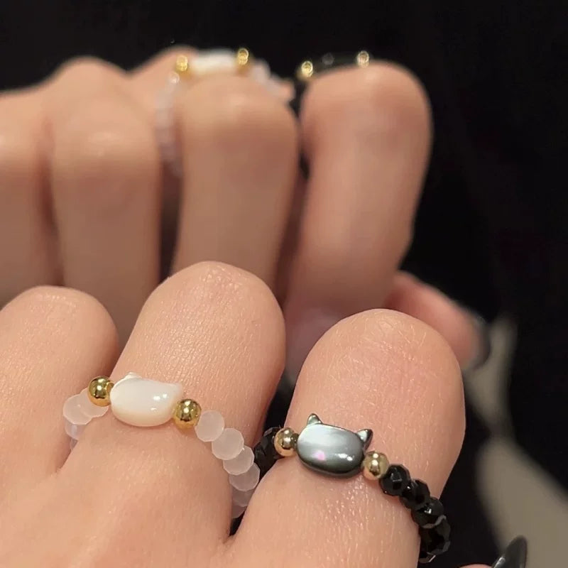 【🎁 B2G1|先行スタート!】【グッズ】黒白ネコ レジン リング レディース カップル ペア 小众 可愛い 学生 ギフト