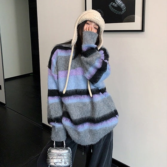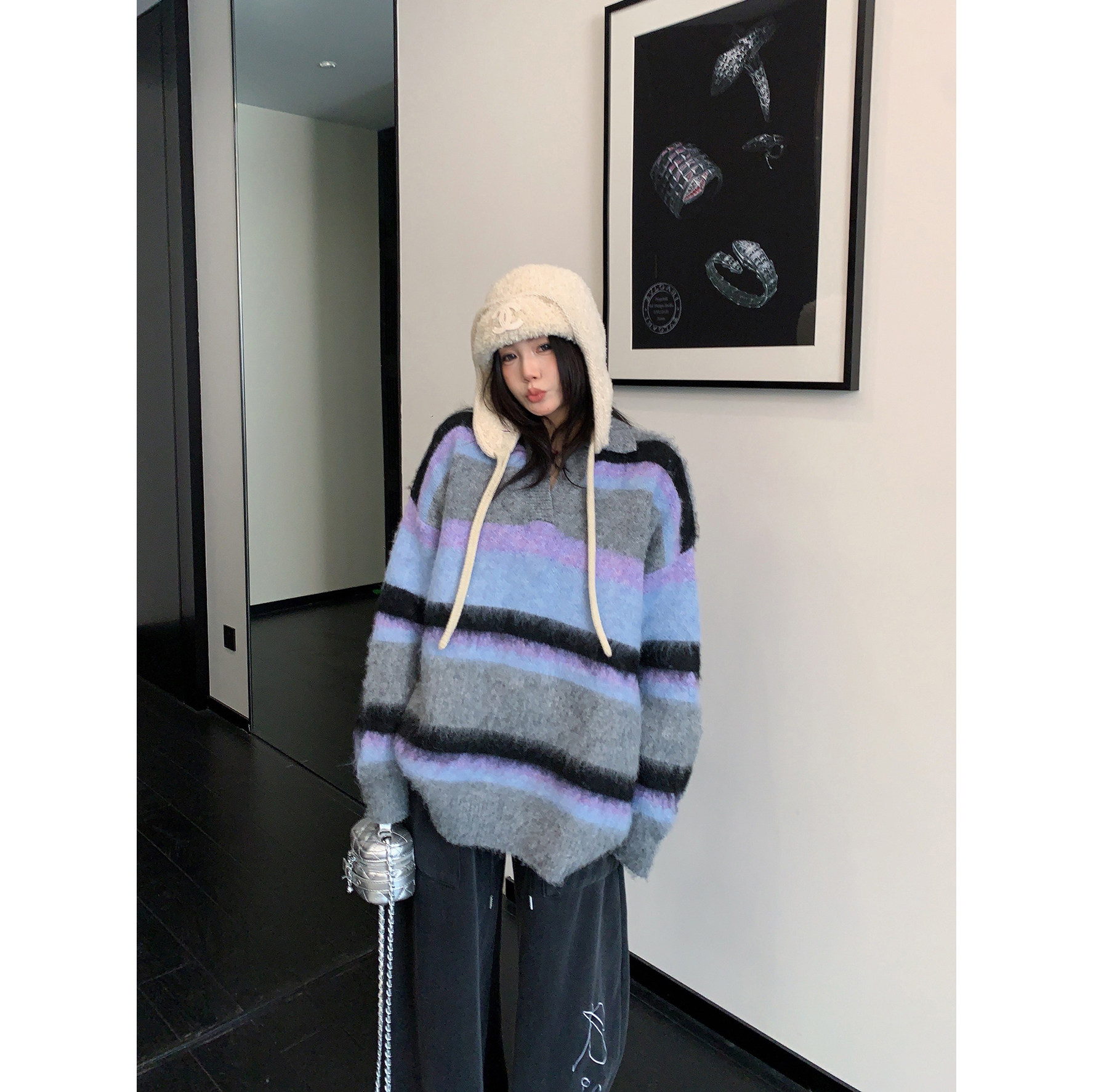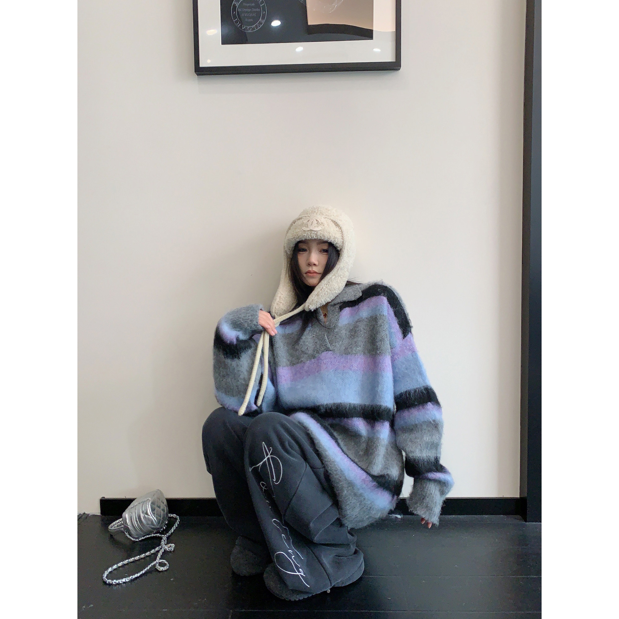 【トップス】ヴィンテージ風 デザイン グラデーション タイダイ ダメージ ニット レディース 秋冬 ゆったり 着回し セーター【FCシリーズ】