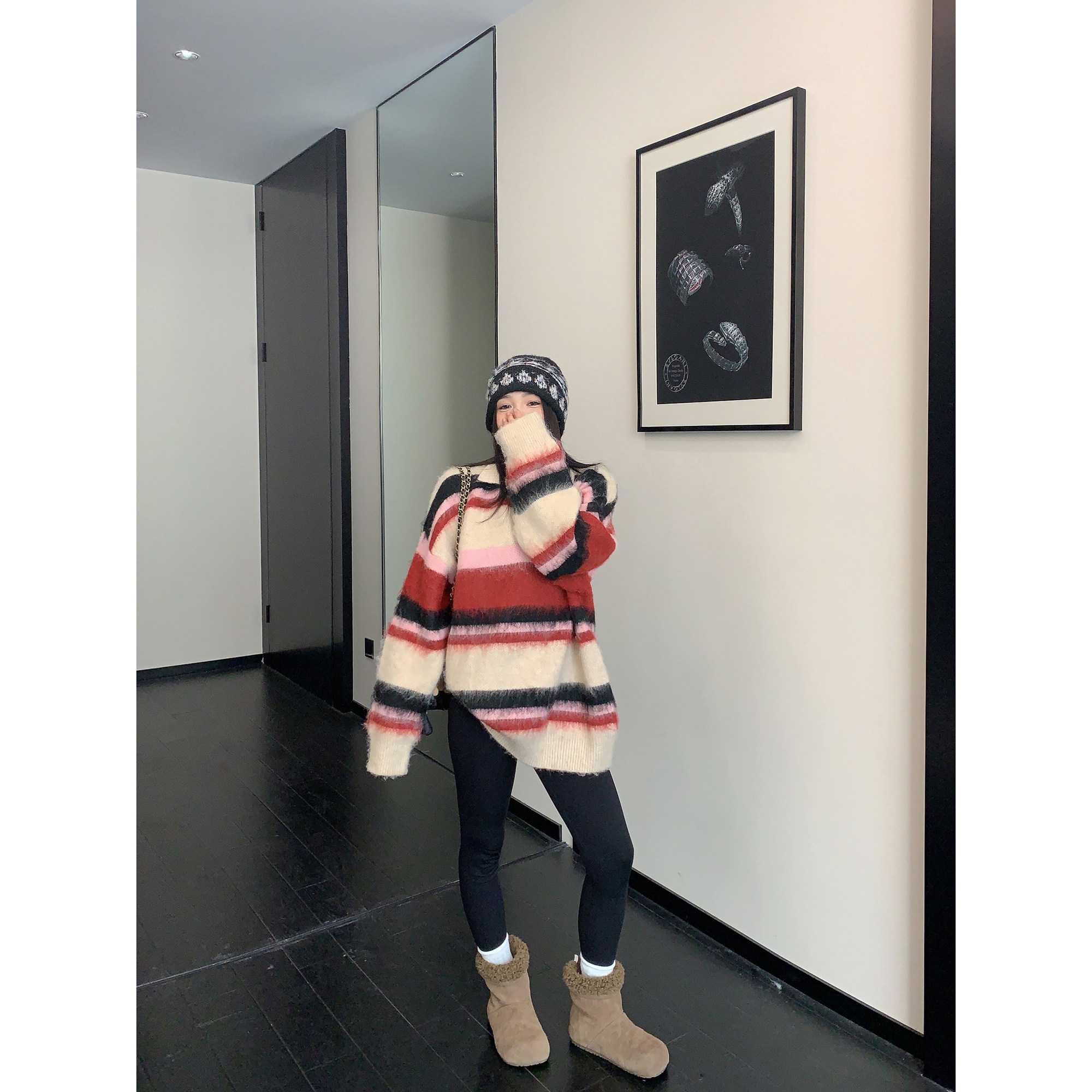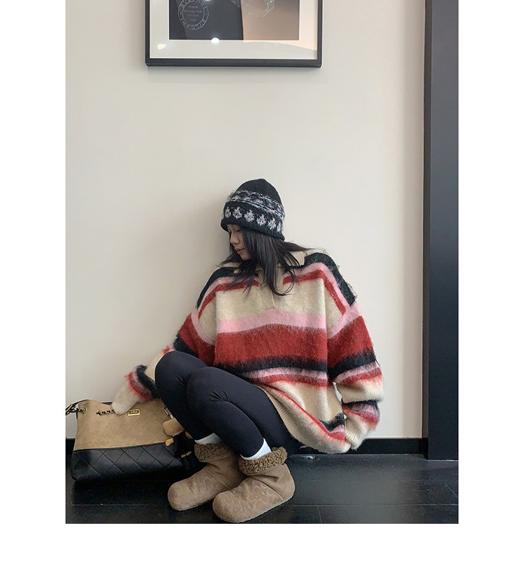 1/30~2/1⭐️期間限定 60%OFF !🏆 売れ筋No.1【トップス】ユニセックス対応 レトロ 豹柄 猫 ゆったり ラウンドネック ネコ柄 ニットセーター【FCシリーズ】