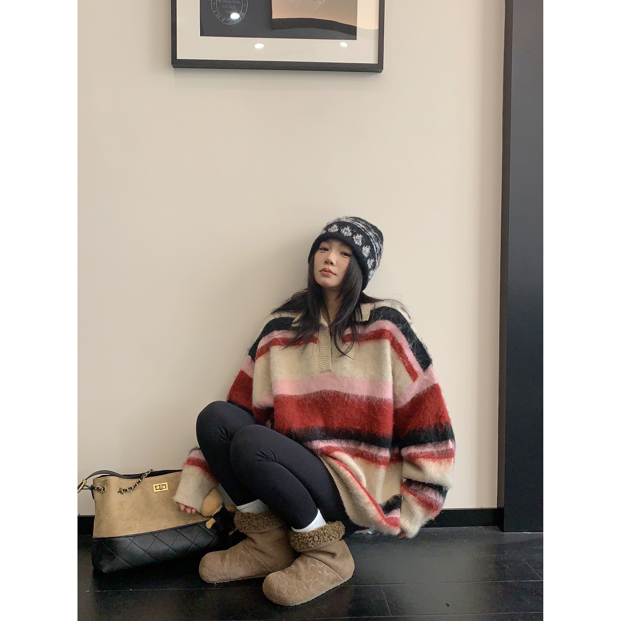 【トップス】アメリカンレトロ トマト柄 クルーネック ニットパーカー レディース 秋 ゆったり 着回し セーター【FCシリーズ】
