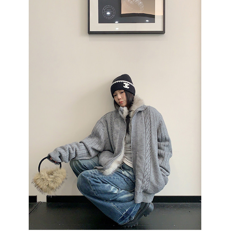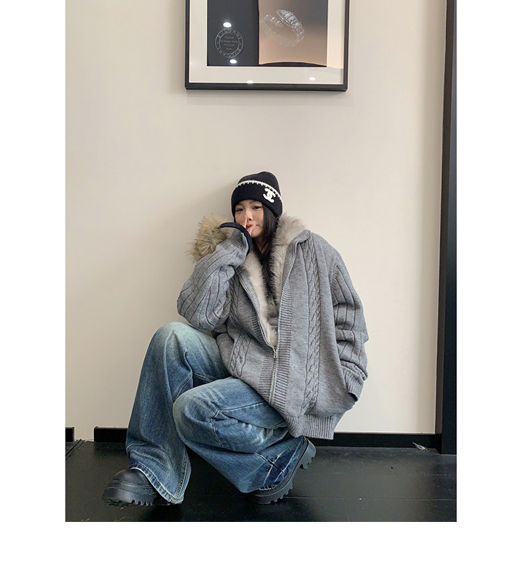 【商品名】【アウター】ラフ感 リラックス感 ボア 厚手 ニット ジャケット 【FCシリーズ】