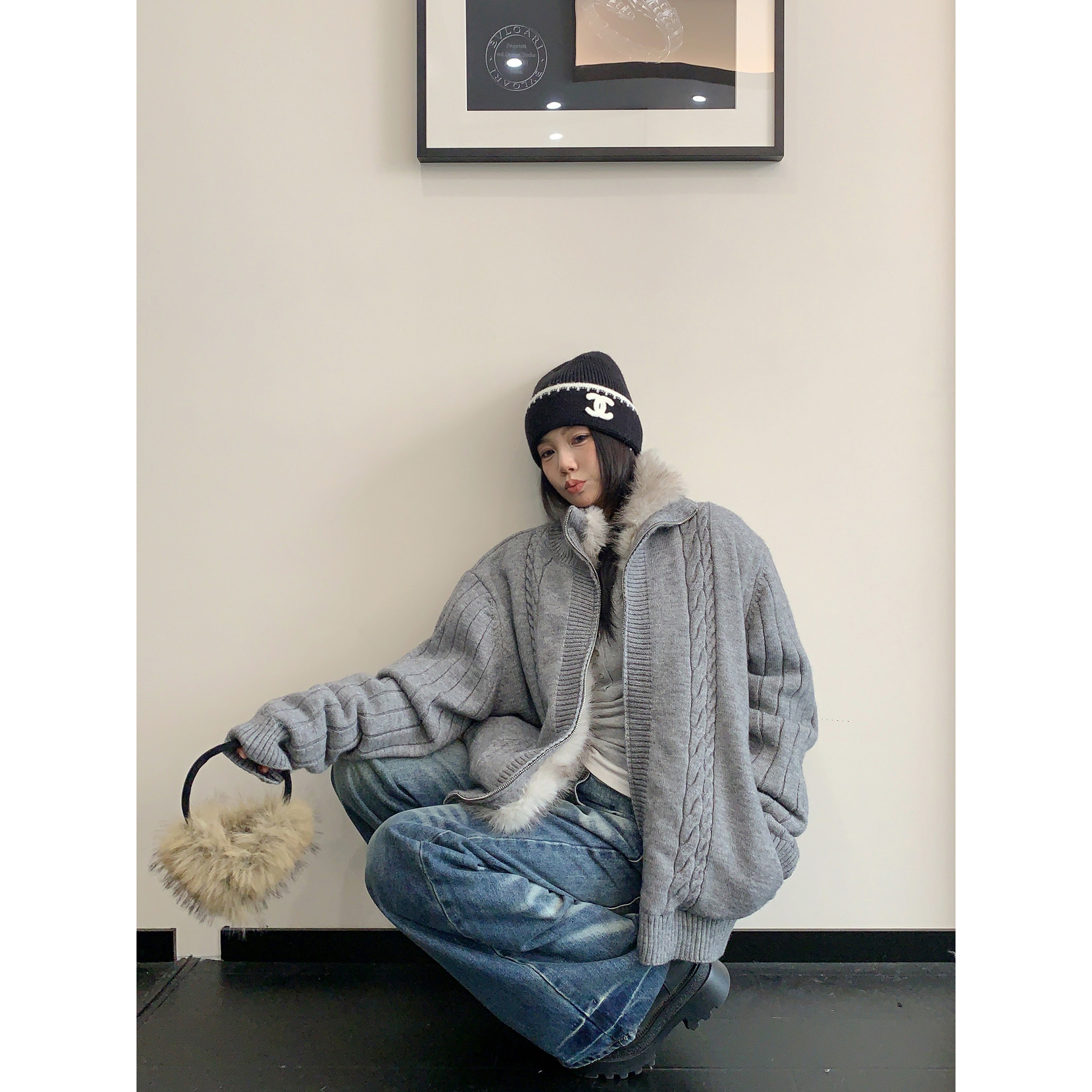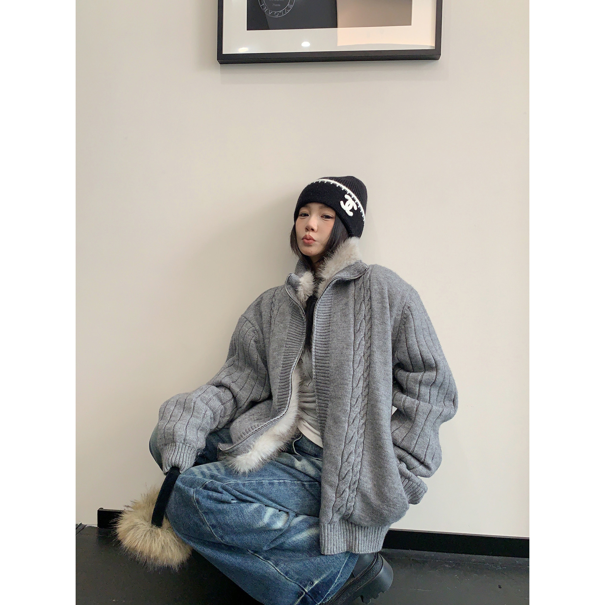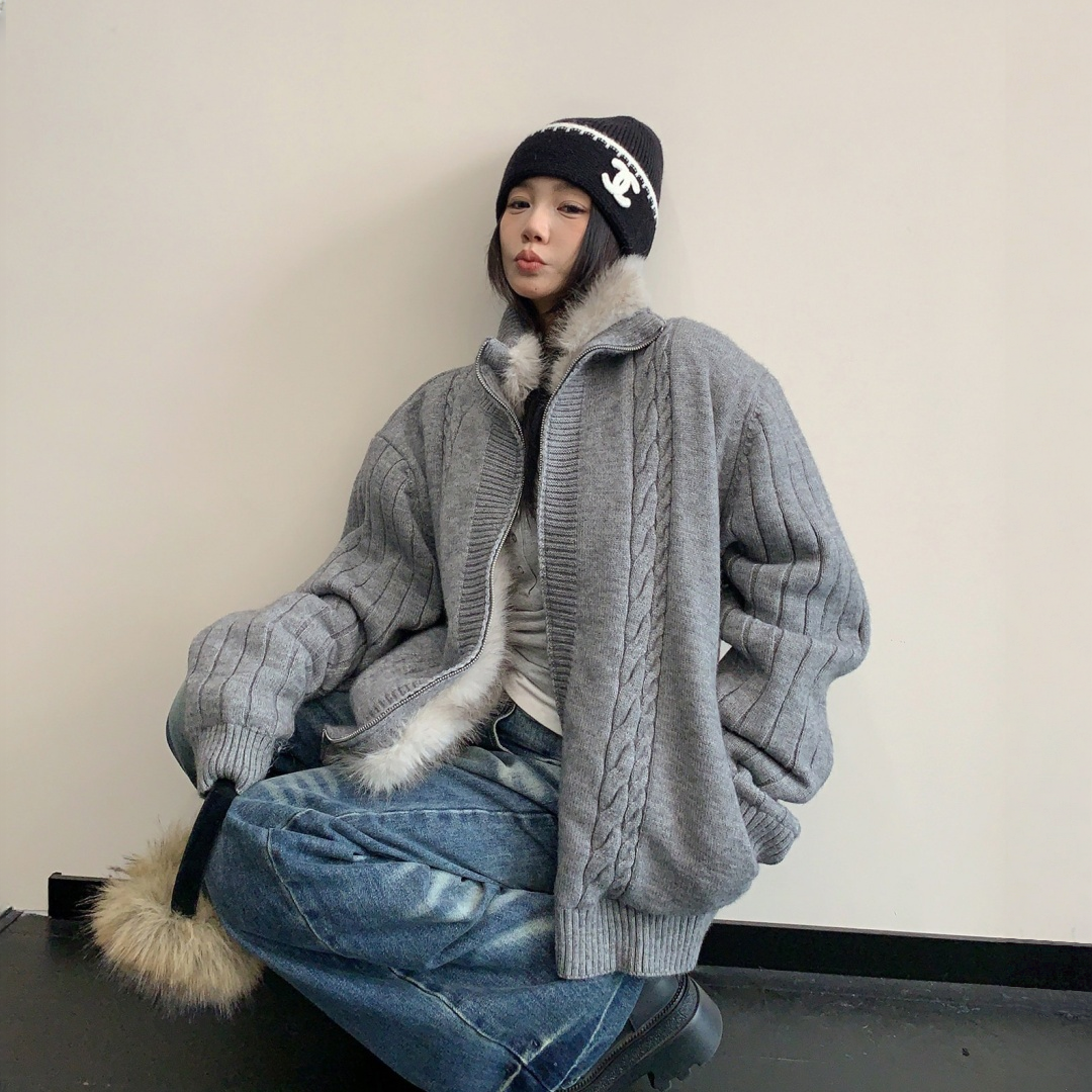 【アウター】ラフ感 リラックス感 ボア 厚手 ニット ジャケット 【FCシリーズ】
