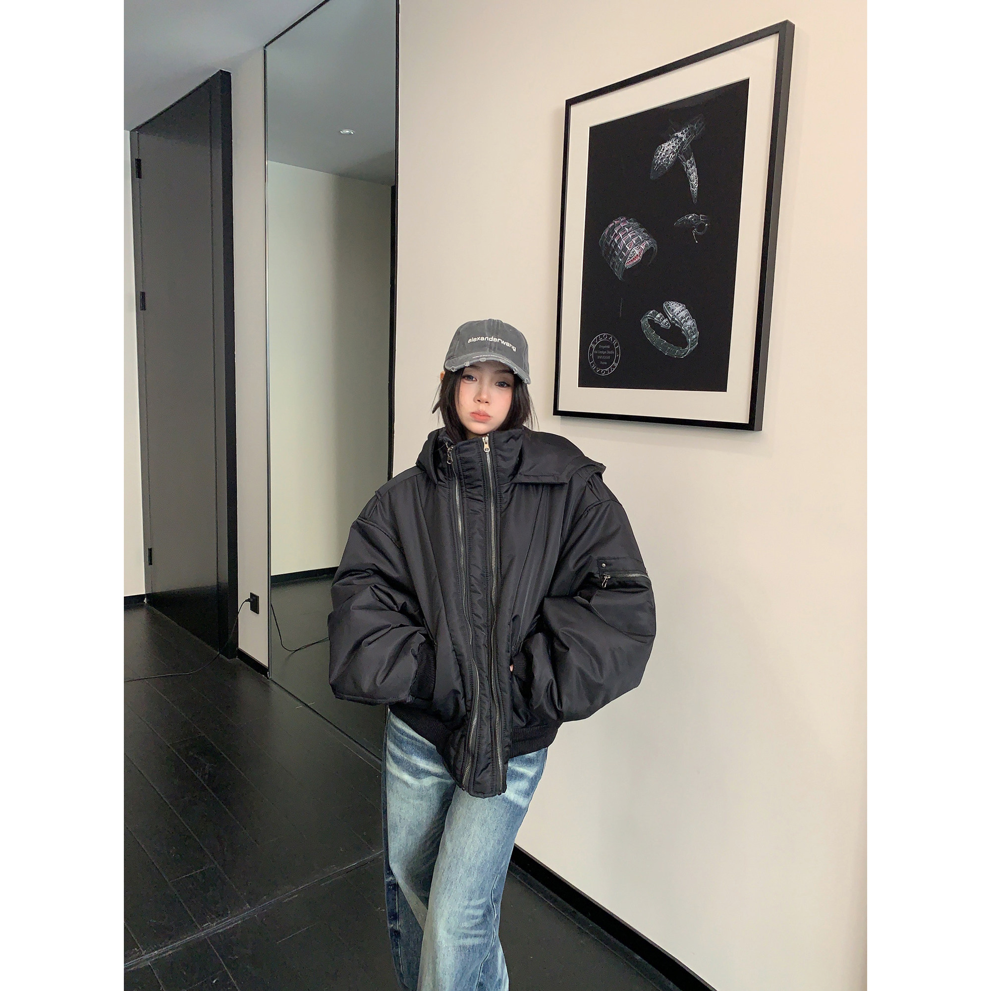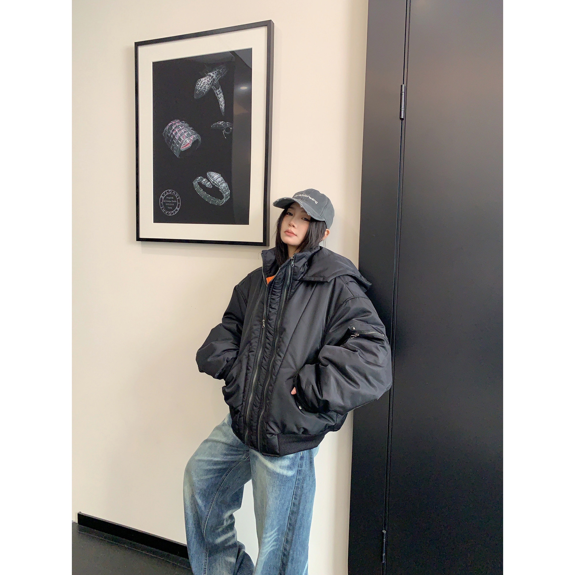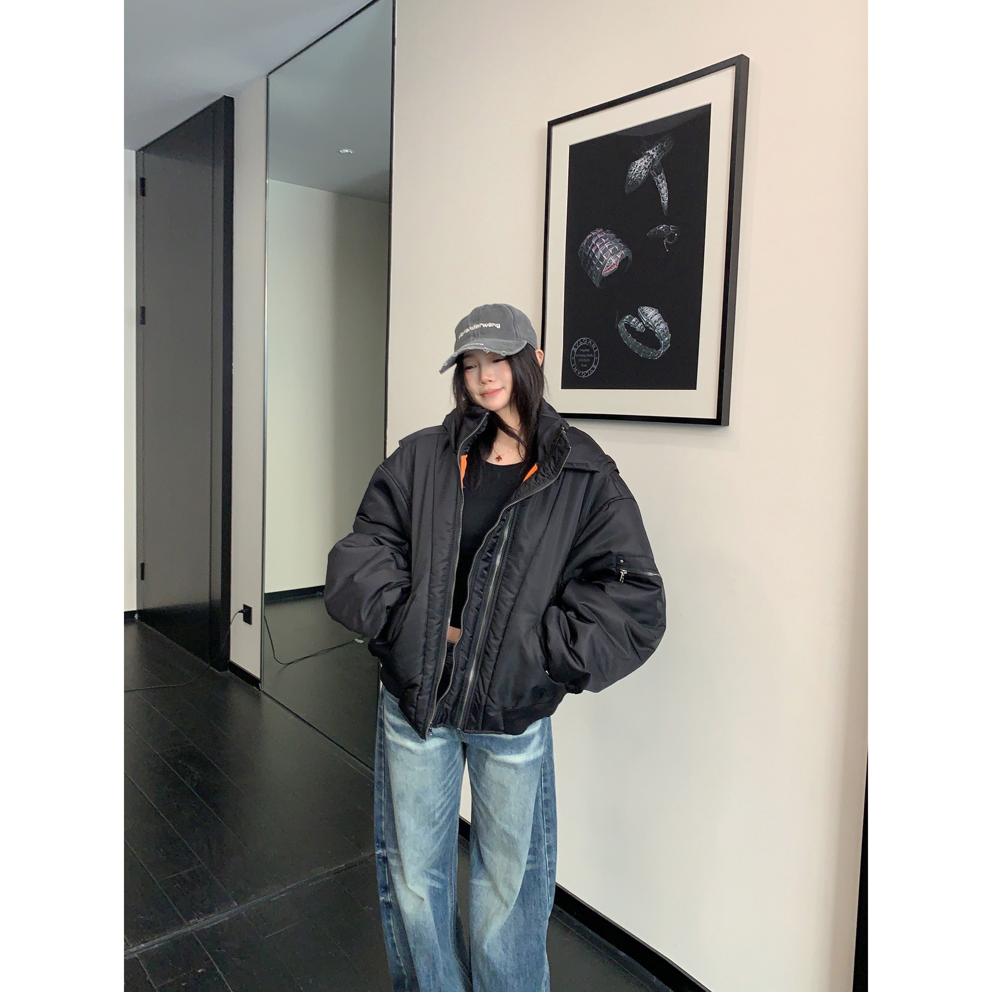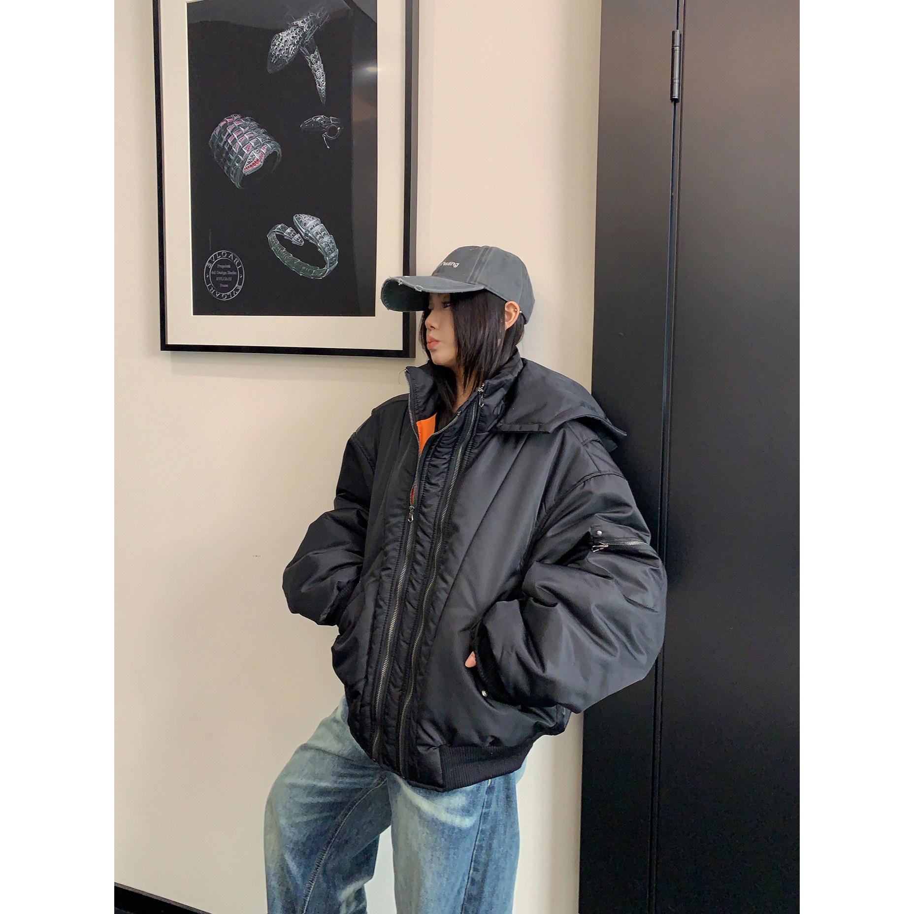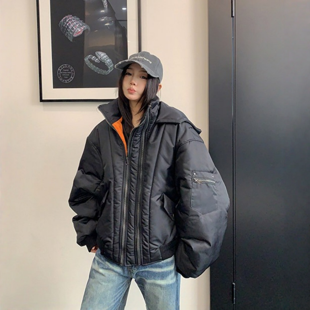 【アウター】レトロ 個性的 アメリカン オーバーシルエット ボリューム中綿 ジャケット 【FCシリーズ】
