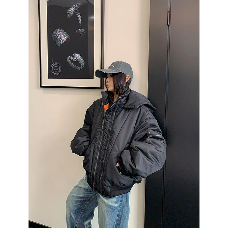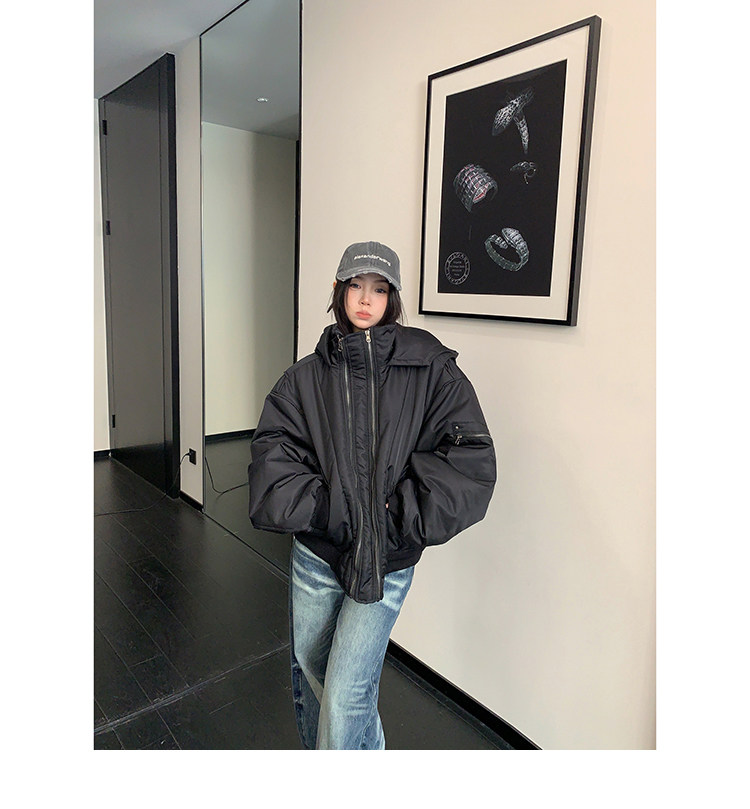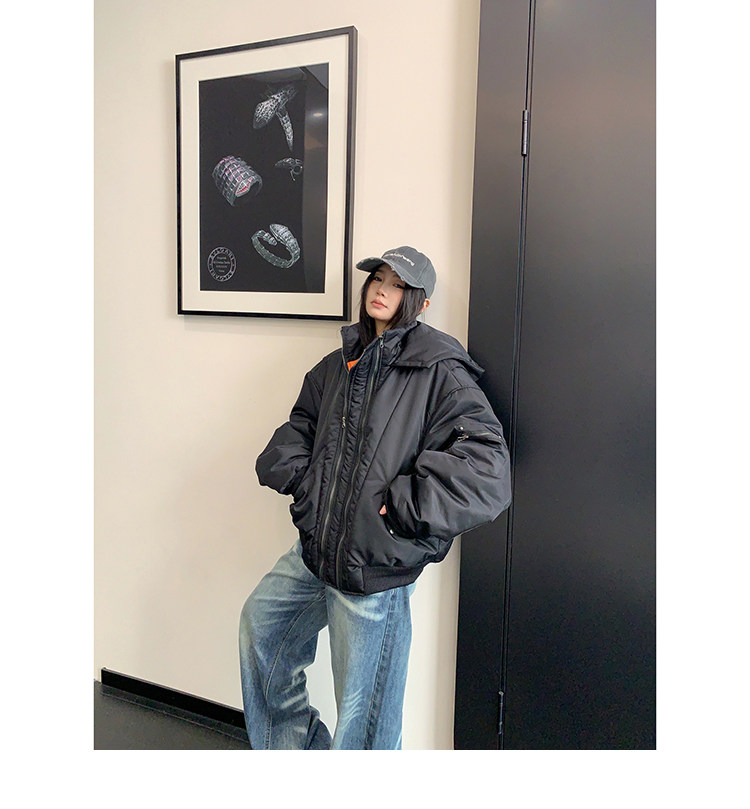 【アウター】ヴィンテージ フード 中綿ジャケット レディース 秋冬 裏起毛 保温 オーバーサイズ ジップアップ【FCシリーズ】【20~25日内発送】