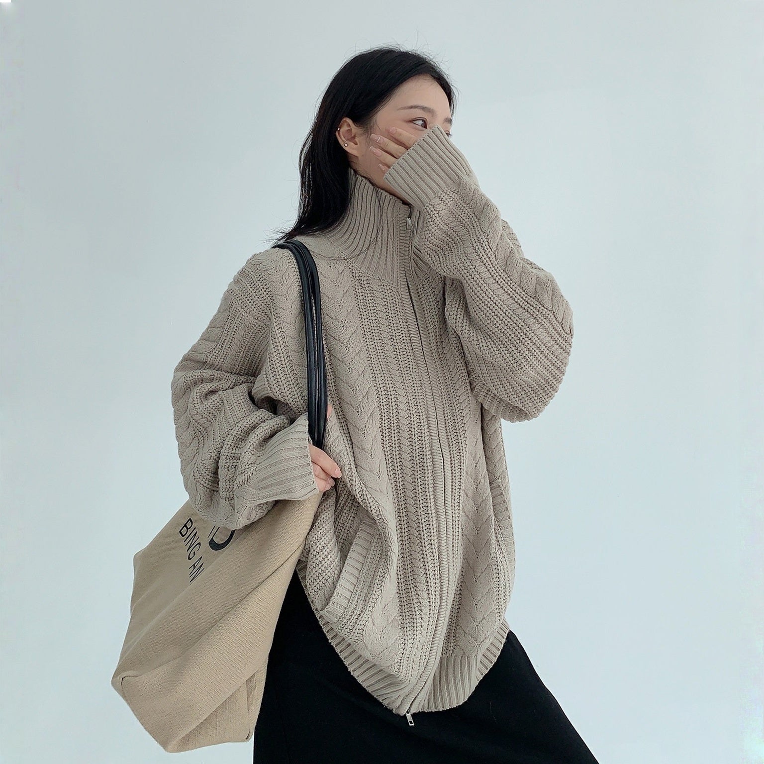 【トップス】ライオン柄 アメリカン カップル用 プルオーバーニット レディース 秋冬 新作 オーバーサイズ ゆるニット【FCシリーズ】