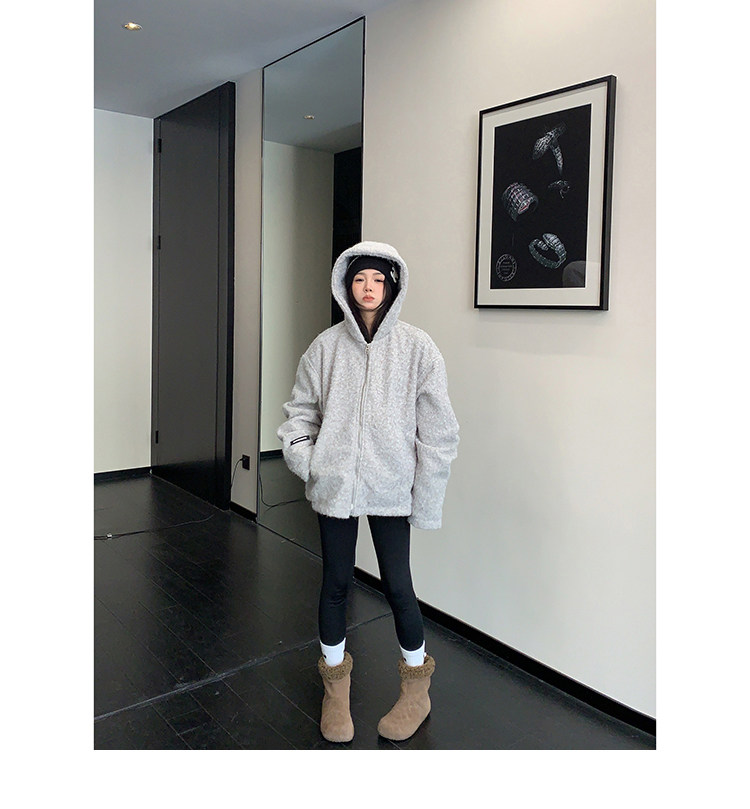 【商品名】【アウター】ツイード 上品な雰囲気 厚手 フード付き ジャケット 【FCシリーズ】